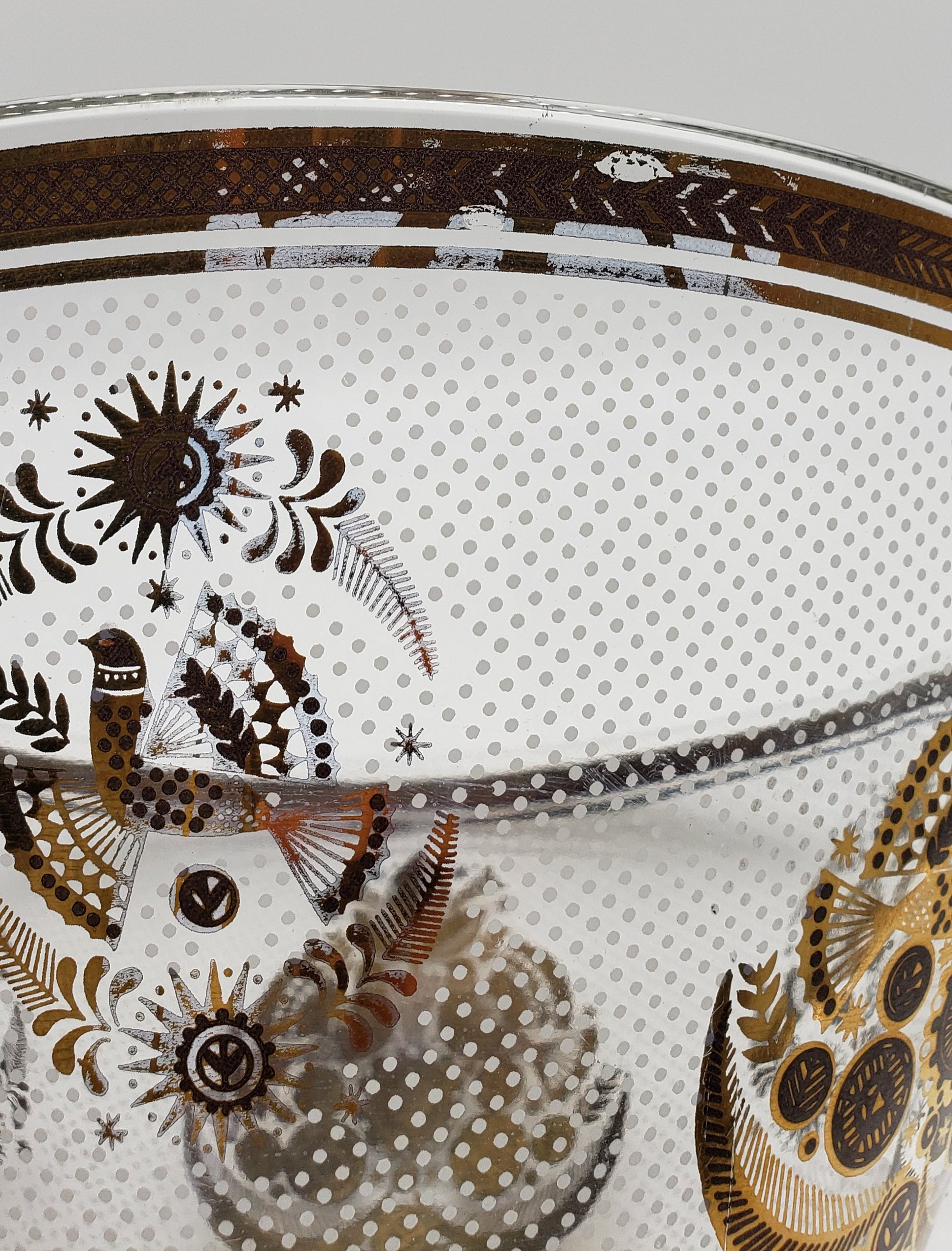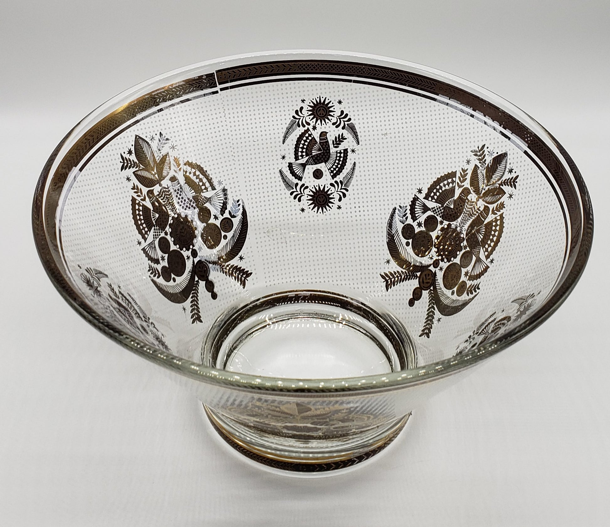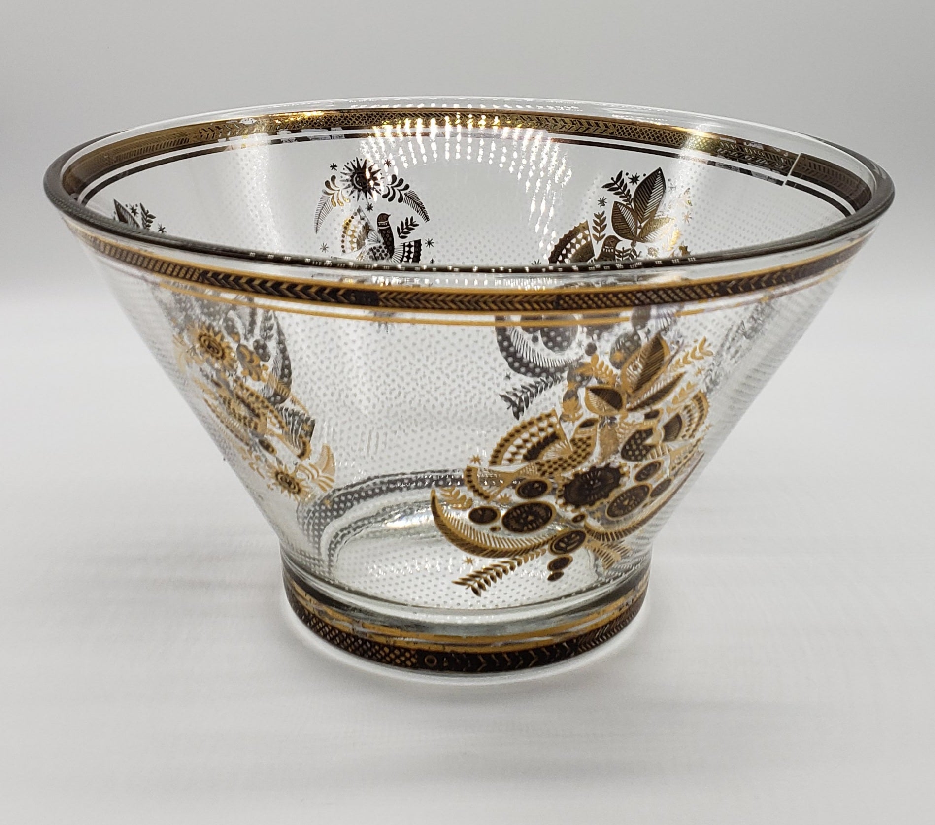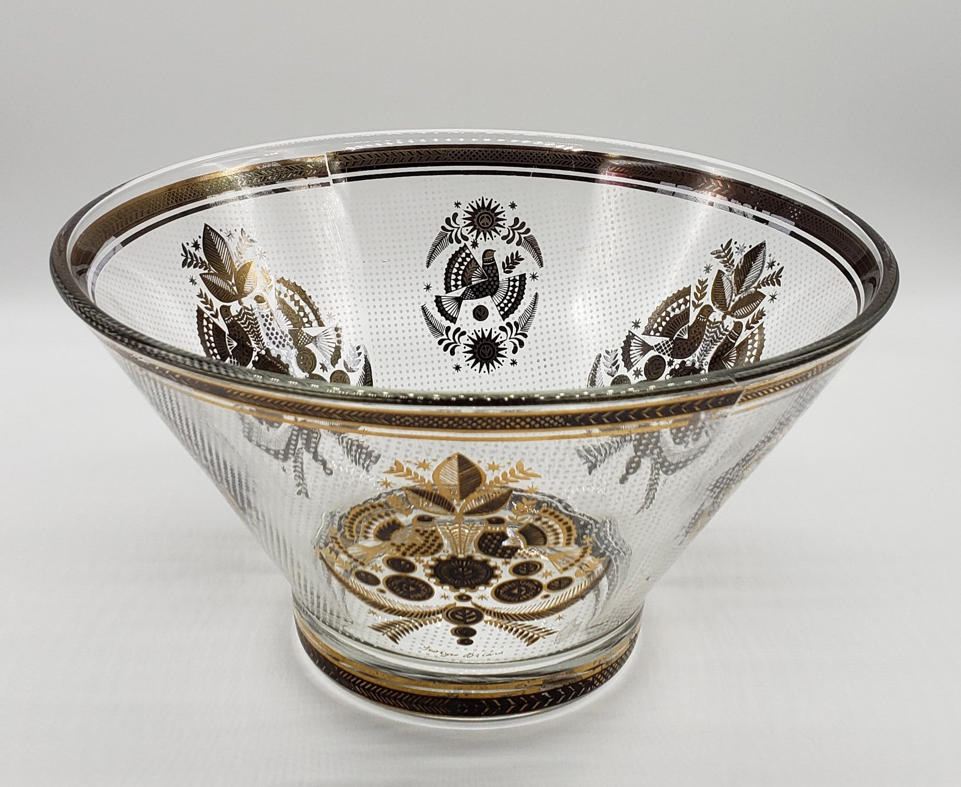 Georges Briard Sonata Serving Bowl Glass Appliqué Mid Century Modern Vintage Gold