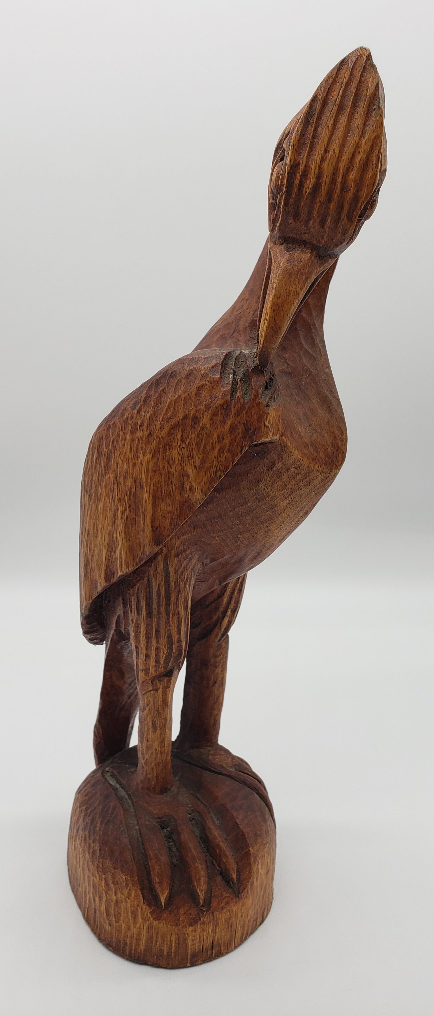 Renold Monfils Hand Carved Wooden Crane Figurine *Signed* Neck has been repaired as shown in photos but is hardly noticeable