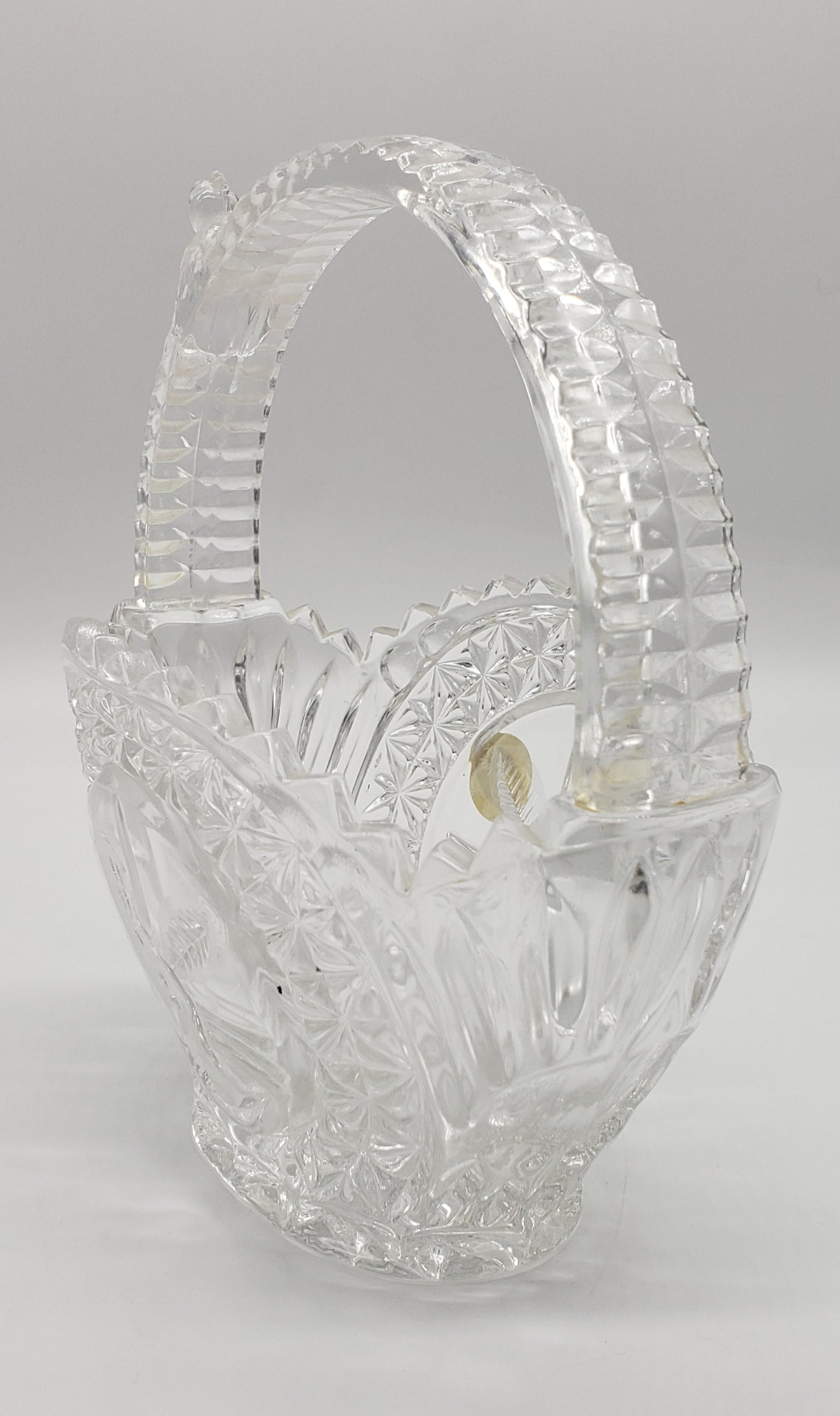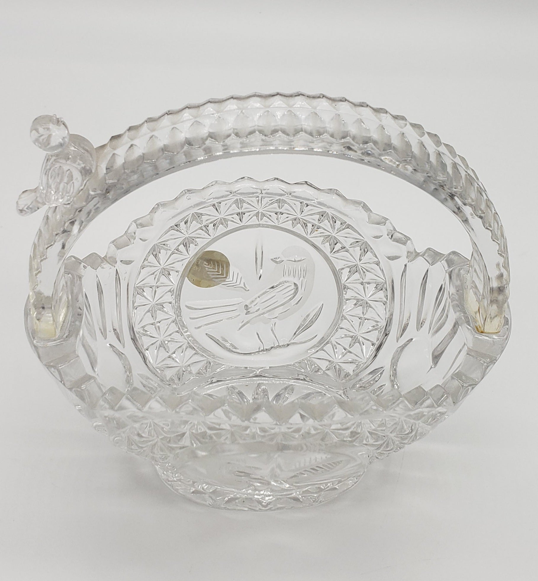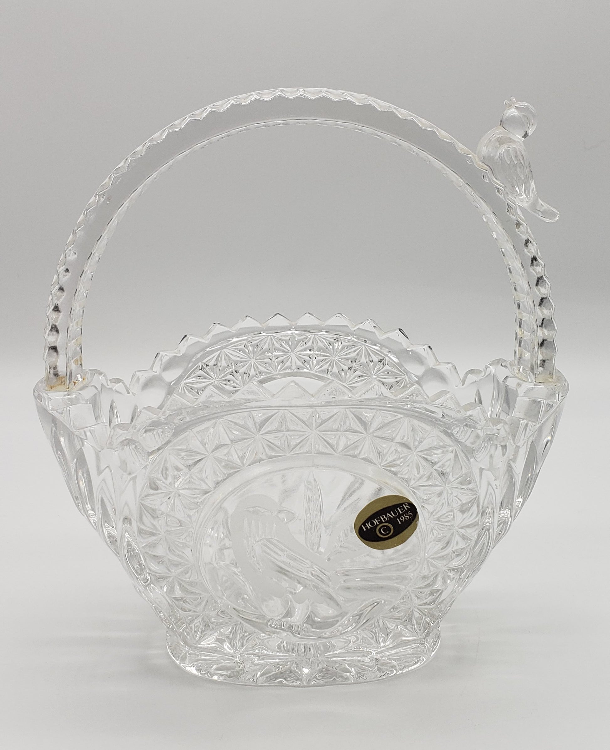 Hofbauer Germany Crystal Wedding Basket Bird Basket w Bird Figure on Handle - original sticker