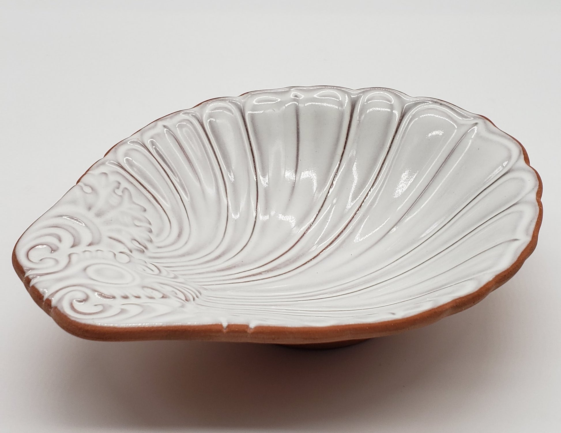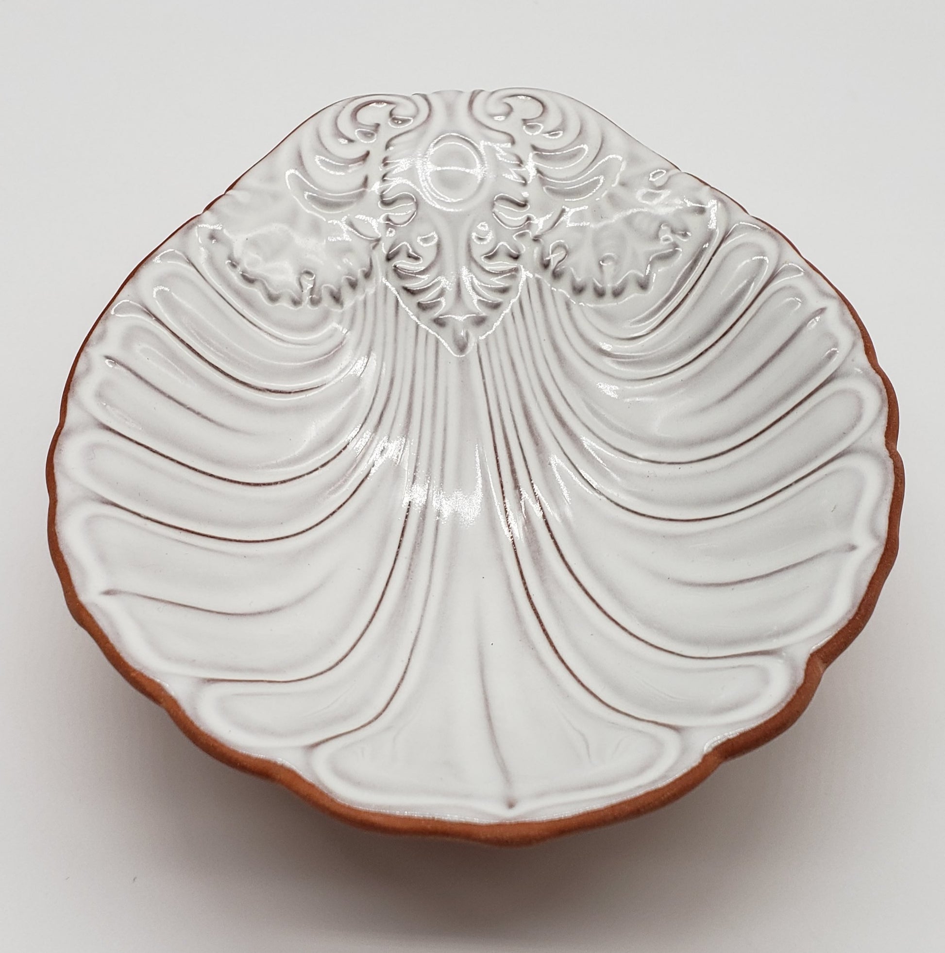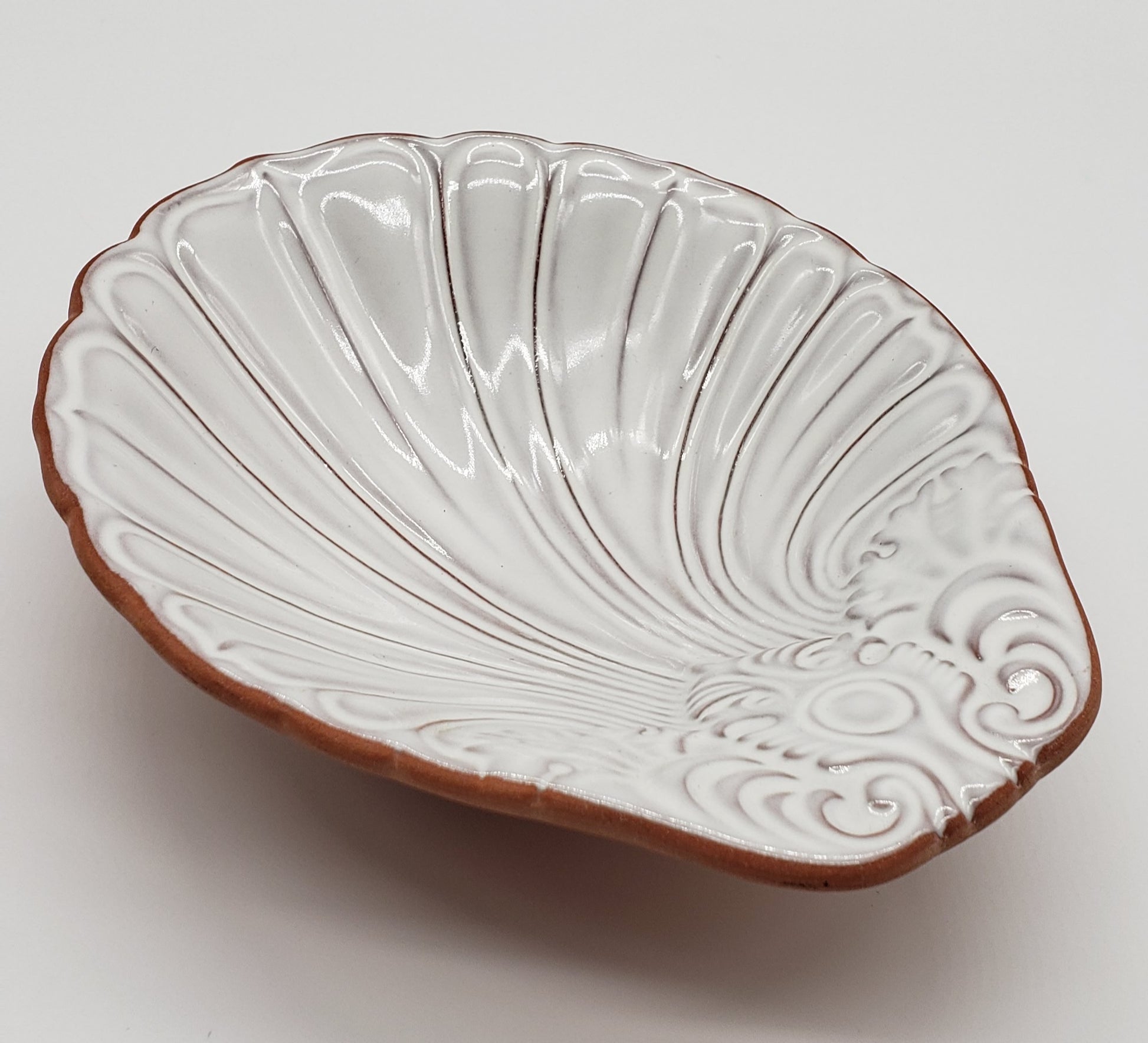 Loneoak & Co Pottery Sea Shell Shaped Terracotta with White Glaze Bowl Dish