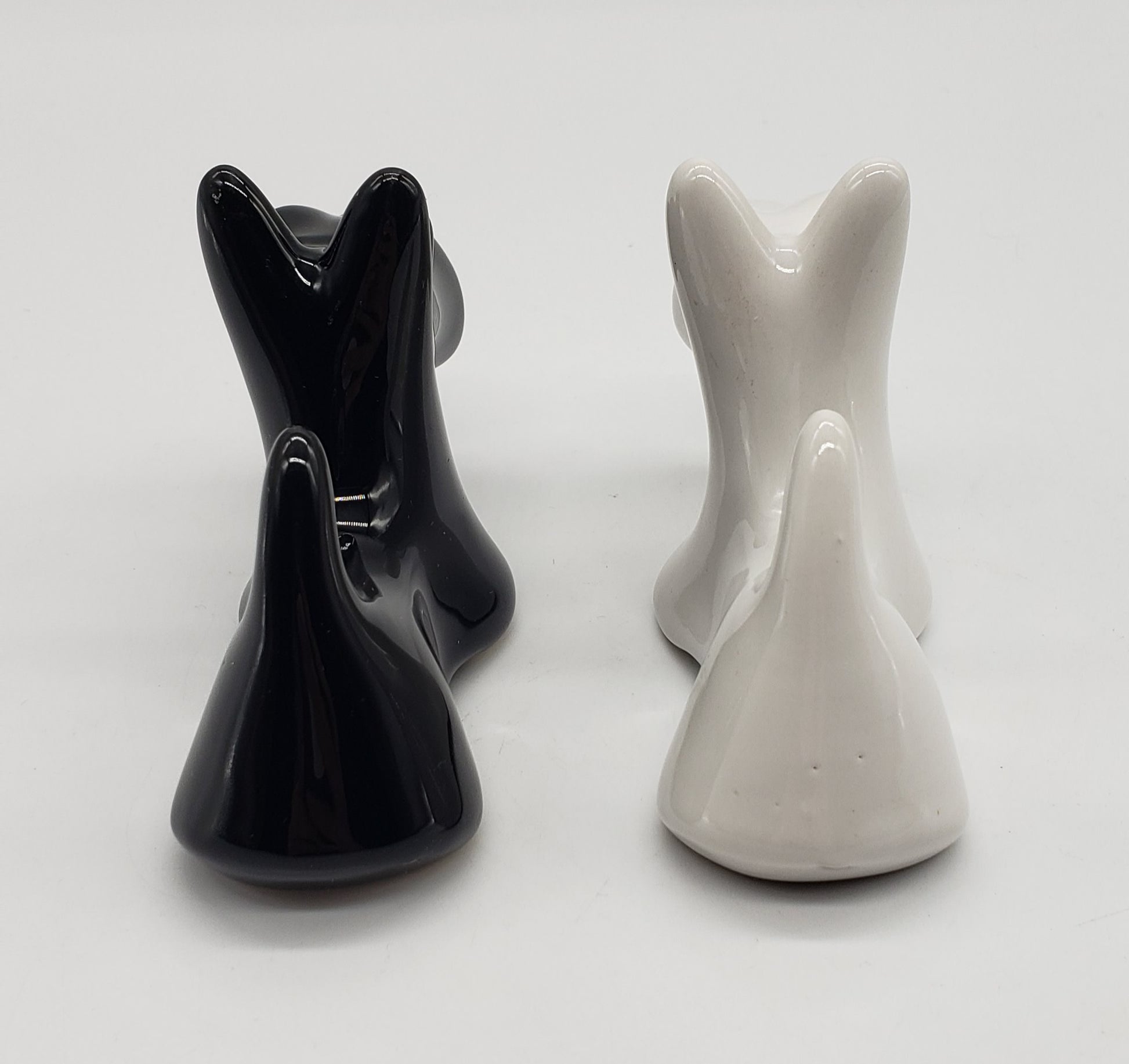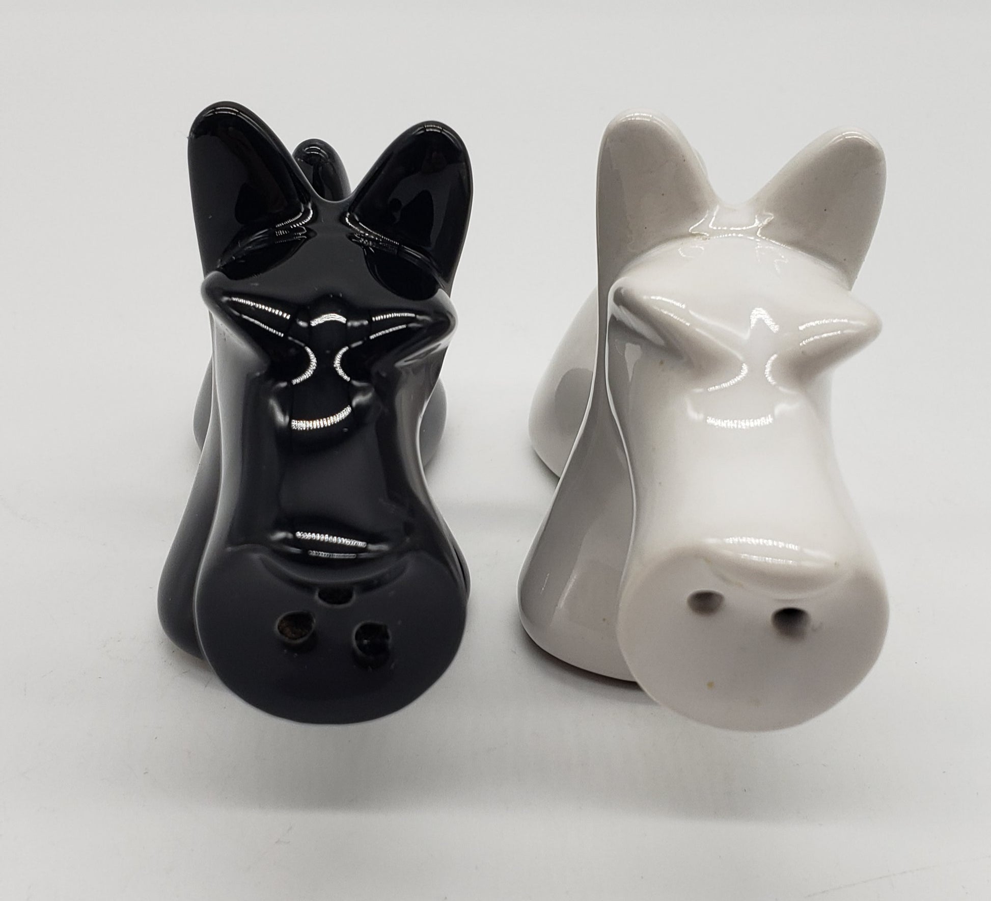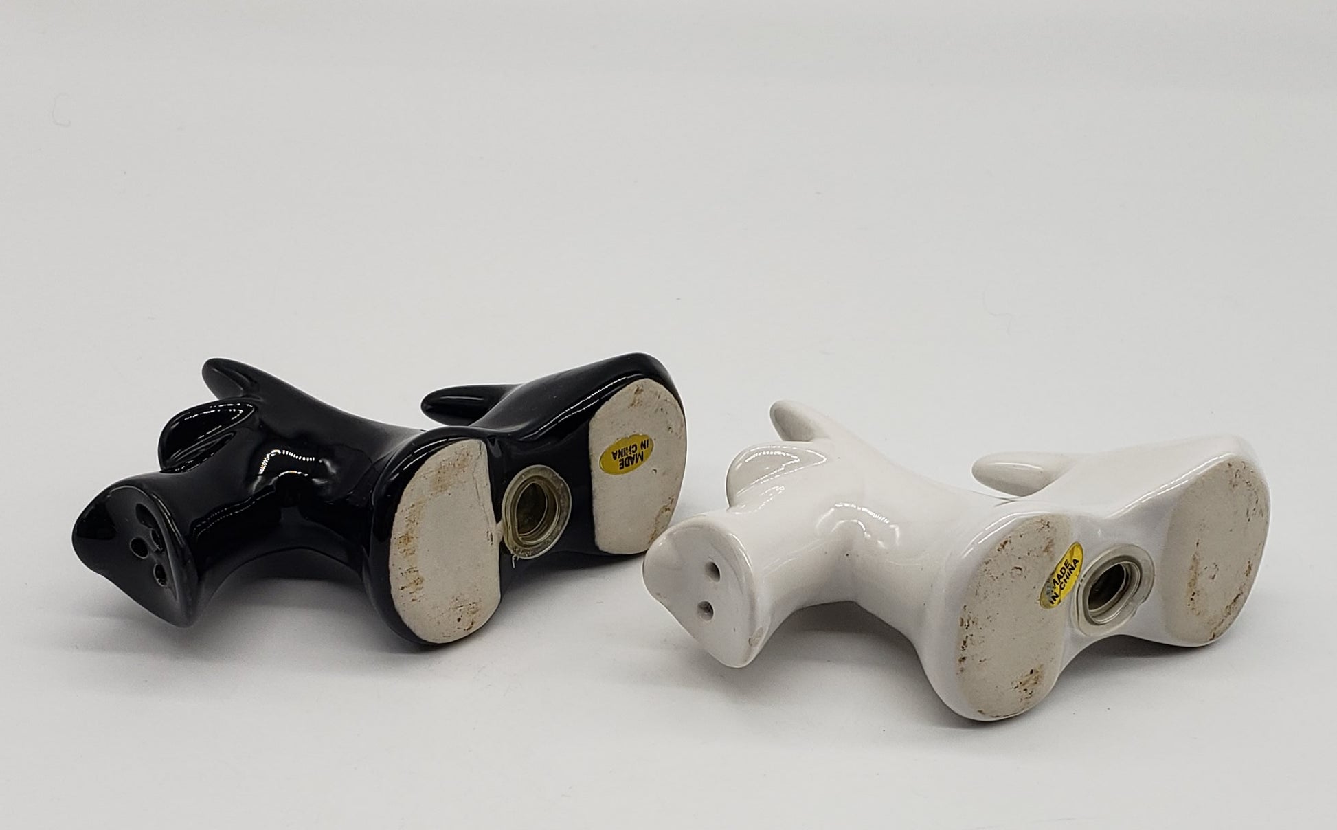 Scotty Dog Salt & Pepper Set -Scottish Terrier Black & White Ceramic Dog Shakers. White dog has small chip under snout