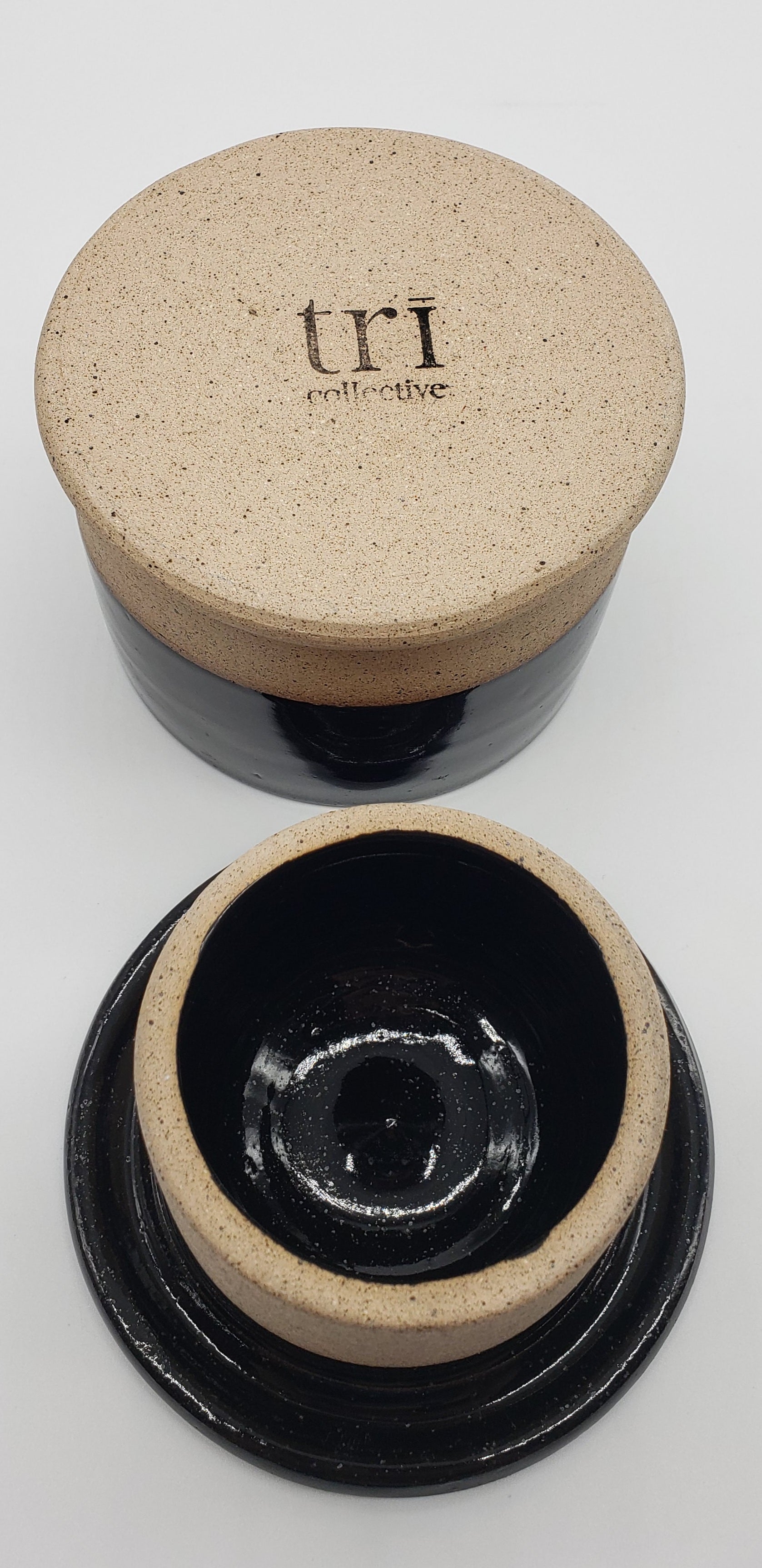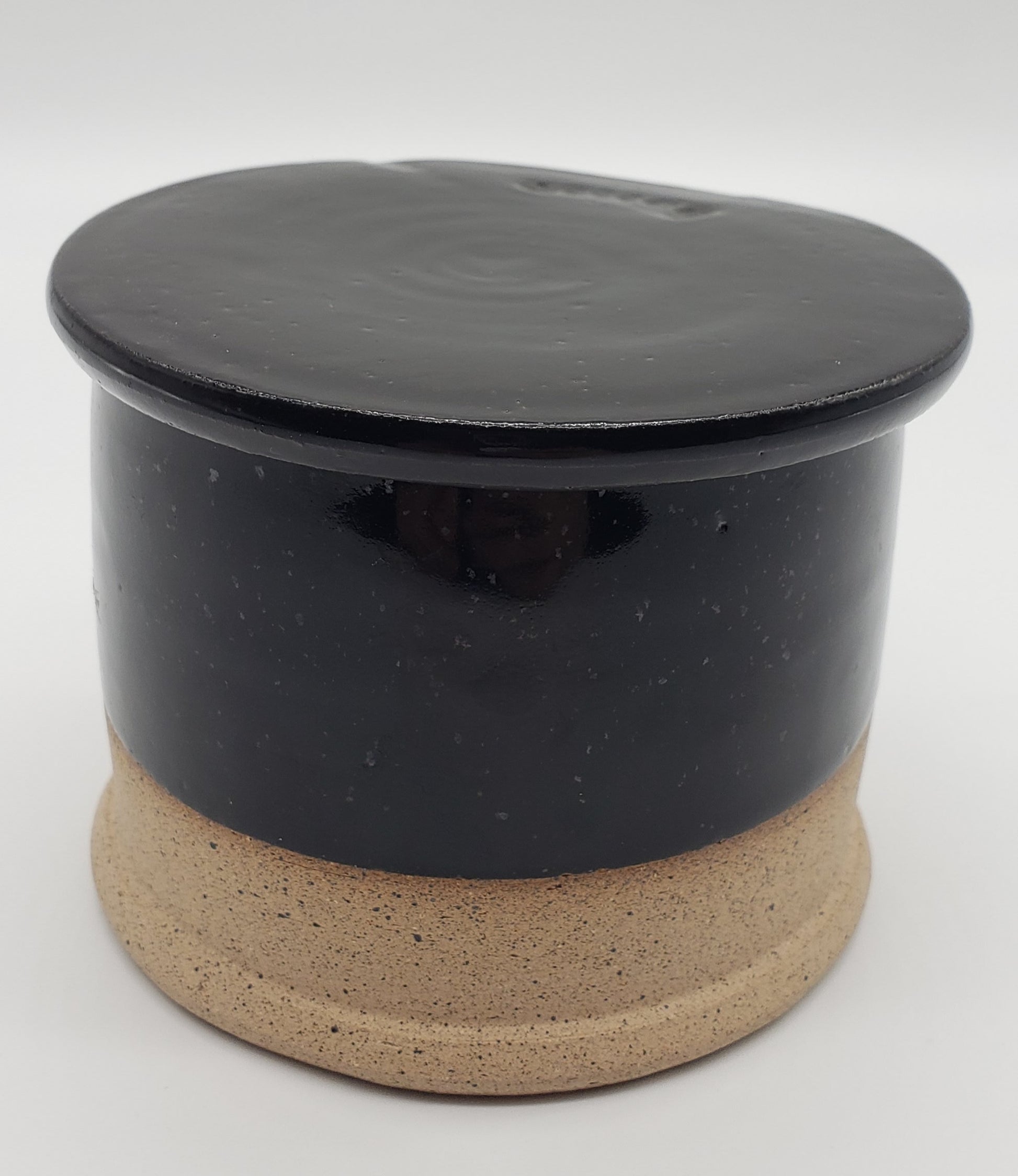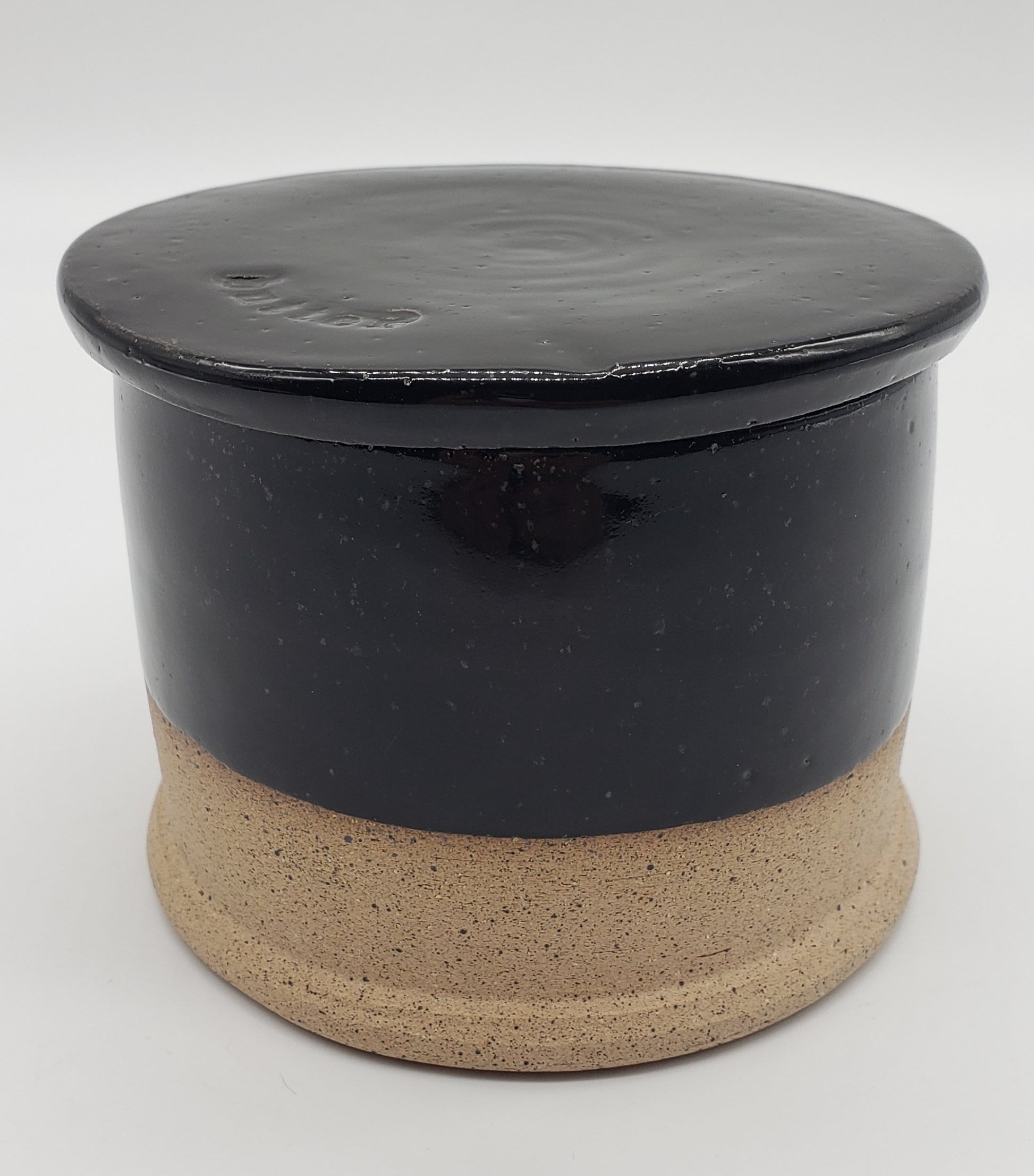 Keep your butter fresh and soft for everyday use with this handmade, wheel thrown stoneware butter urn. Simply fill the bottom of the urn with approximately 1" of fresh water and pack the top portion with the butter of your choice. Keep the top on/in the urn on your countertop out of direct sunlight for use. The water should be freshened every 3-4 days to be sure it remains above the butter level.