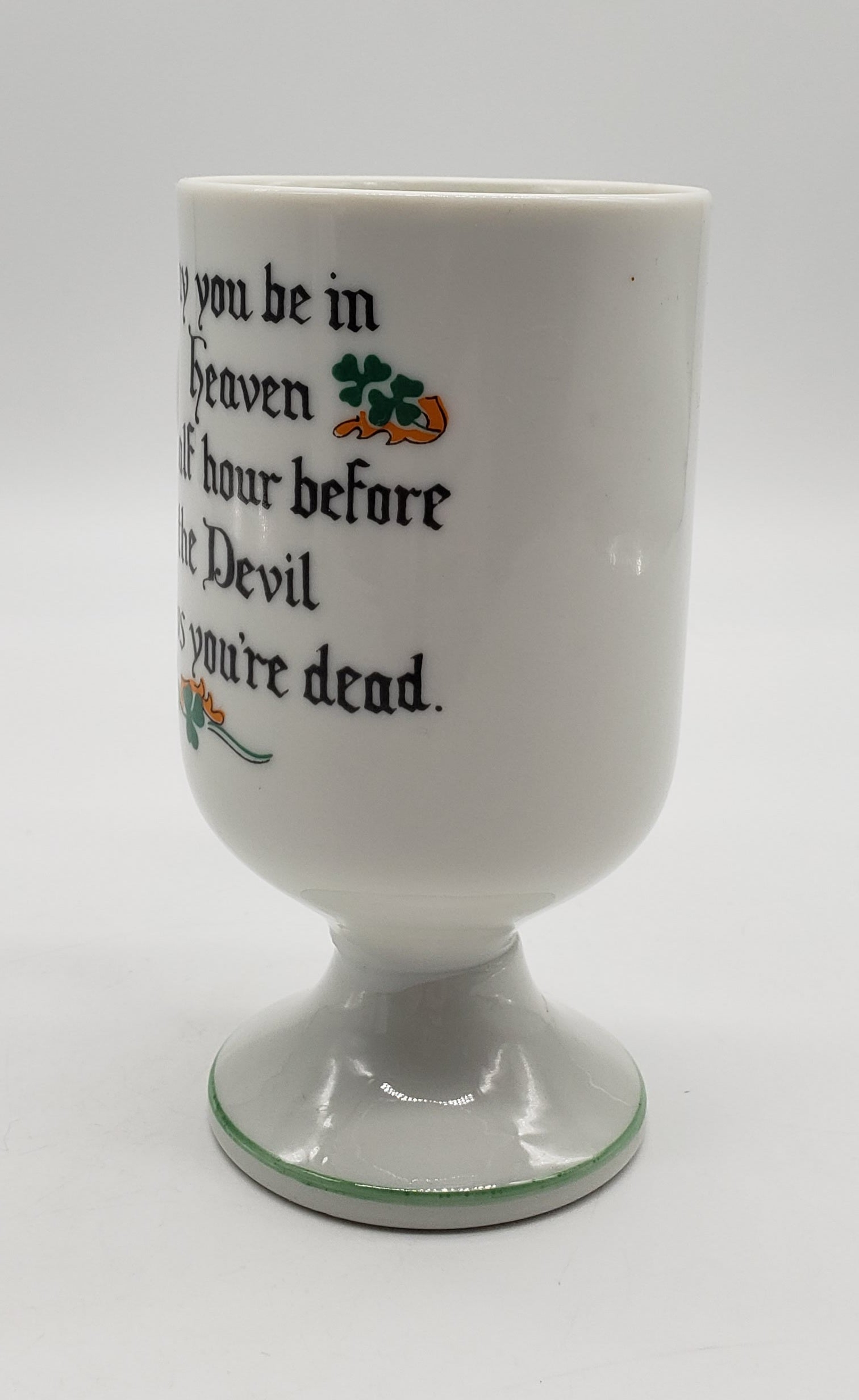 Saying on Back: " May you be in heaven a half hour before the Devil knows you're dead."