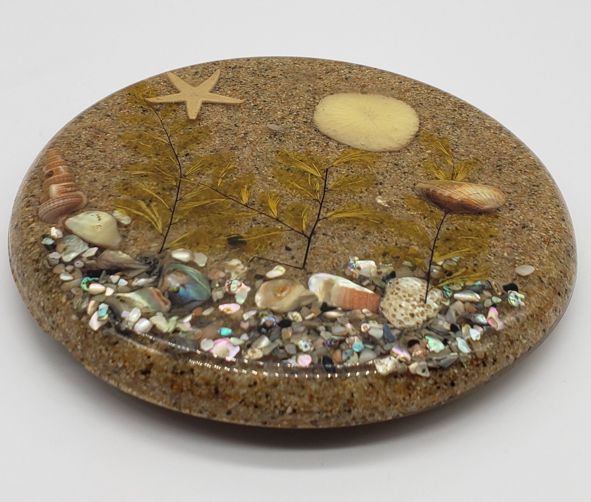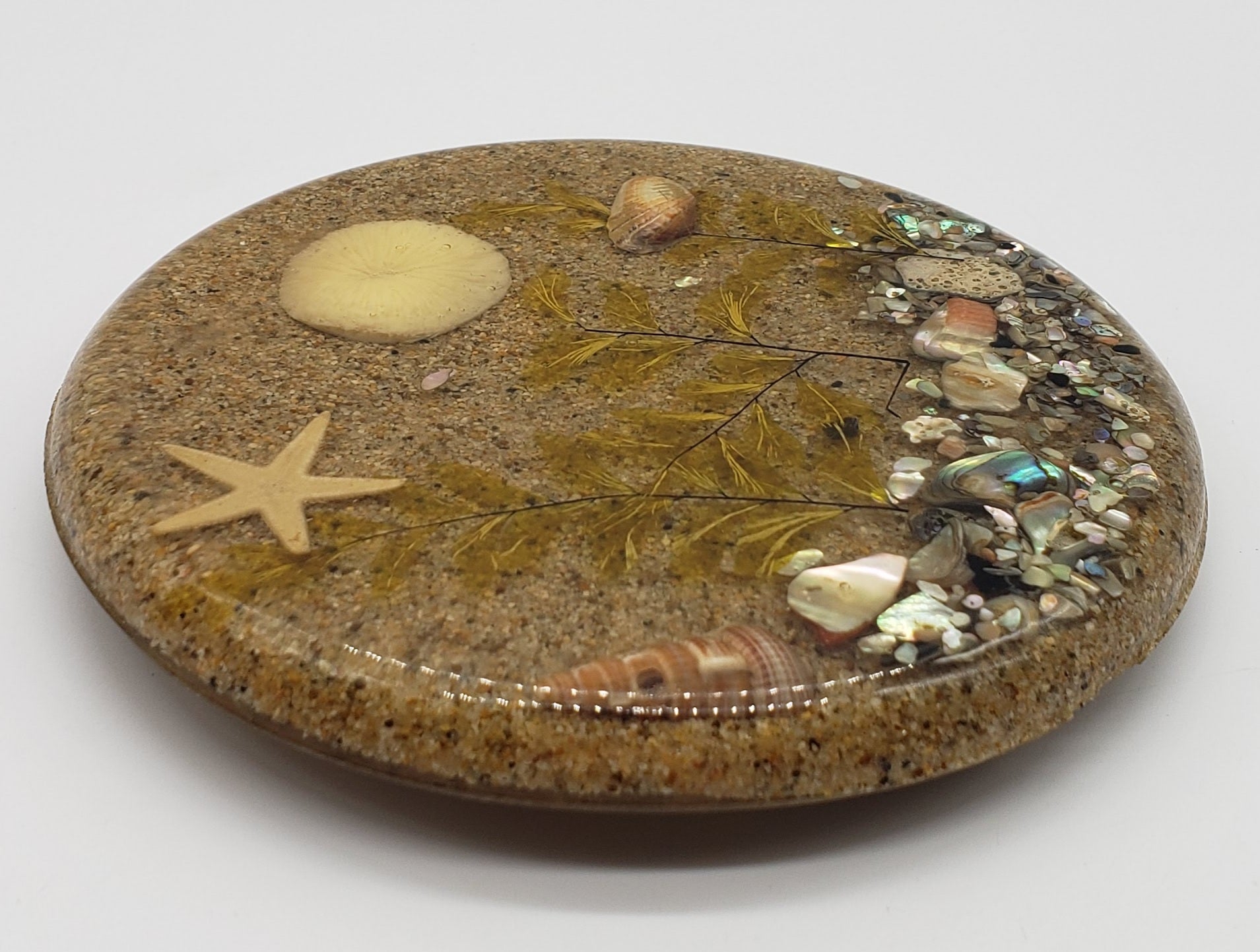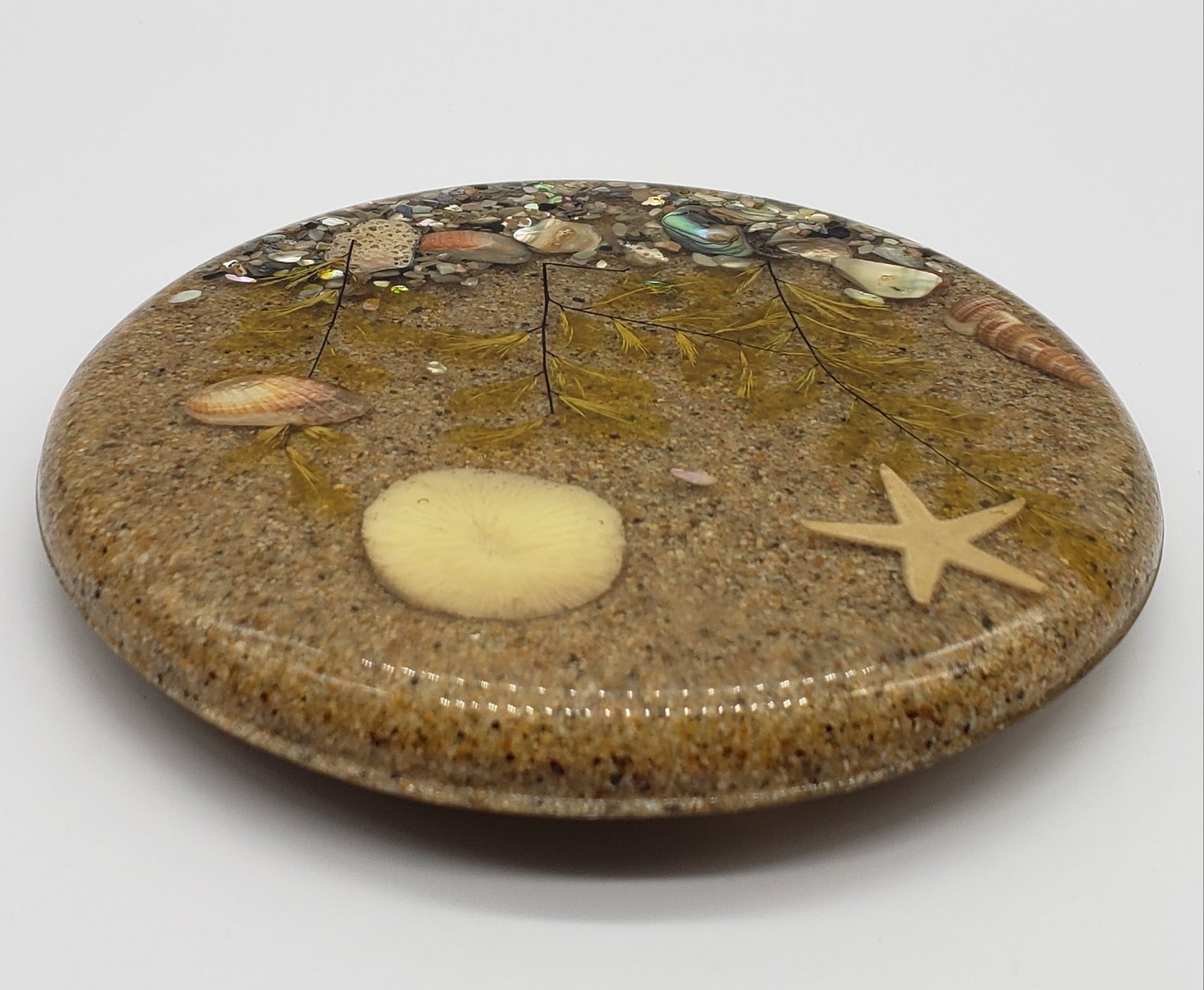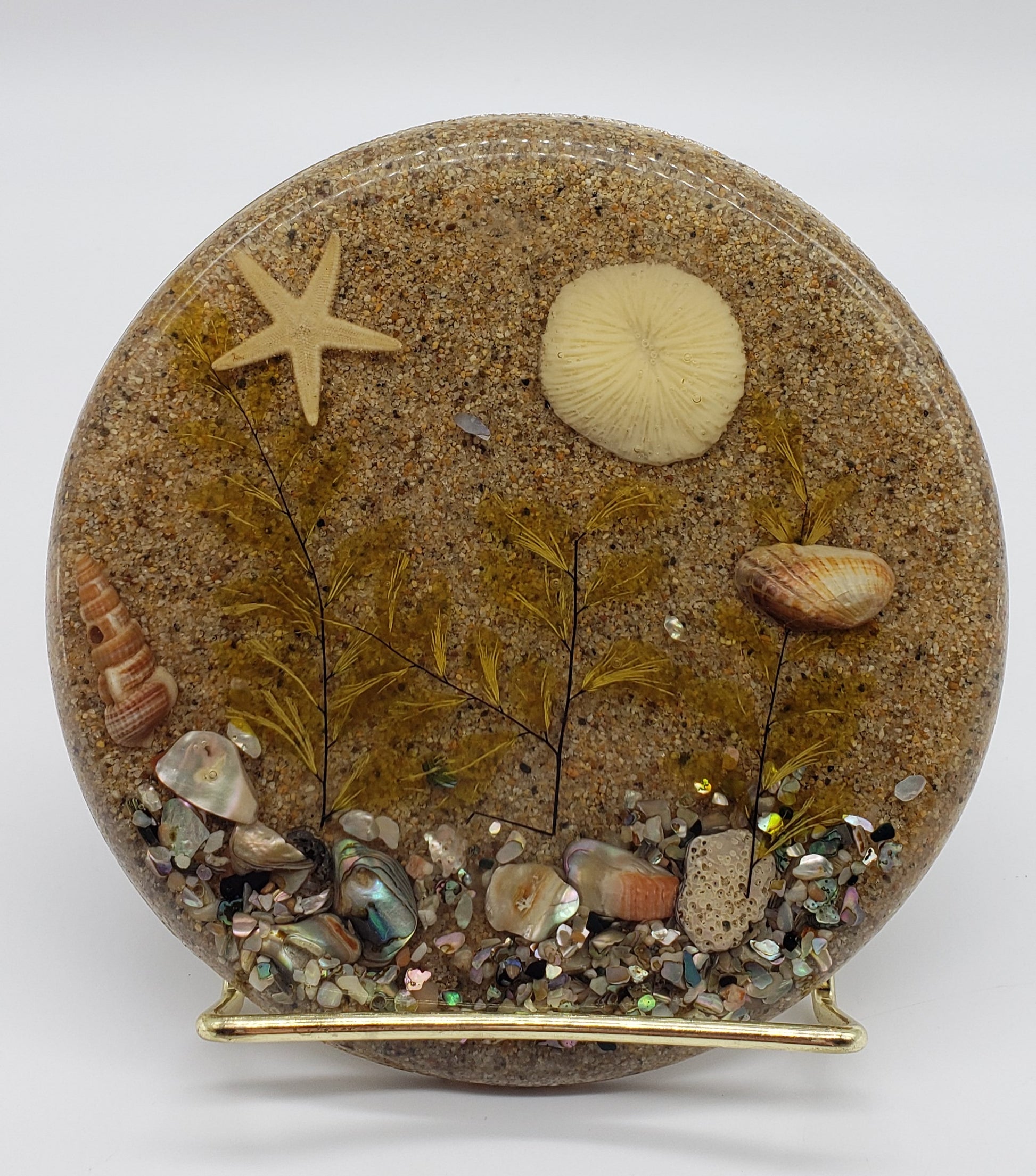 Vintage Lucite Trivet with Sand and Sea Scene Encased Inside.