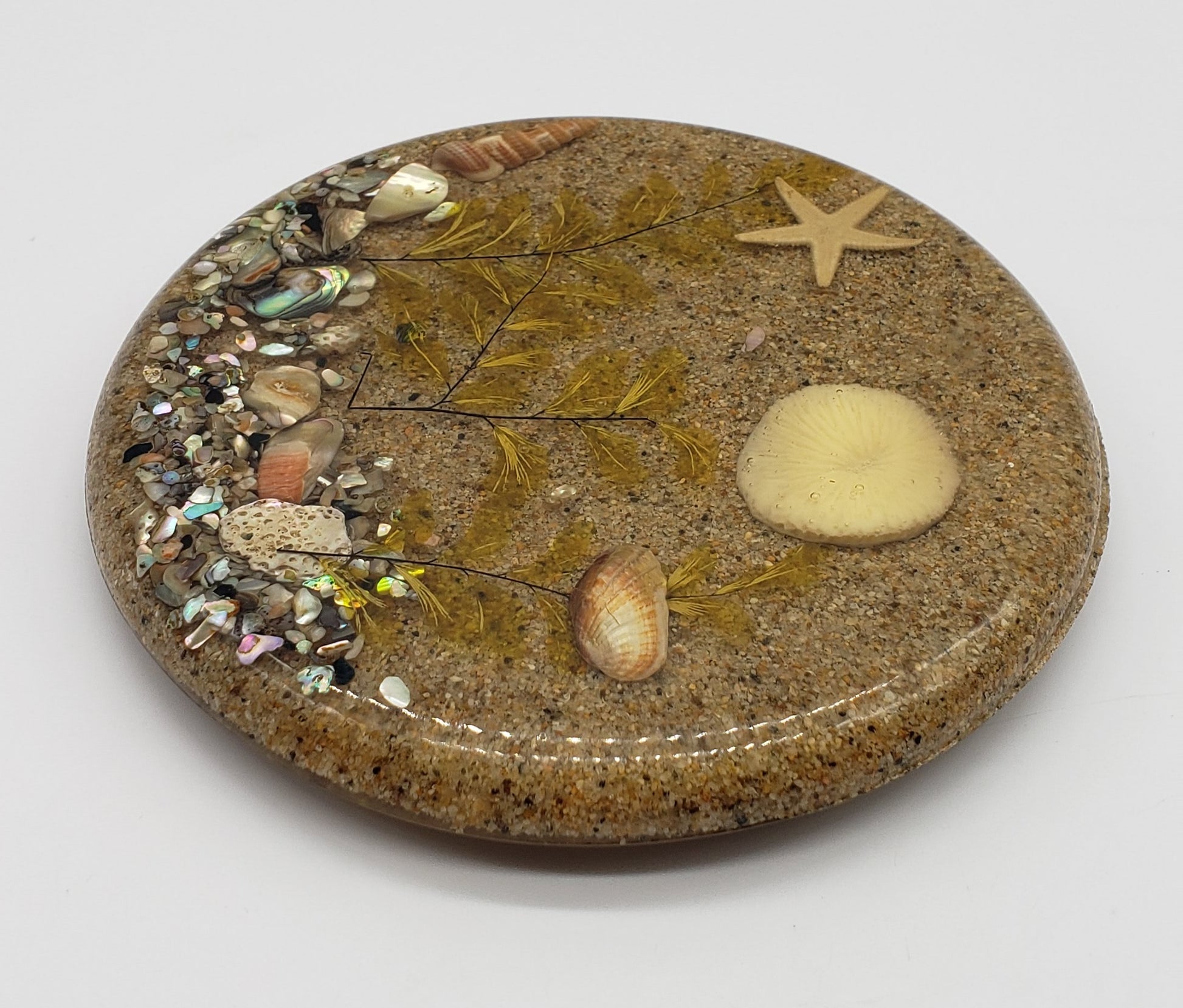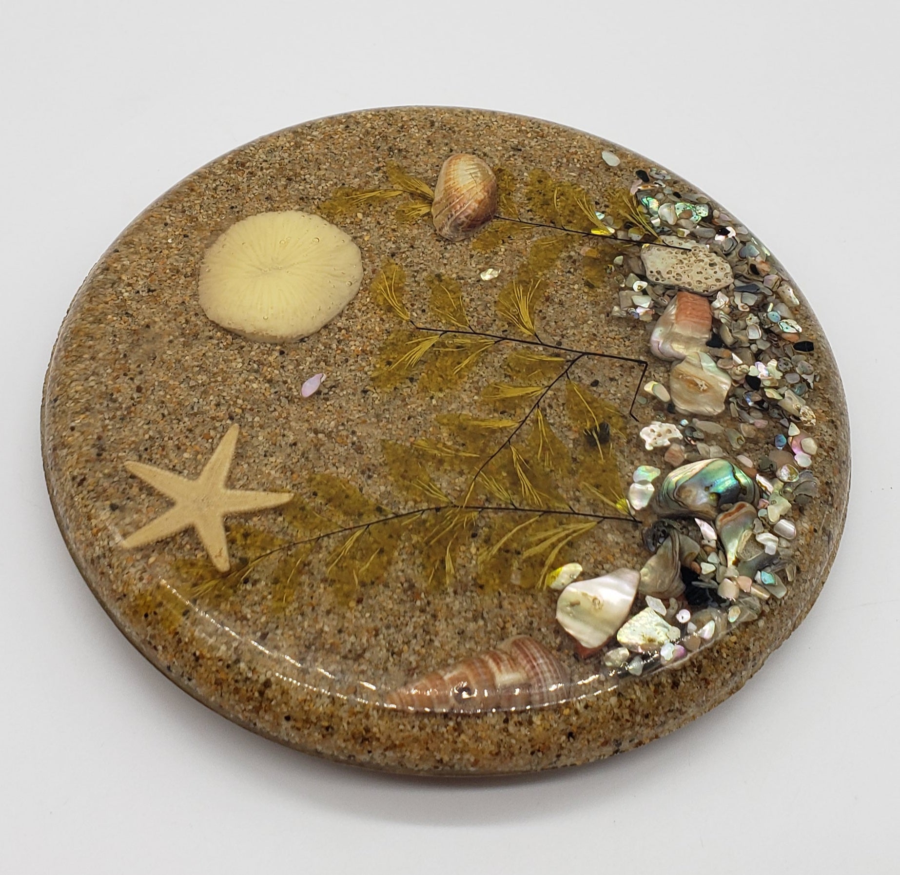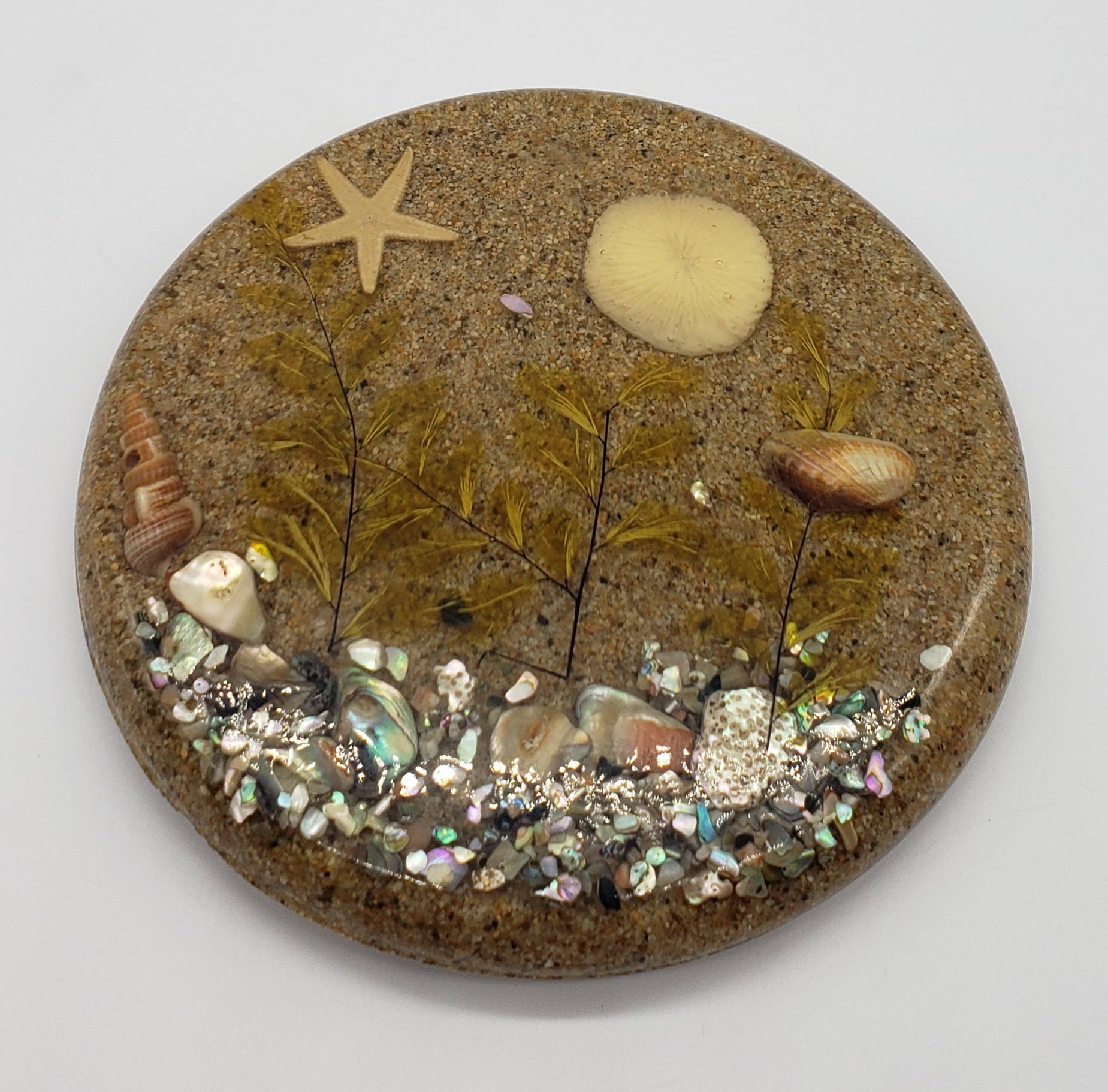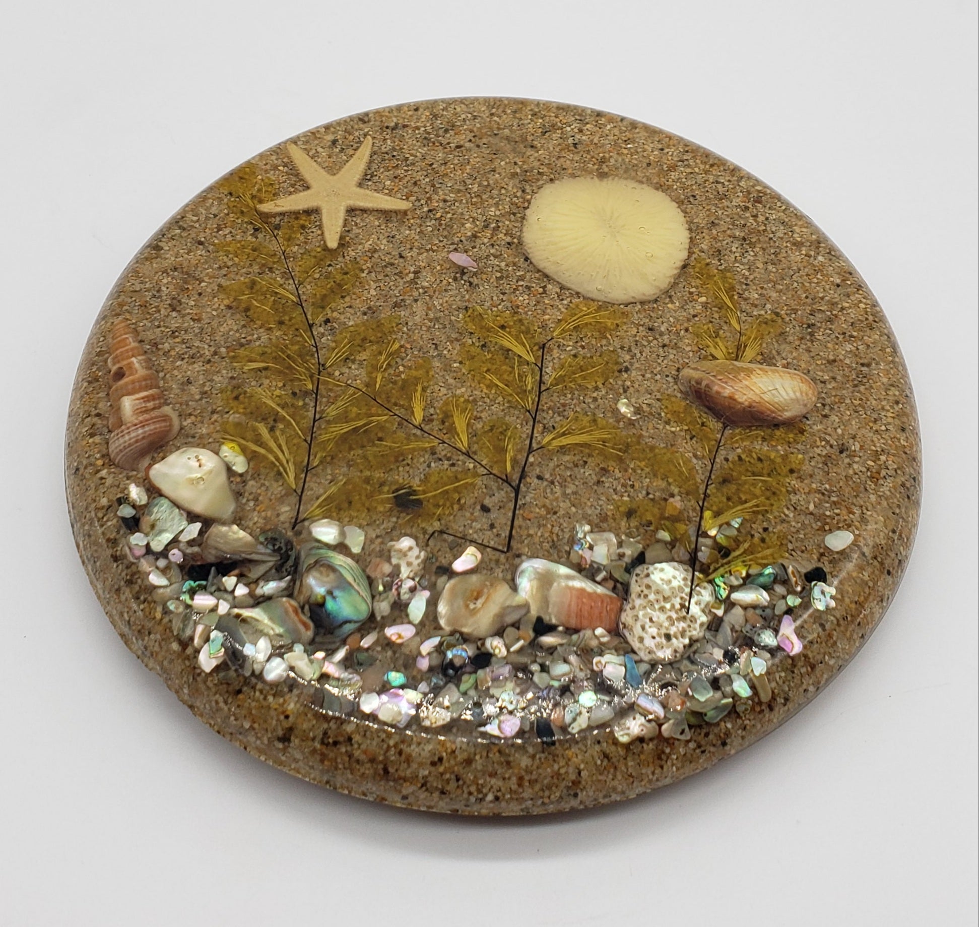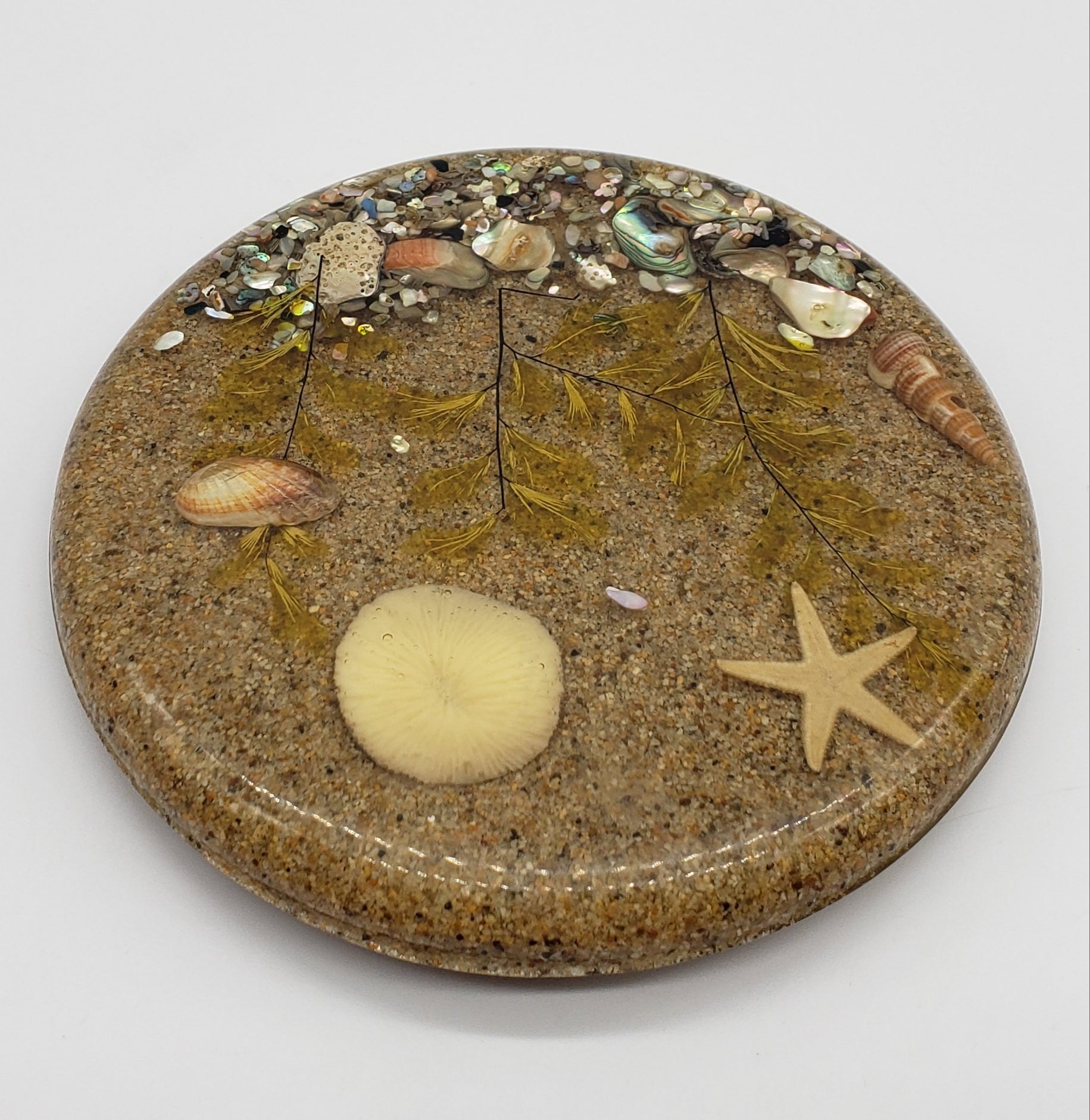 Vintage Lucite Trivet with Sand and Sea Scene Encased Inside.