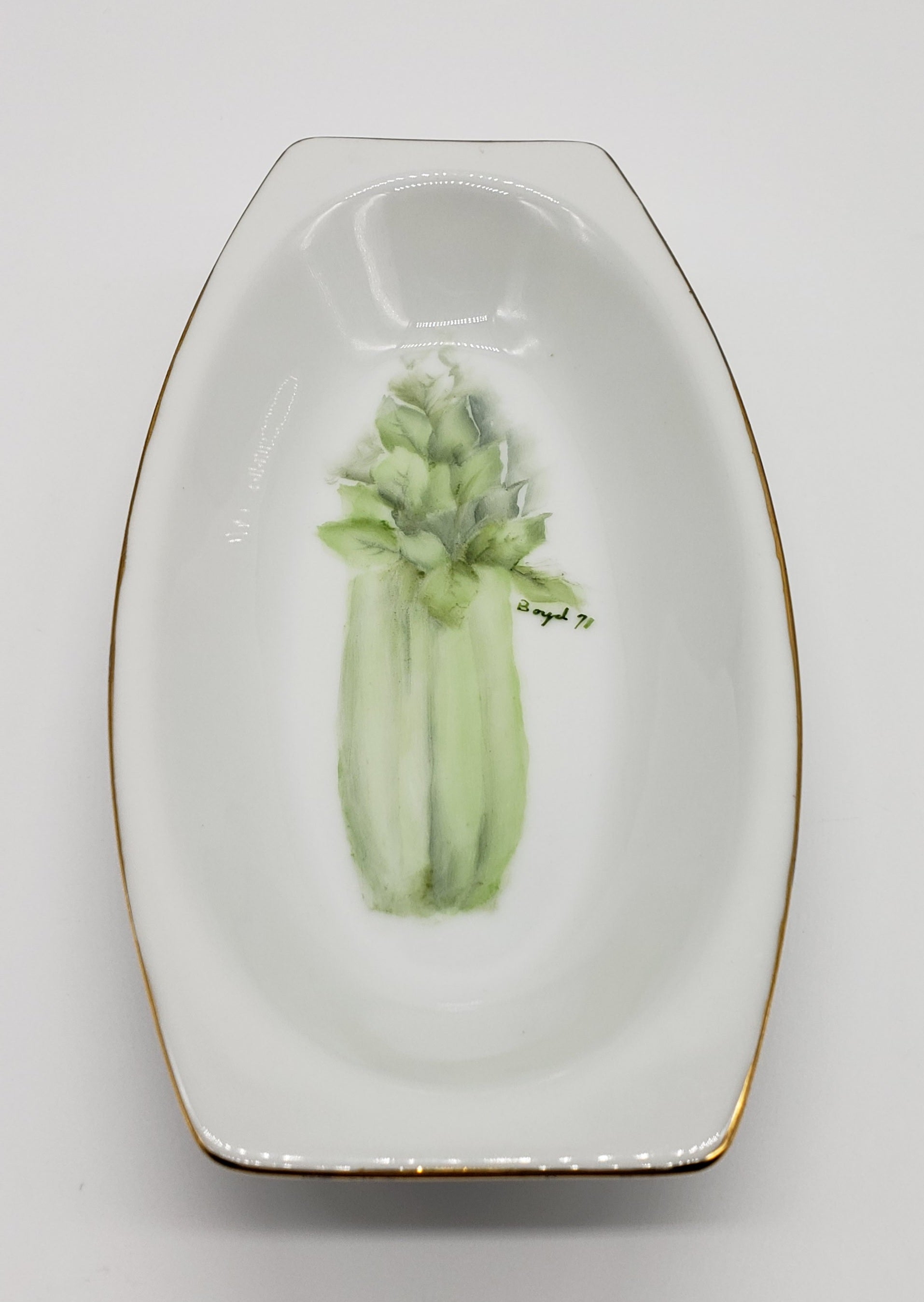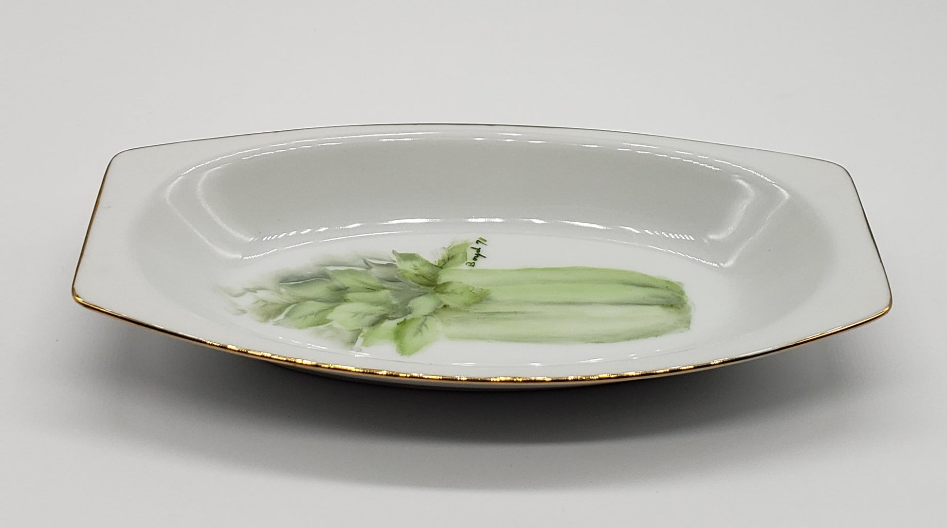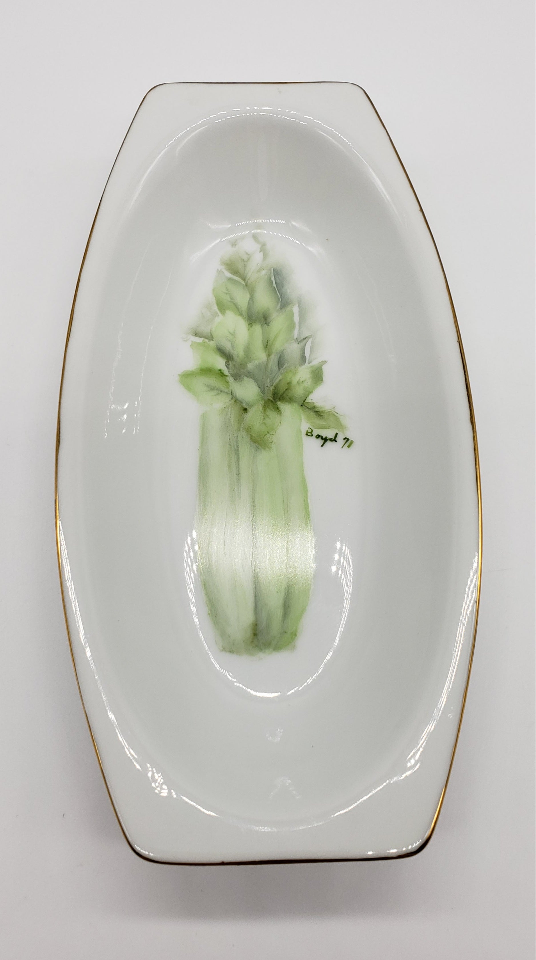Ceramic Hand Painted Celery Dish signed Boyd 71