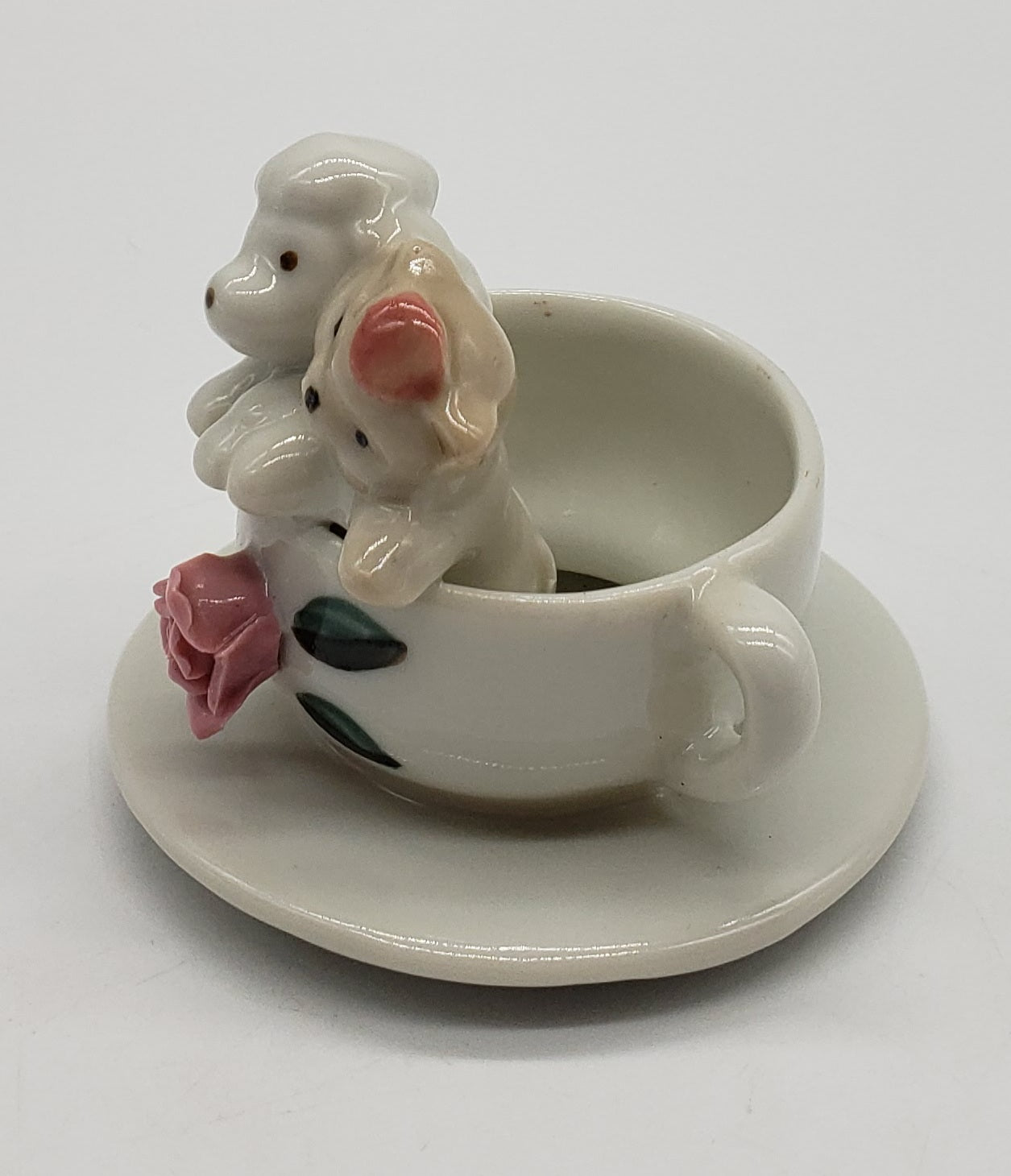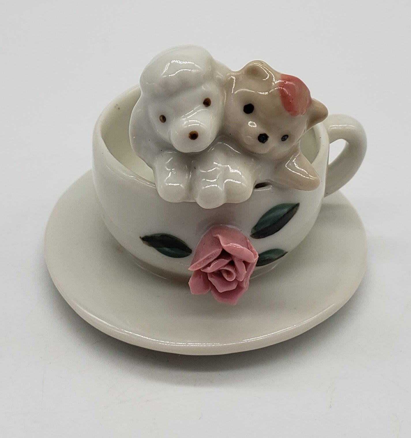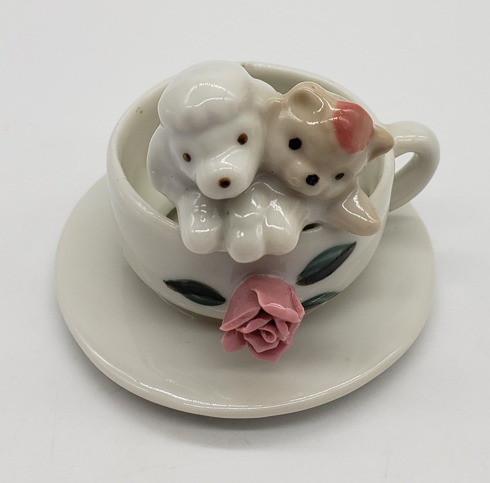 Vintage Porcelain Teacup Puppy Dog & Kitten Made in Taiwan
