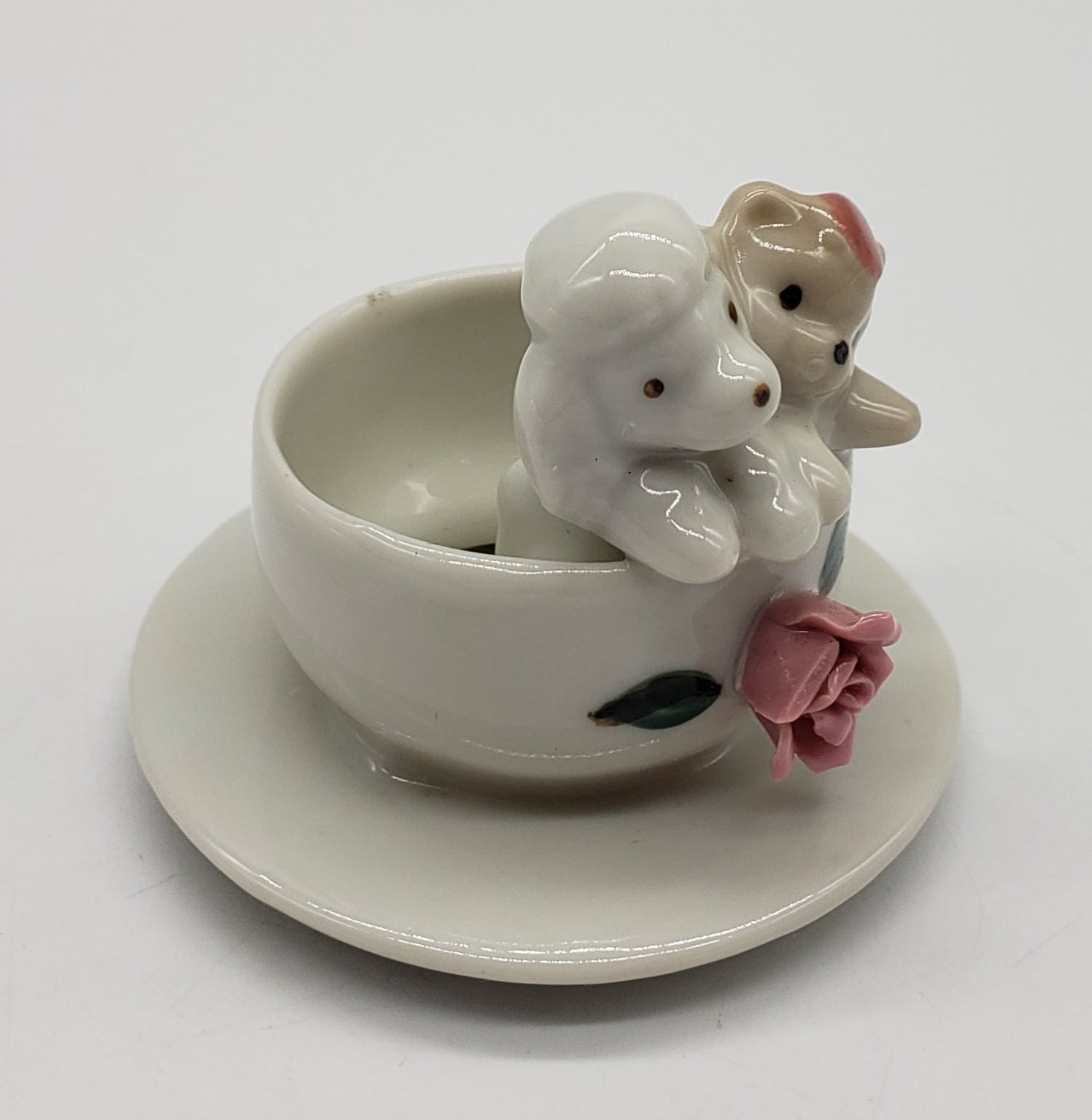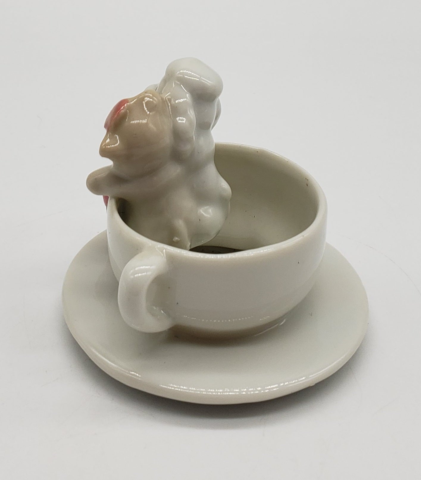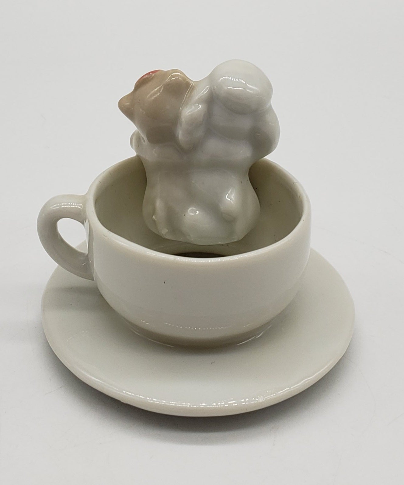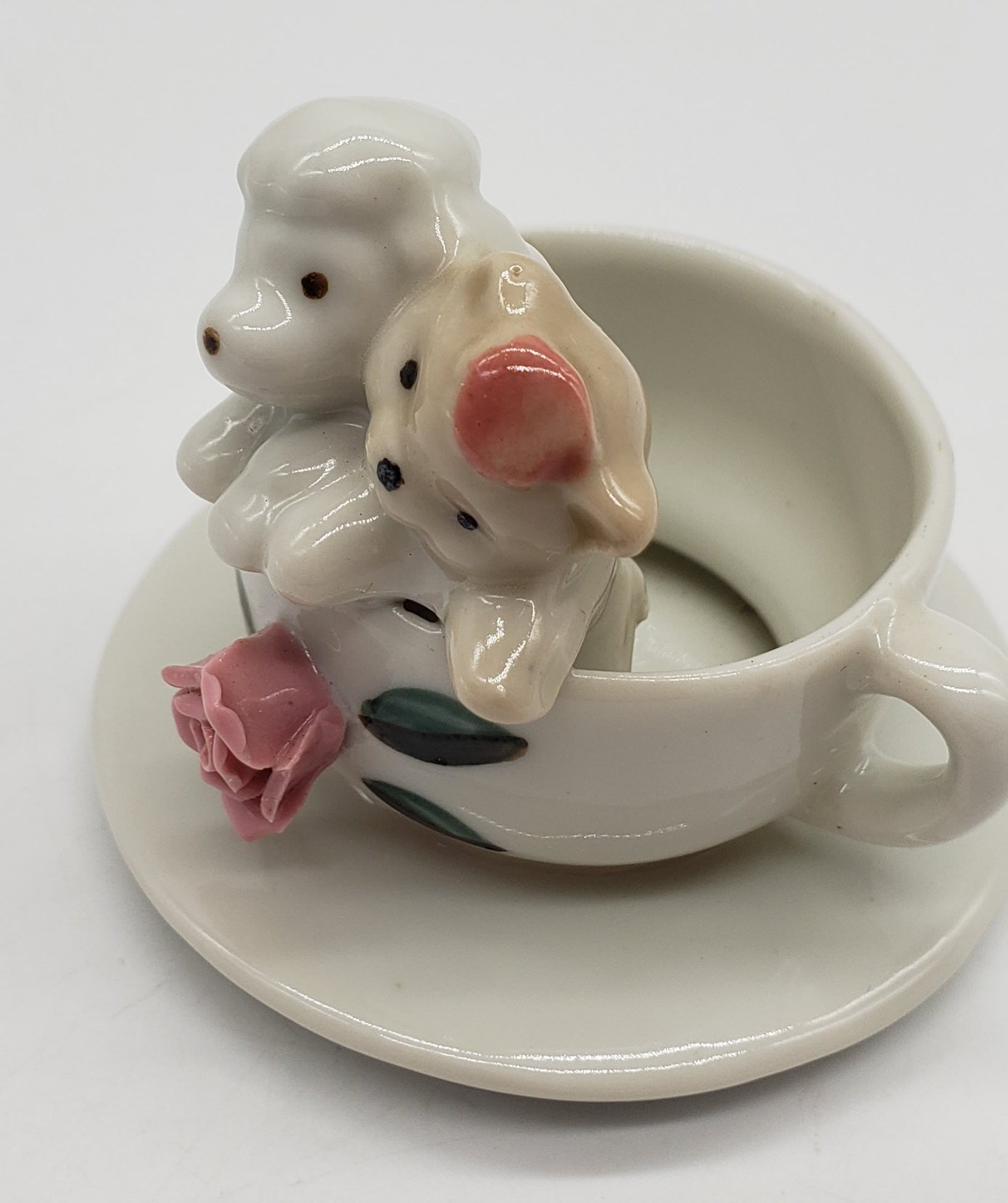 Vintage Porcelain Teacup Puppy Dog & Kitten Made in Taiwan