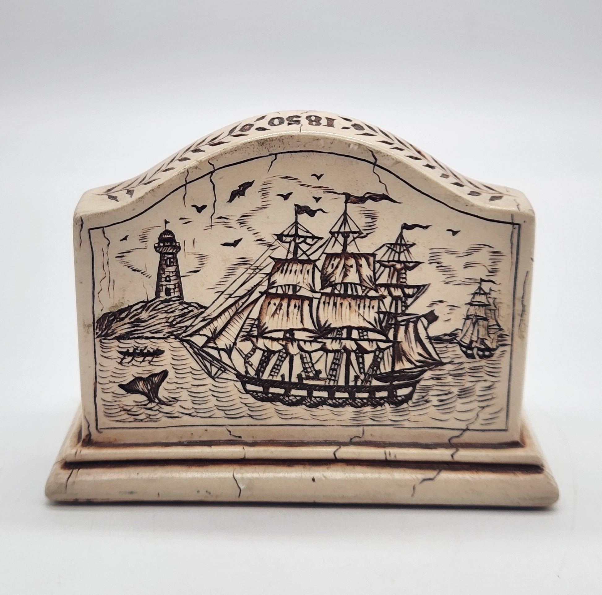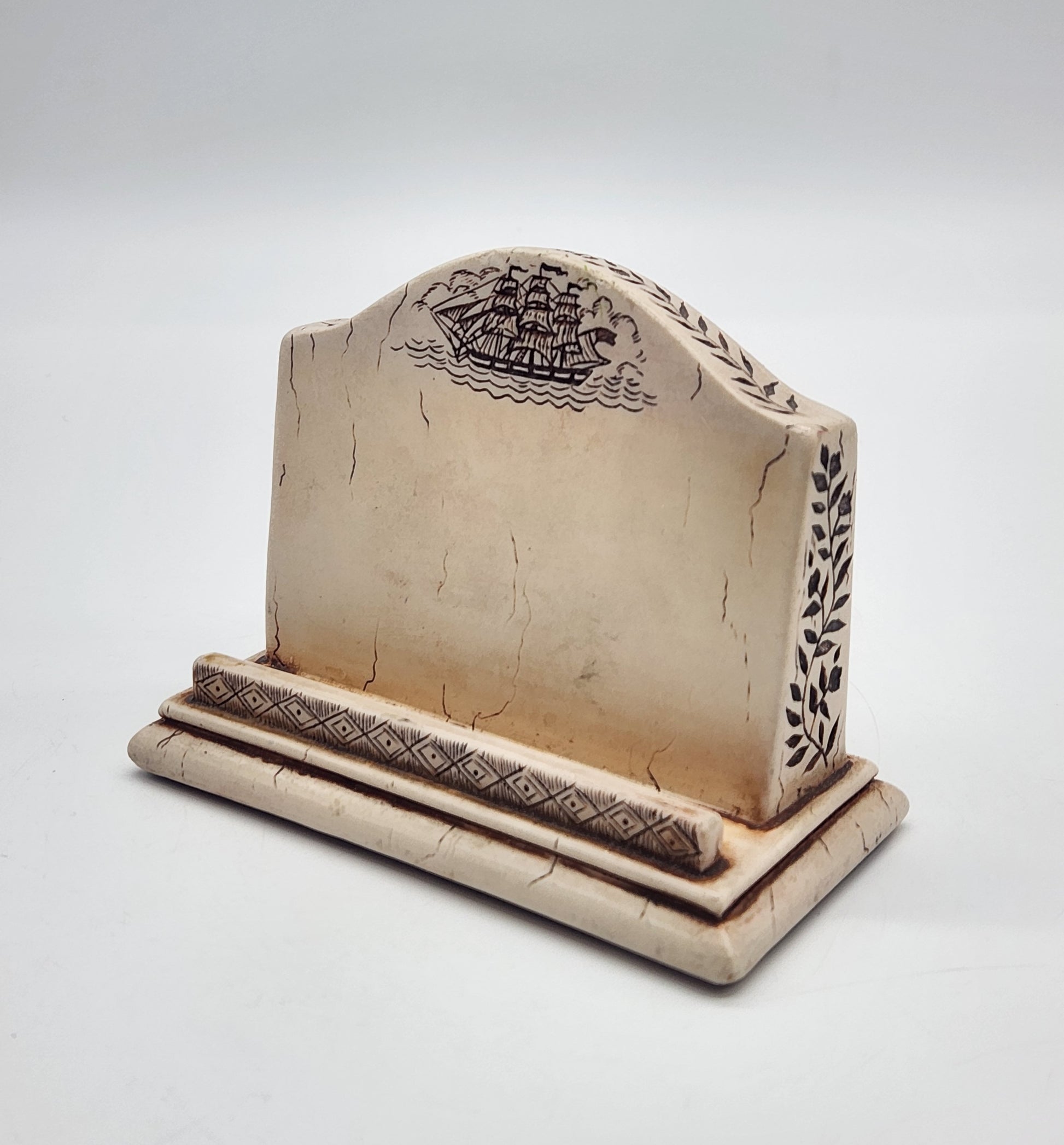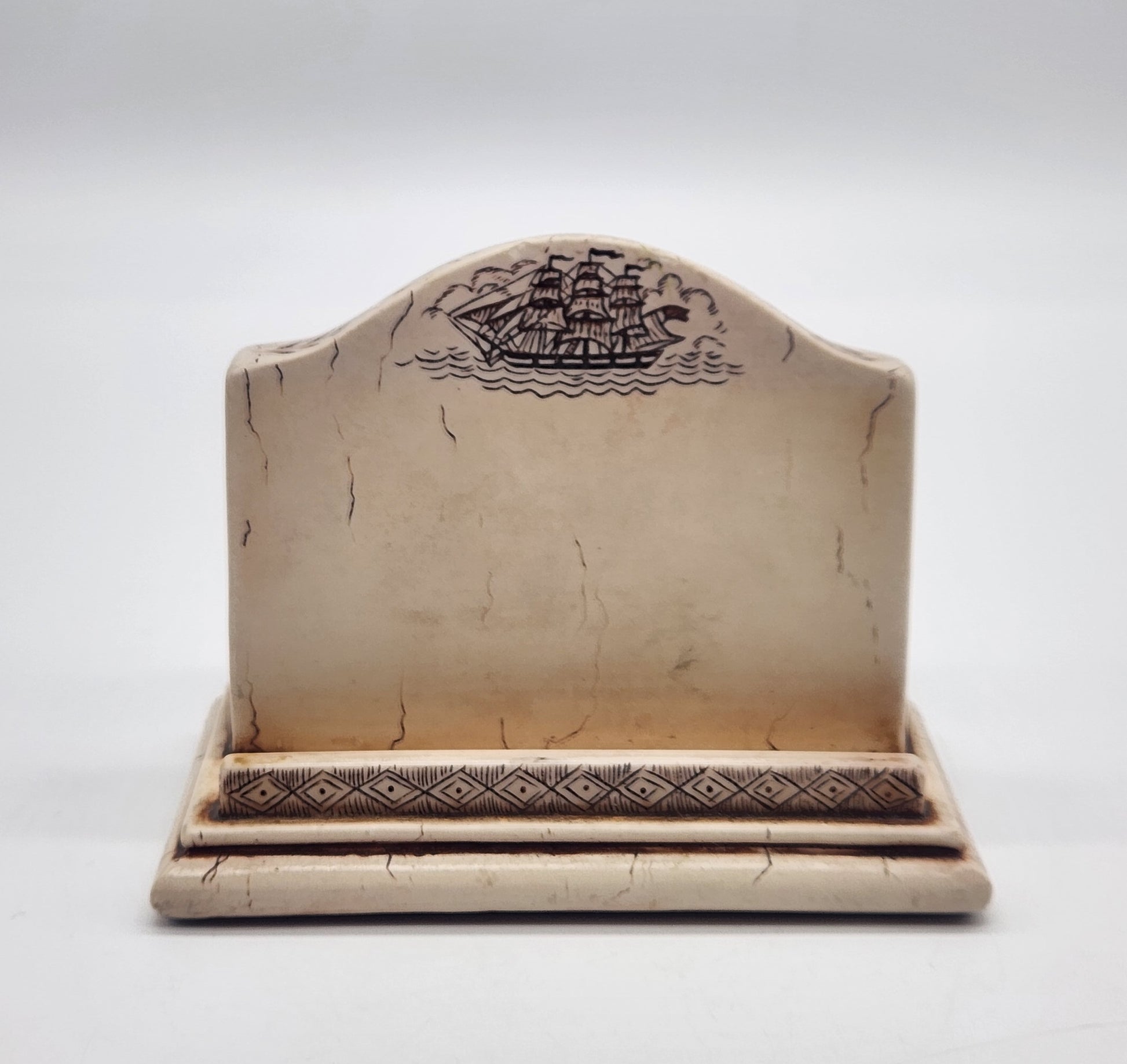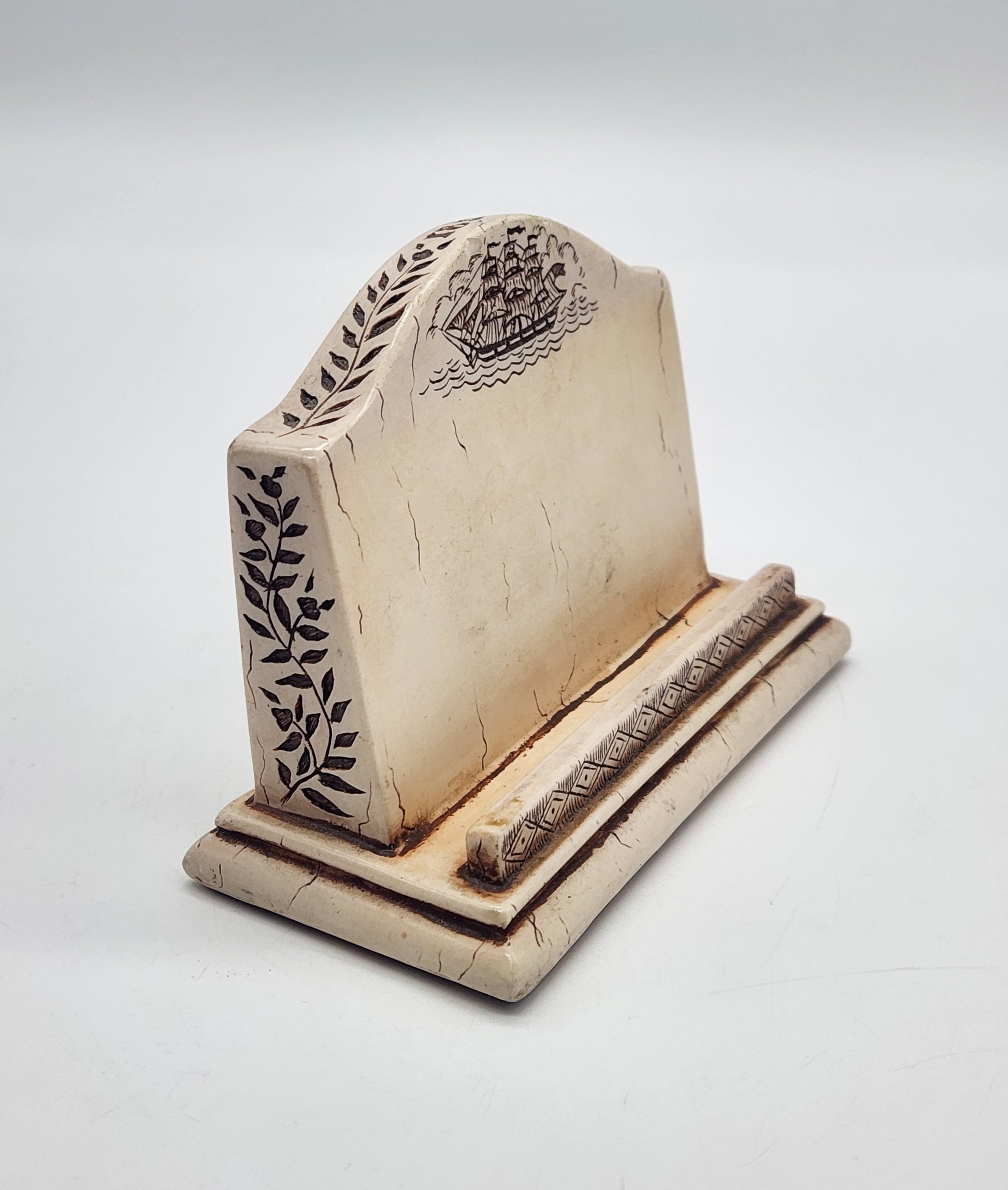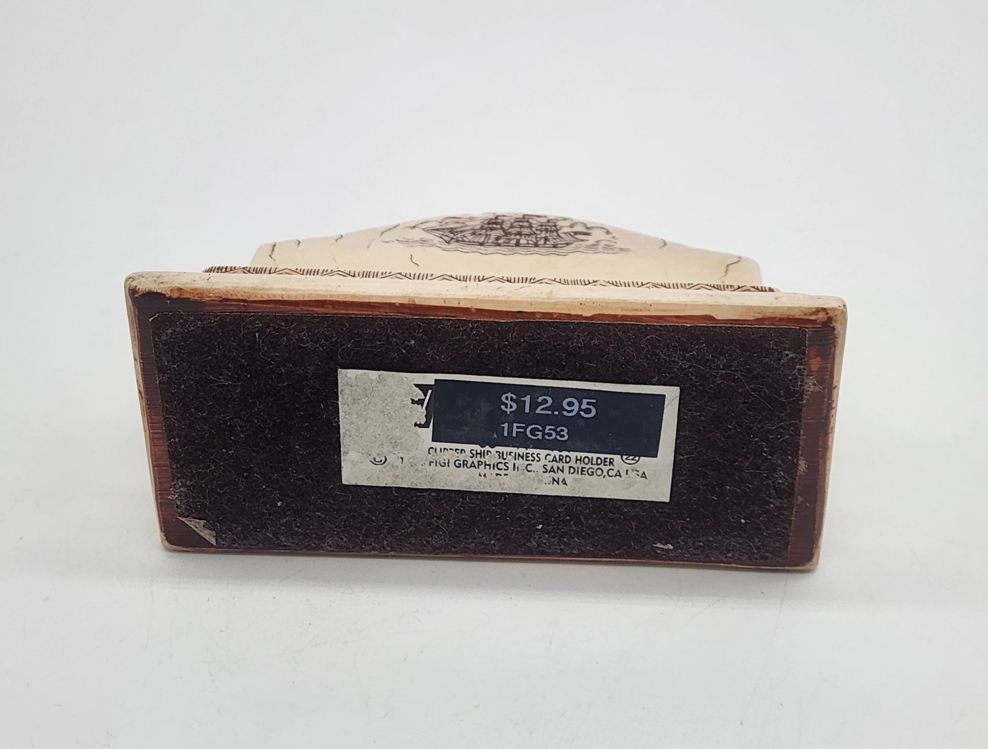 Vintage Scrimshaw Clipper Ship Resin Business Card Holder