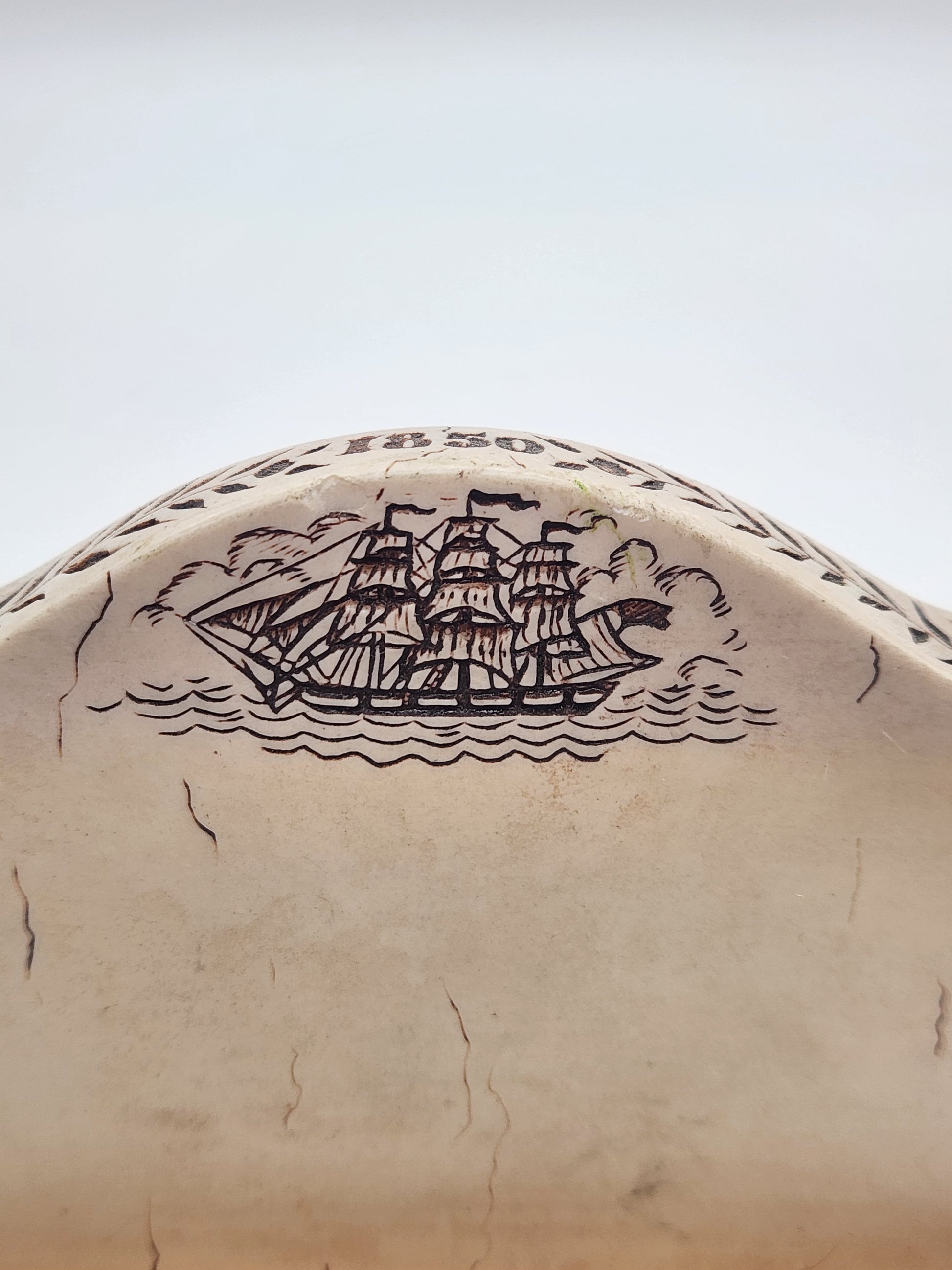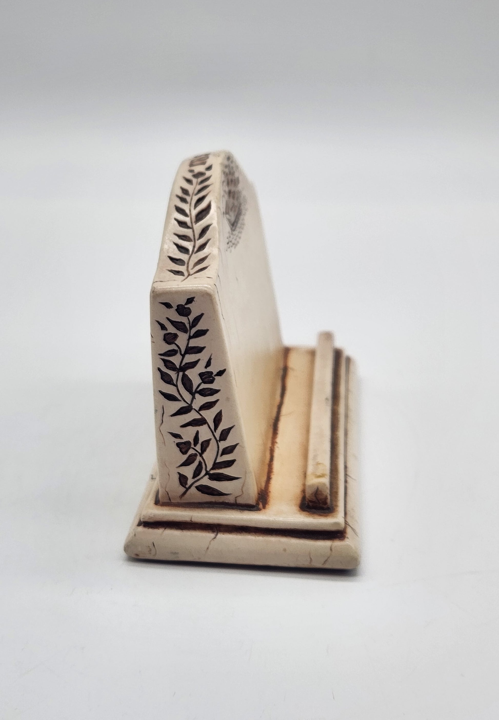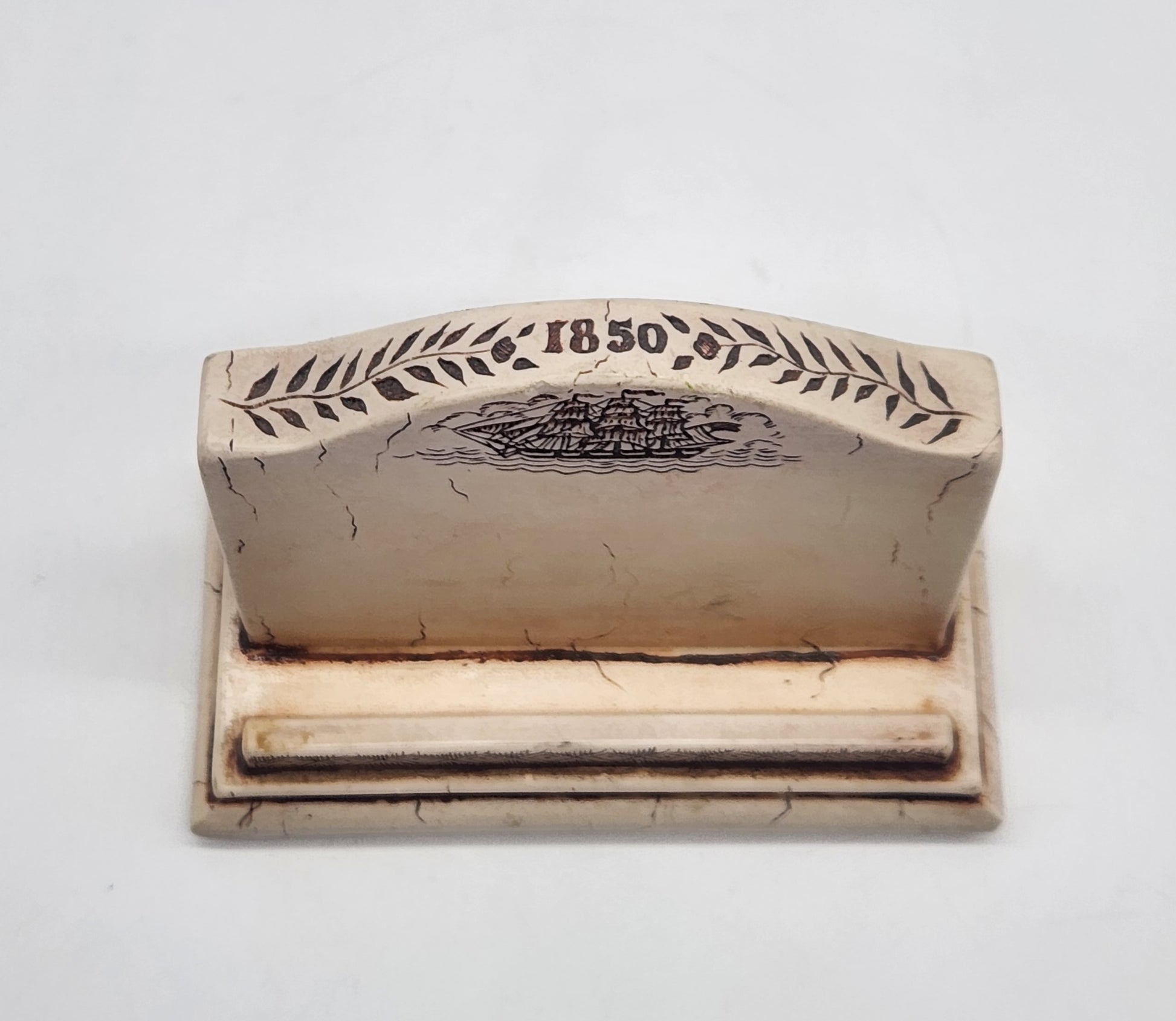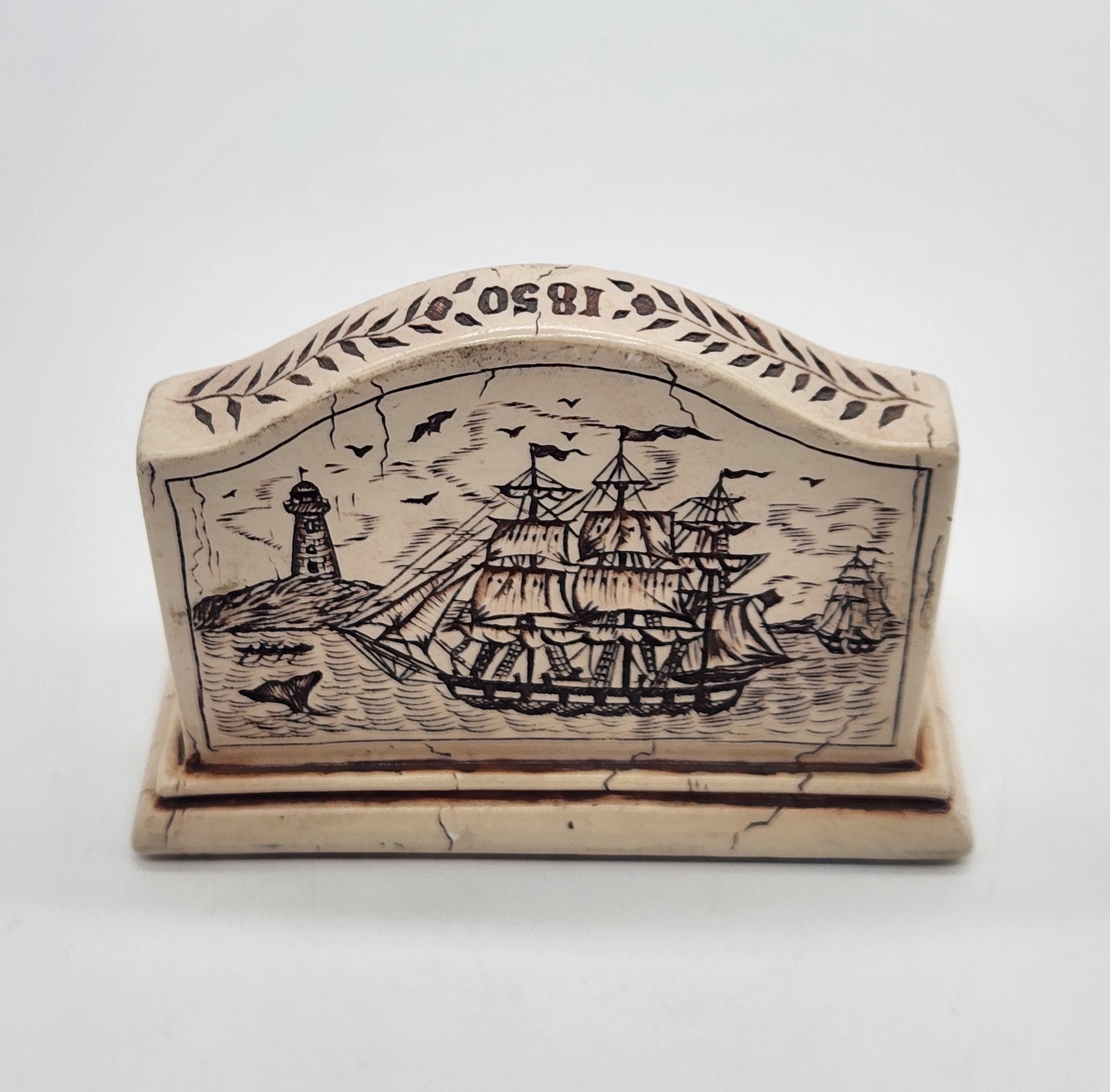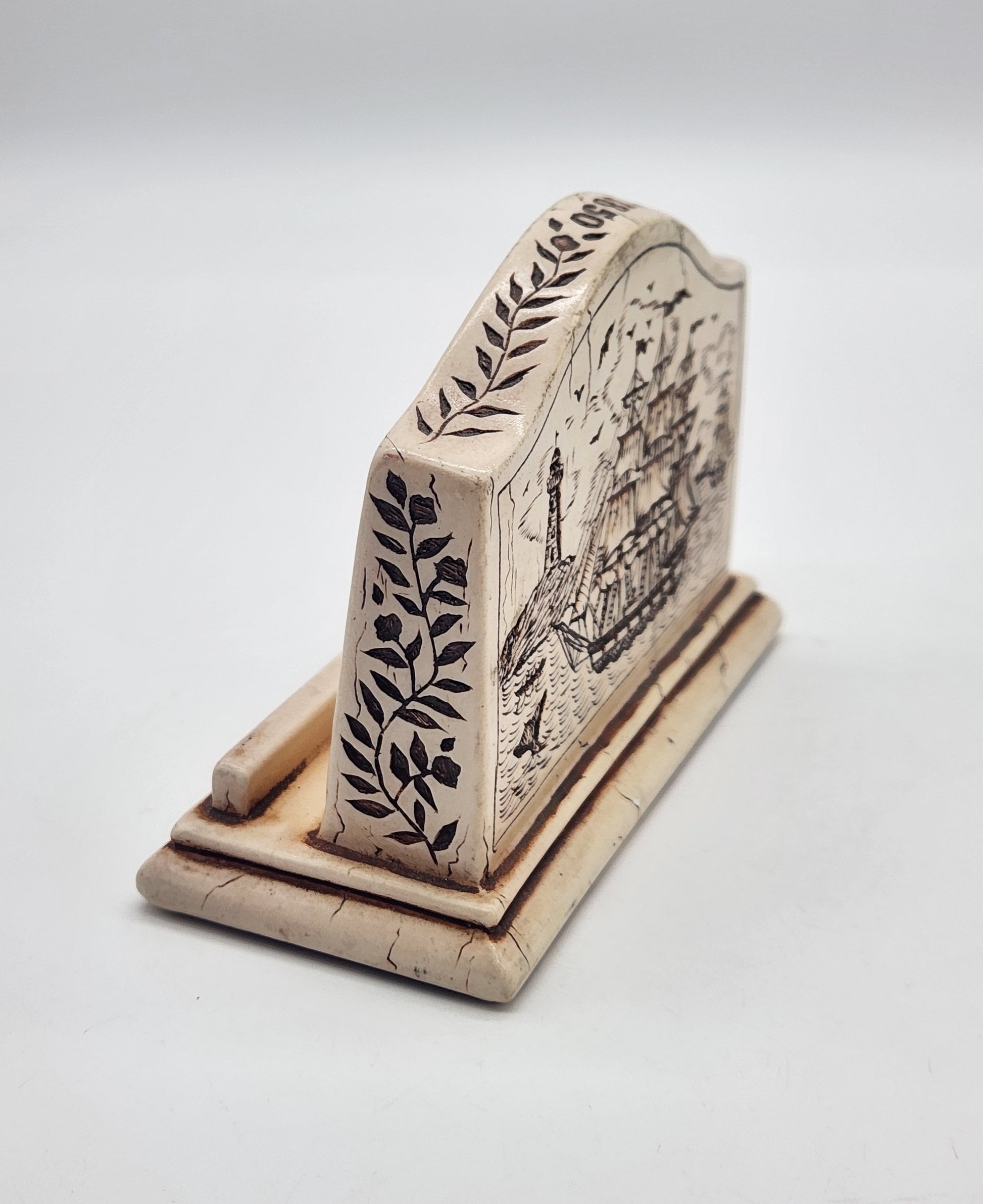 Vintage Scrimshaw Clipper Ship Resin Business Card Holder