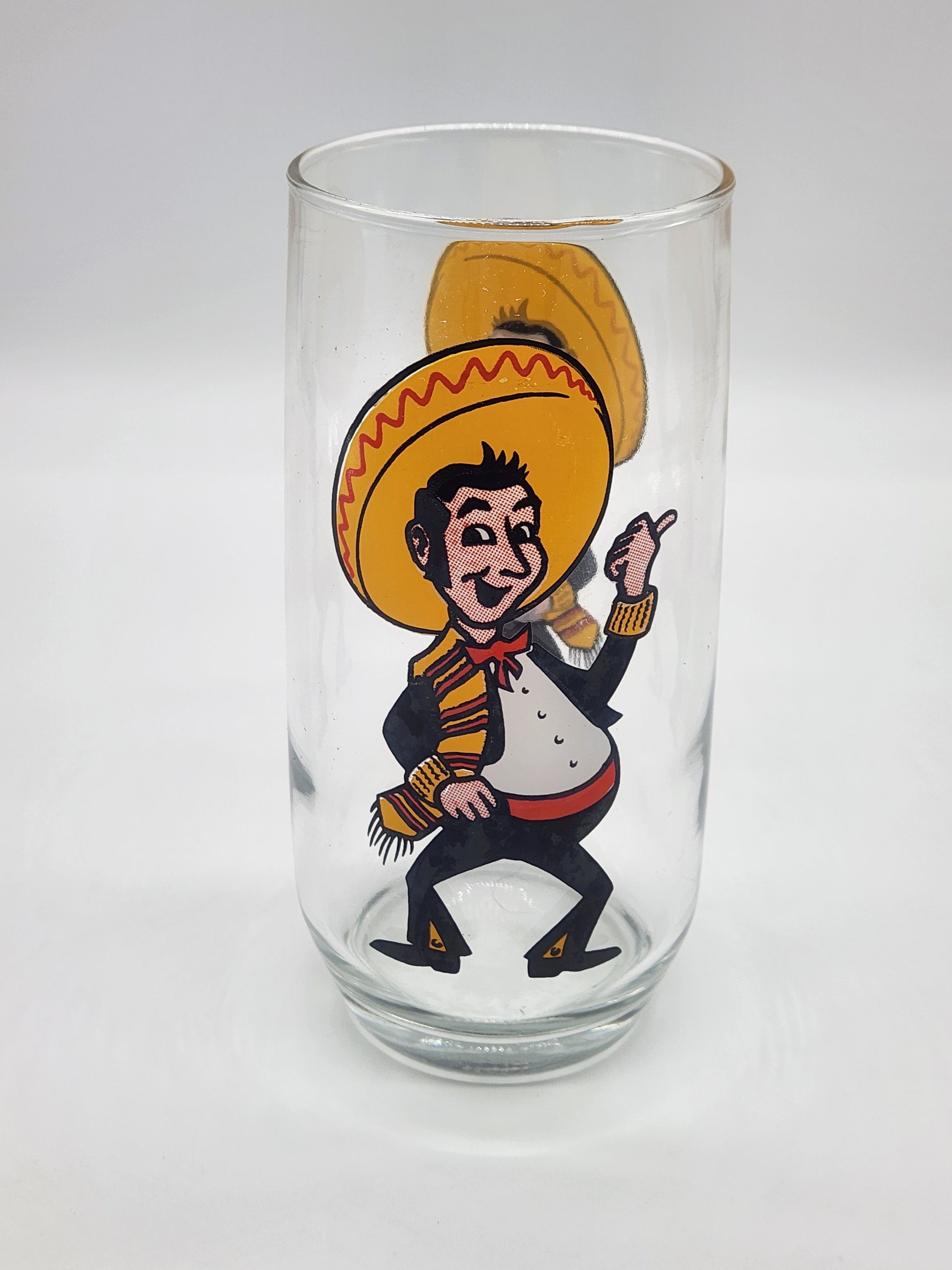 1975 Pepsi Collector Glass Tumbler Poncho Cartoon Character Vintage
