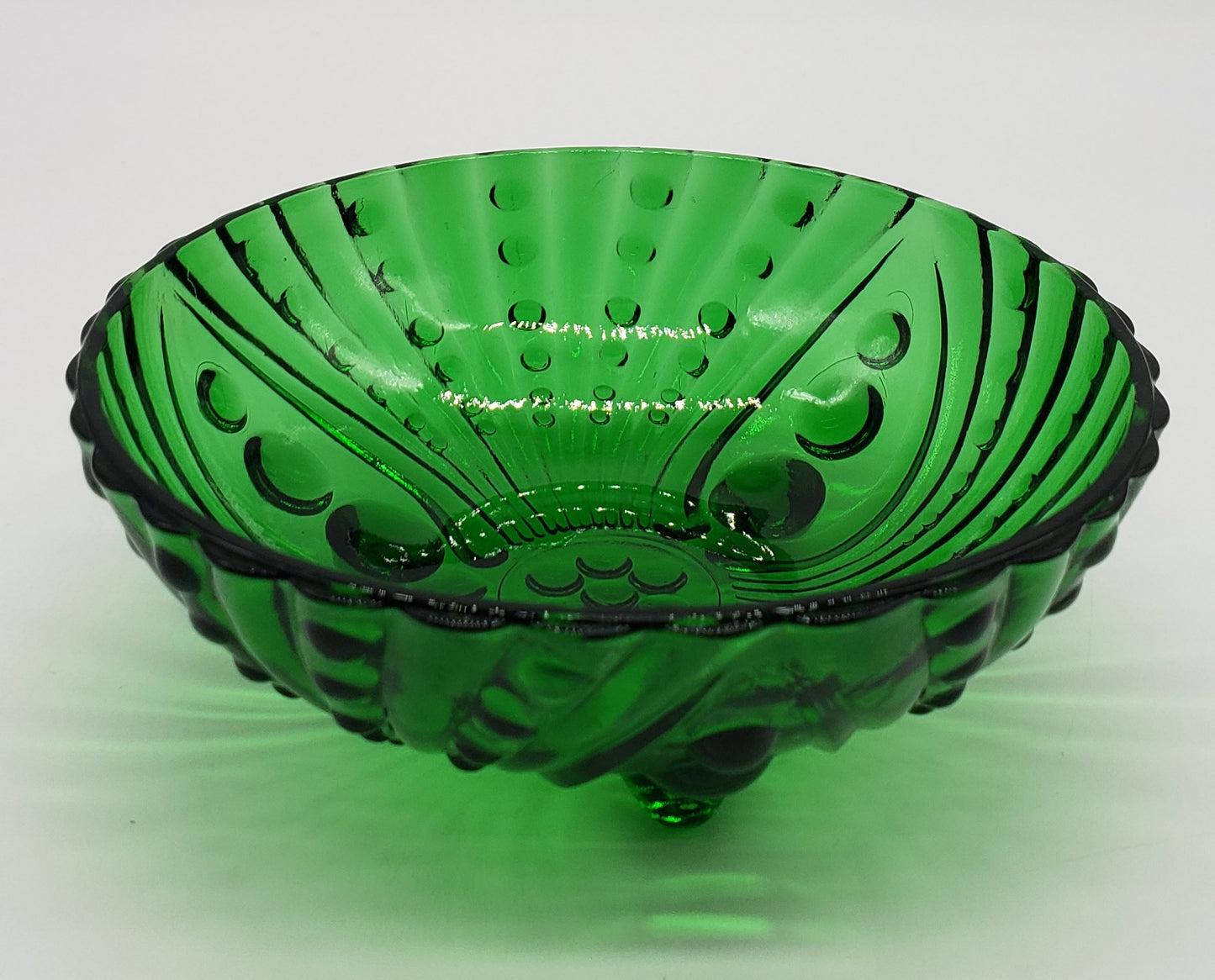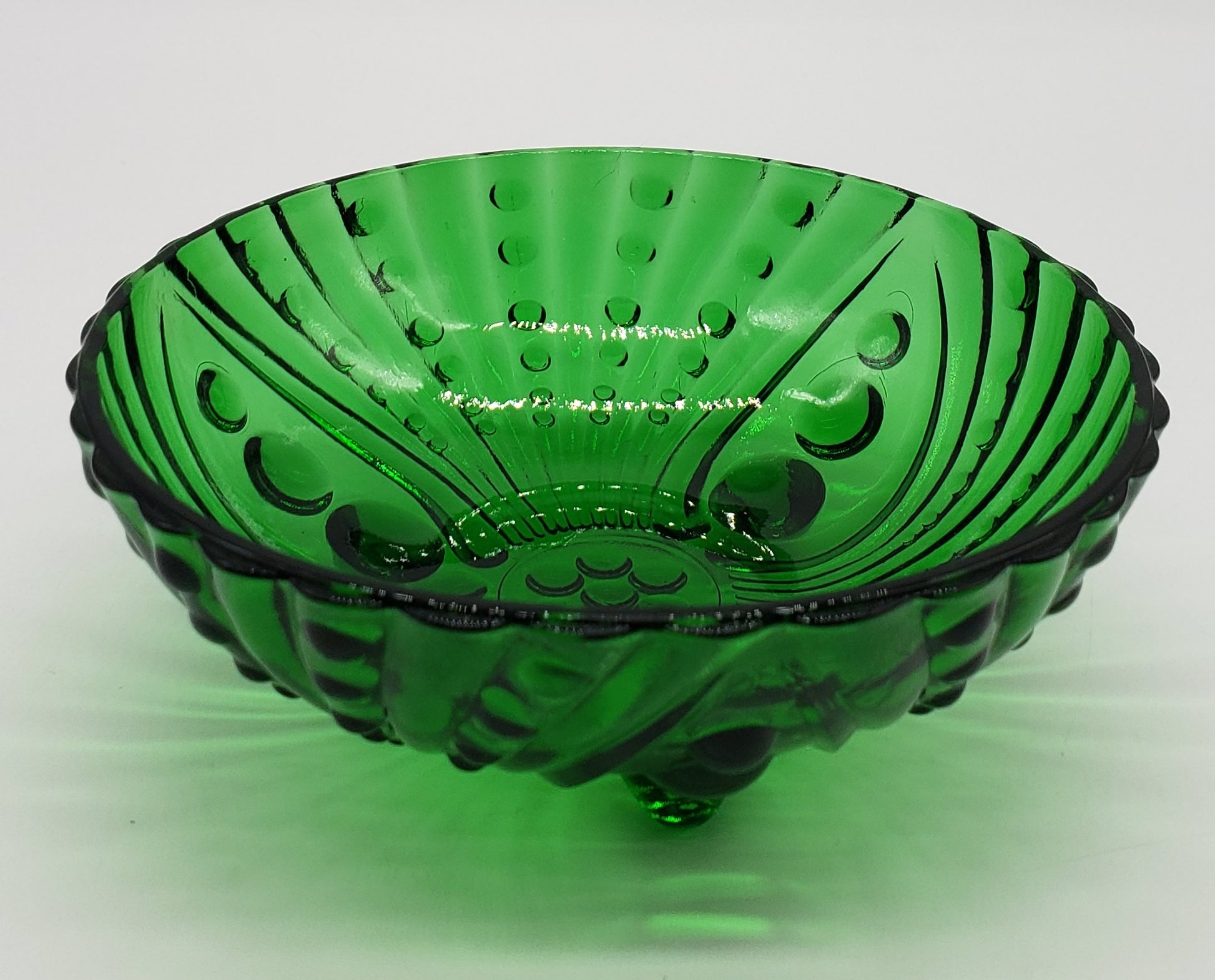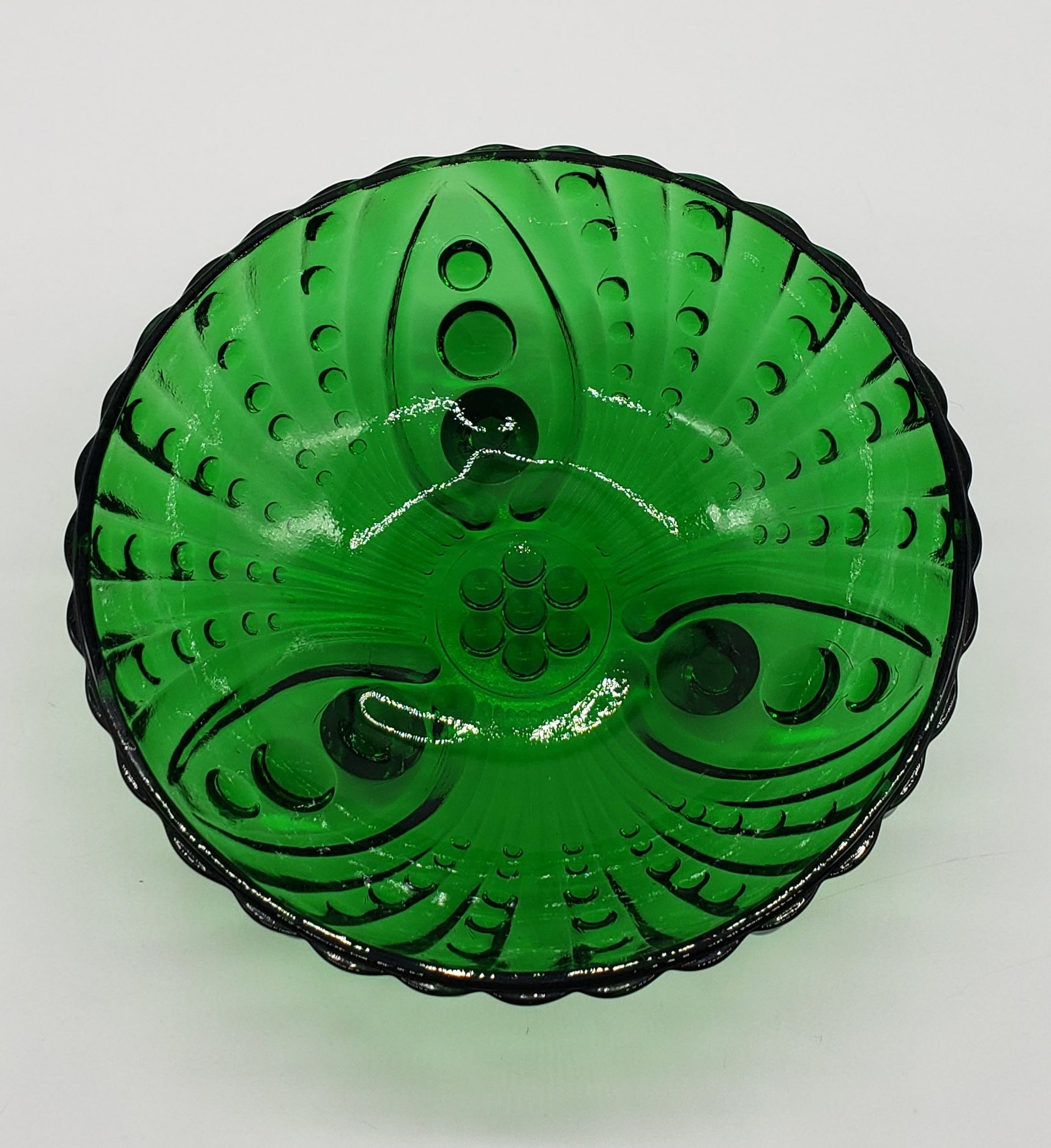 Anchor Hocking Emerald Forest Green Bubble Glass Footed Bowl