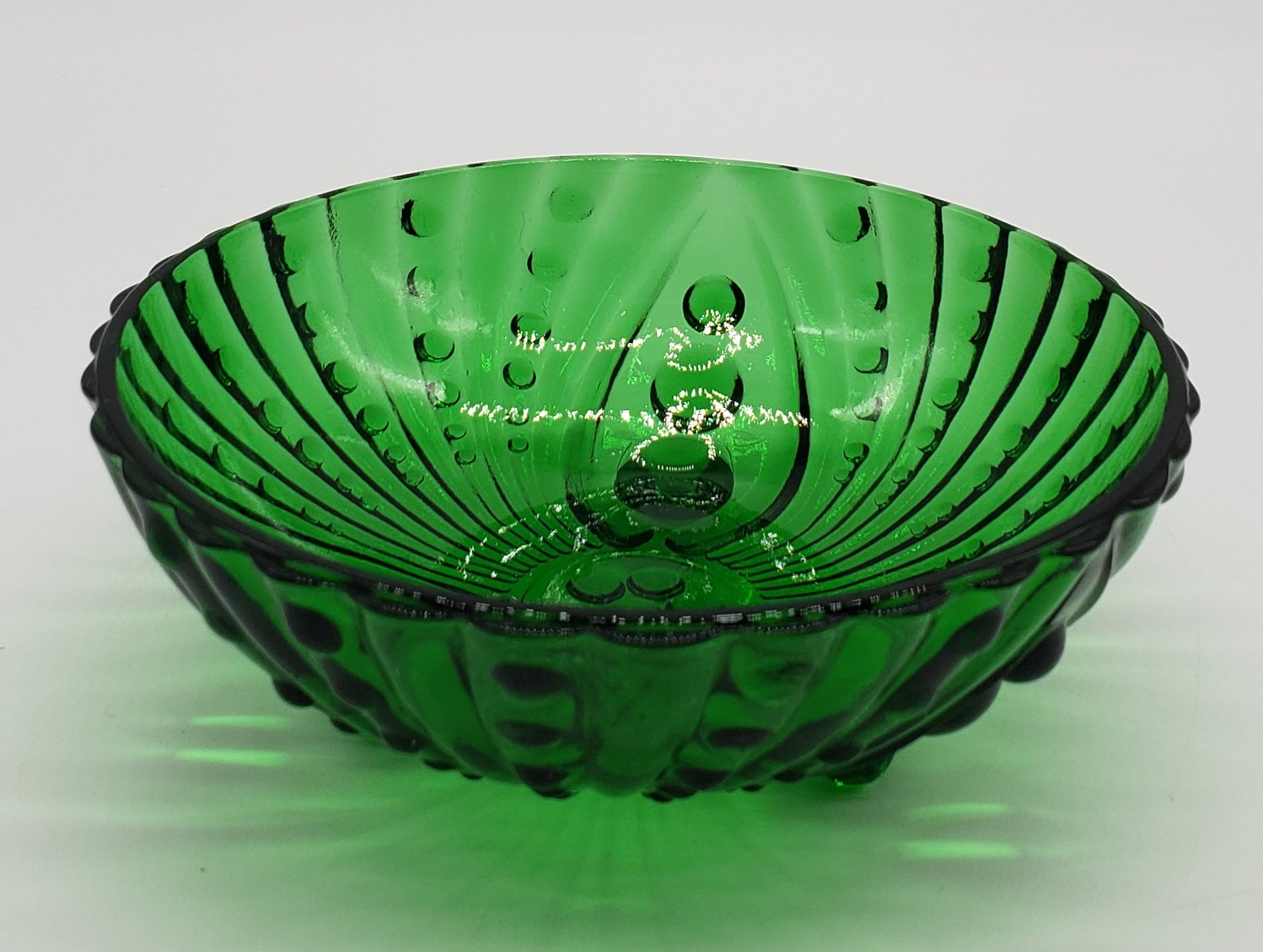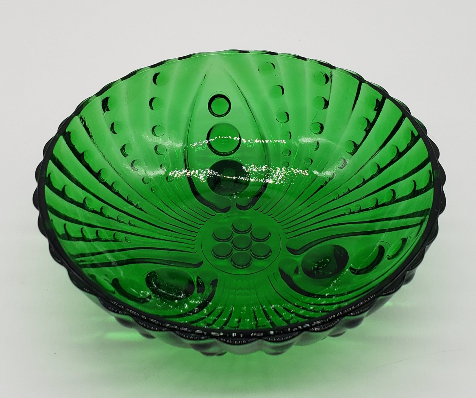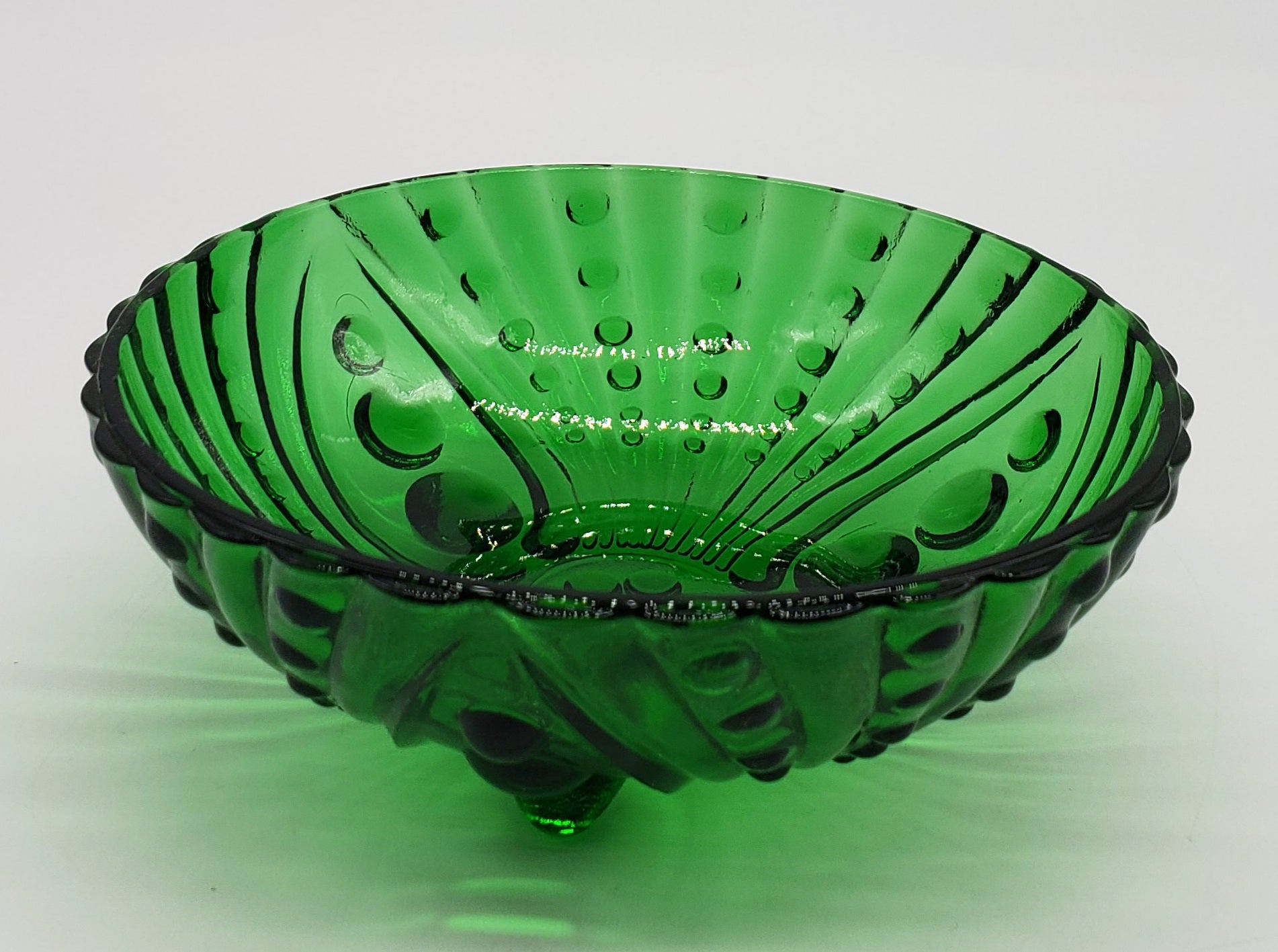 Anchor Hocking Emerald Forest Green Bubble Glass Footed Bowl
