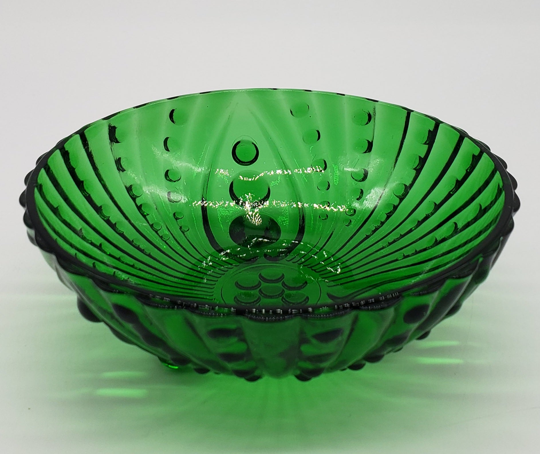 Vintage Hocking Emerald Forest Green Bubble Glass Footed Bowl / Berry Bowl.