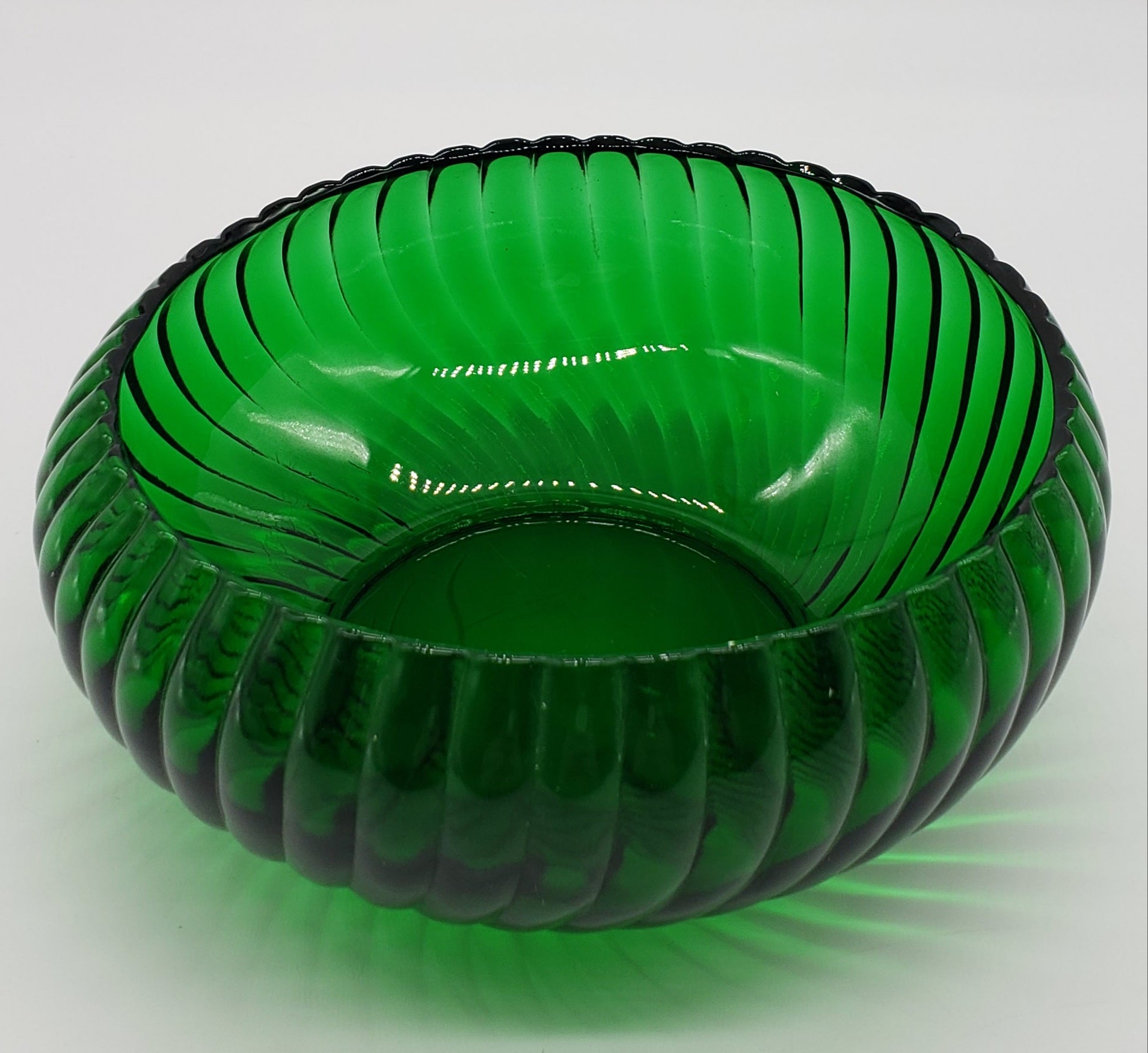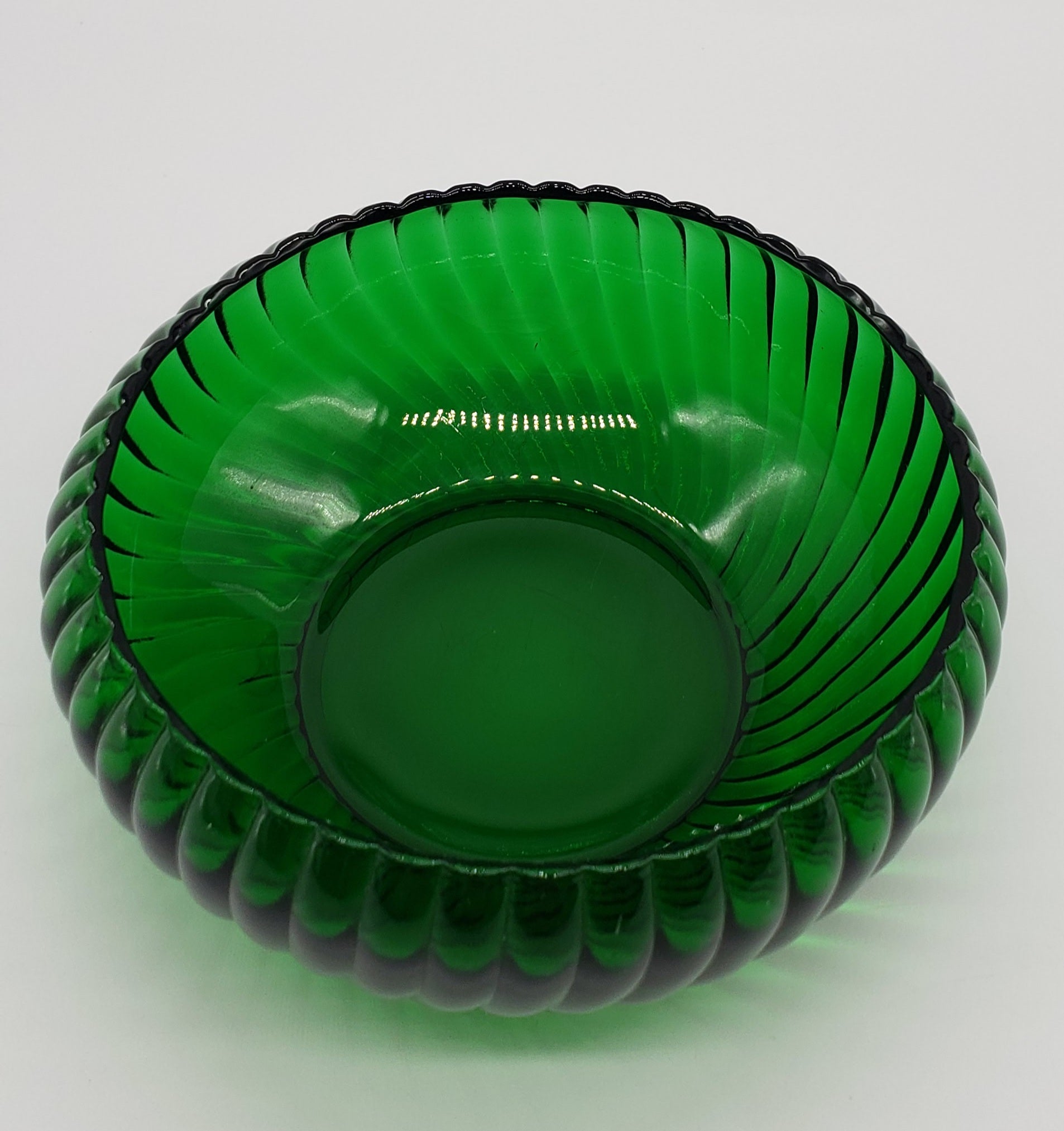Vintage Anchor Hocking Emerald Green Swirl 6" Bowl Candy Dish