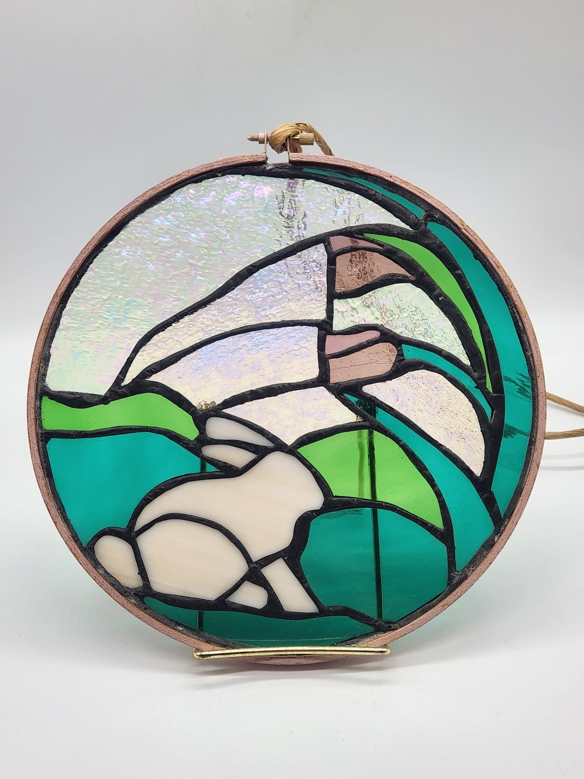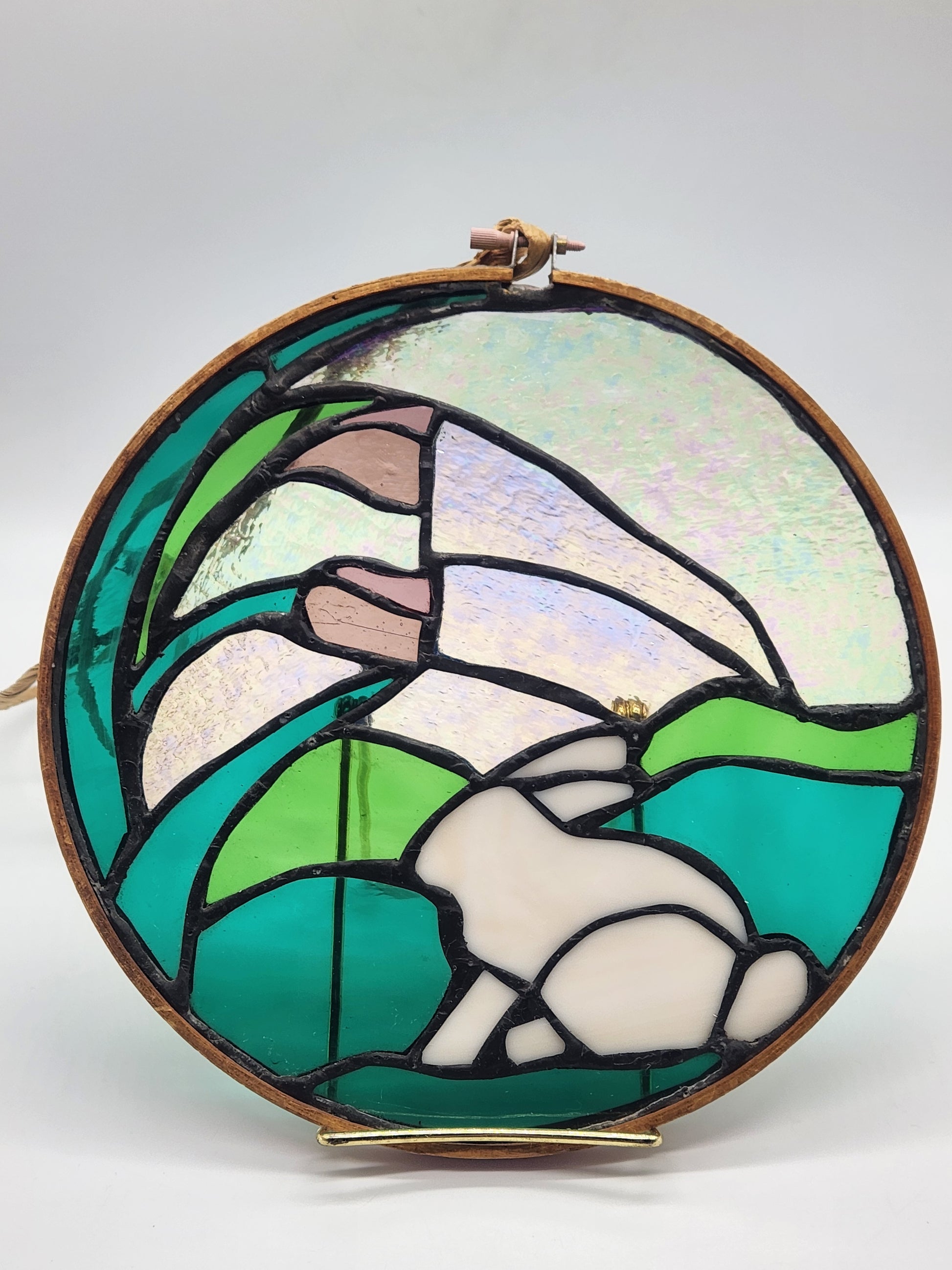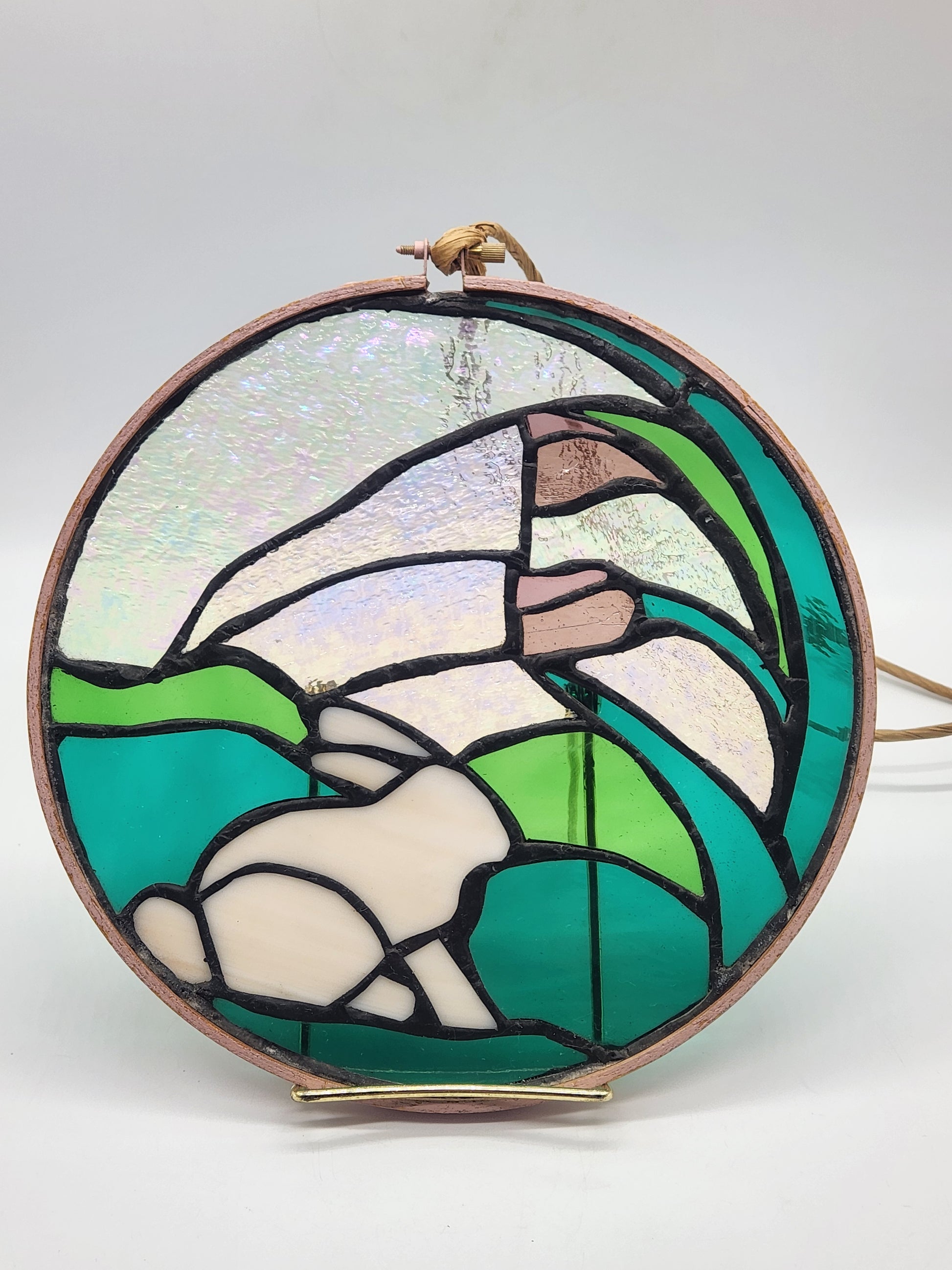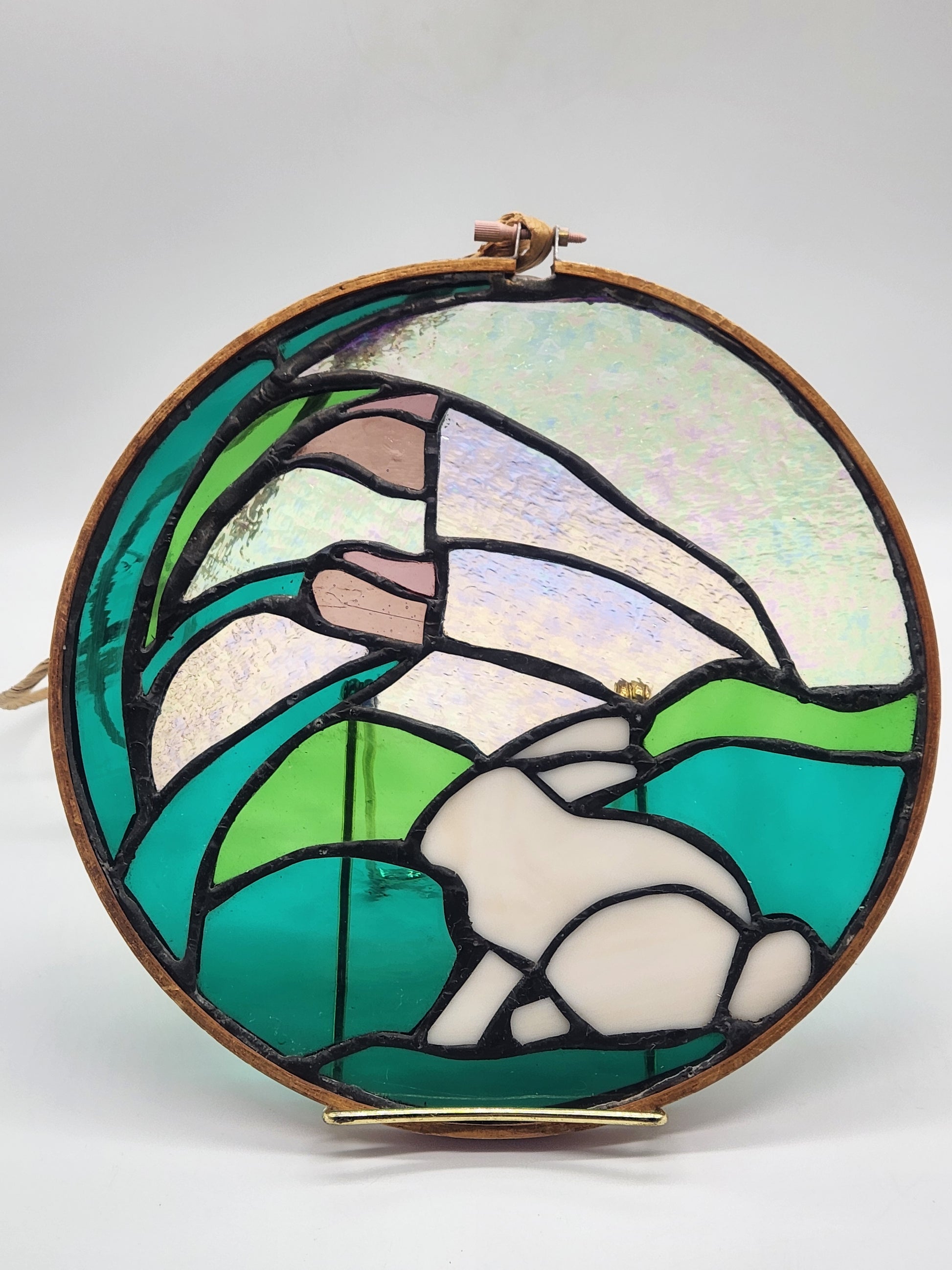 Artisan Made 9.5” Stained Glass Beautiful Bunny Garden Sun catcher