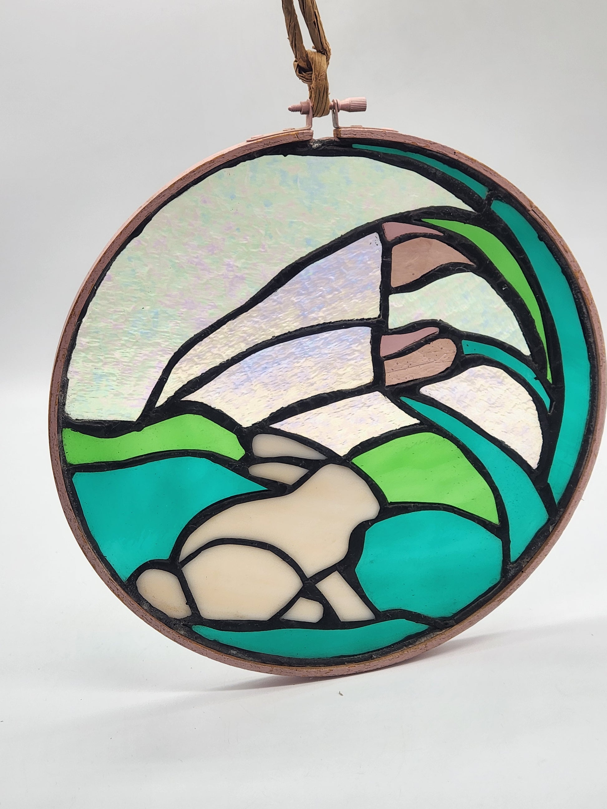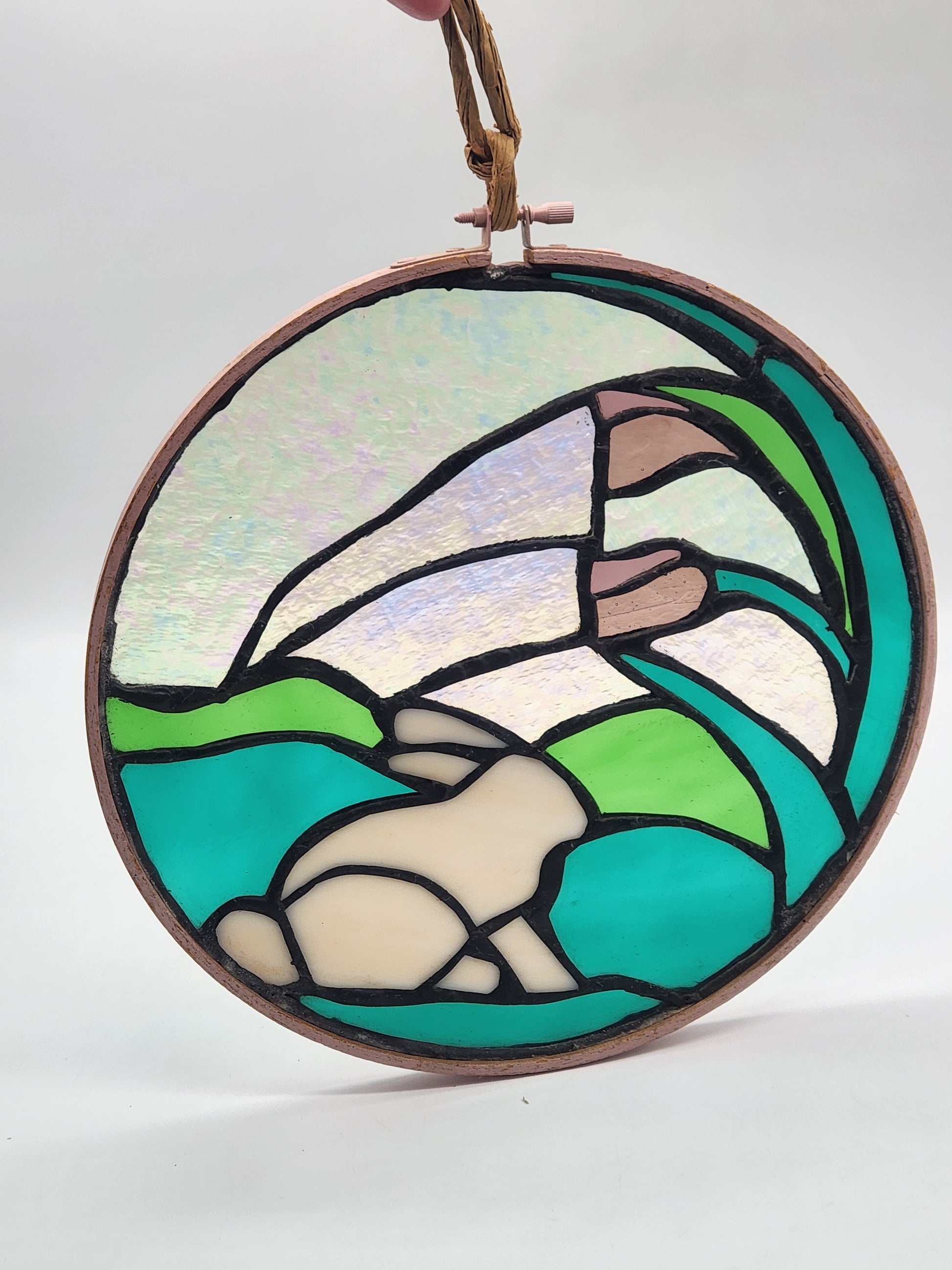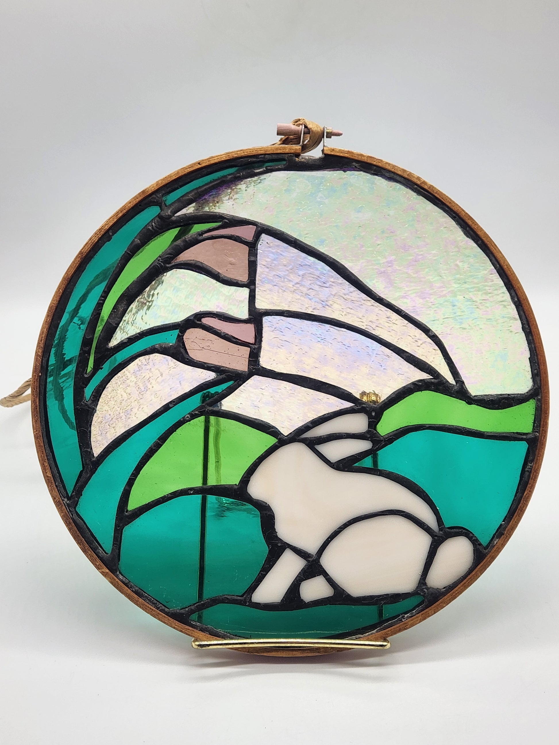 Artisan Made 9.5” Stained Glass Beautiful Bunny Garden Sun catcher