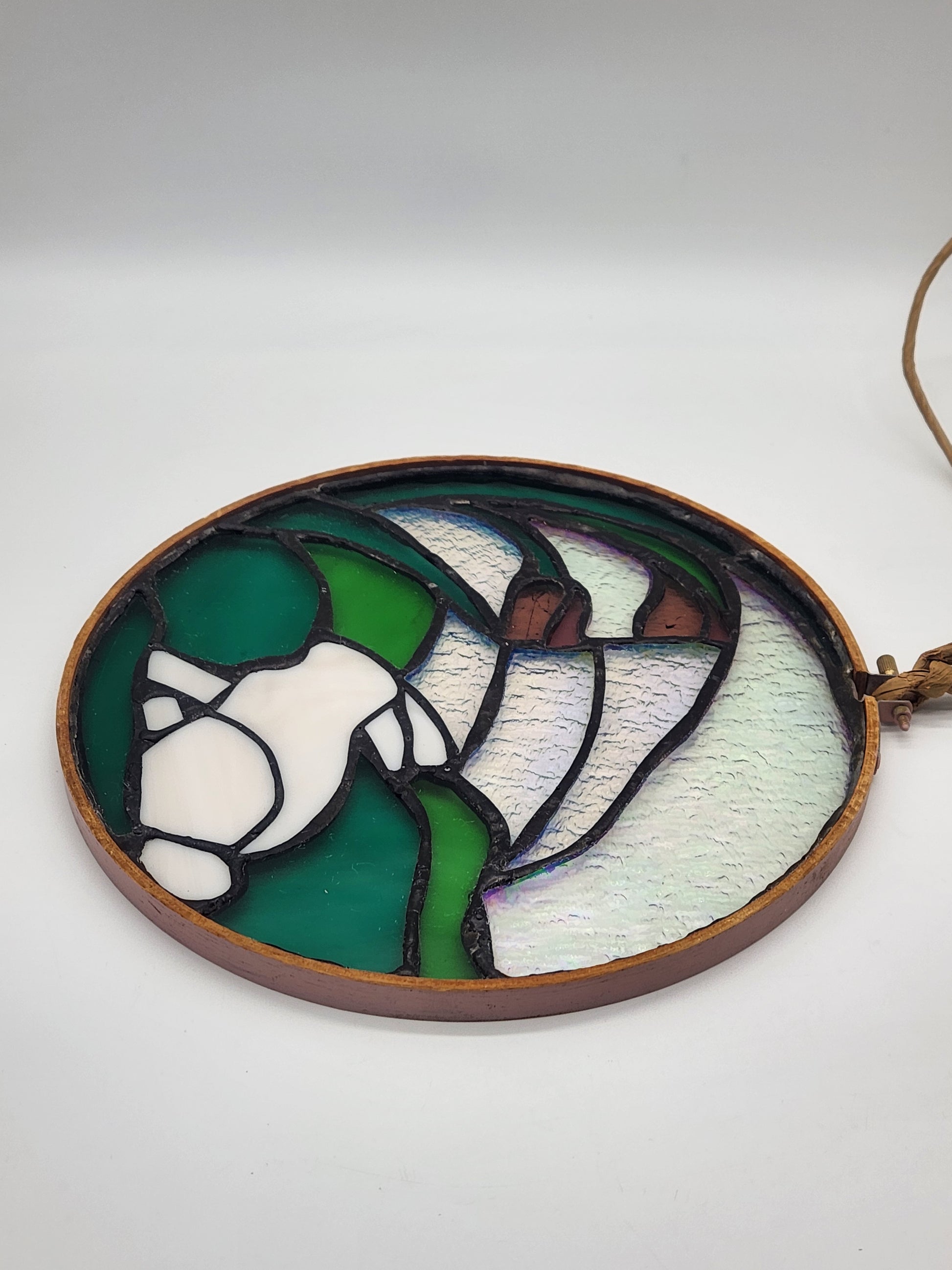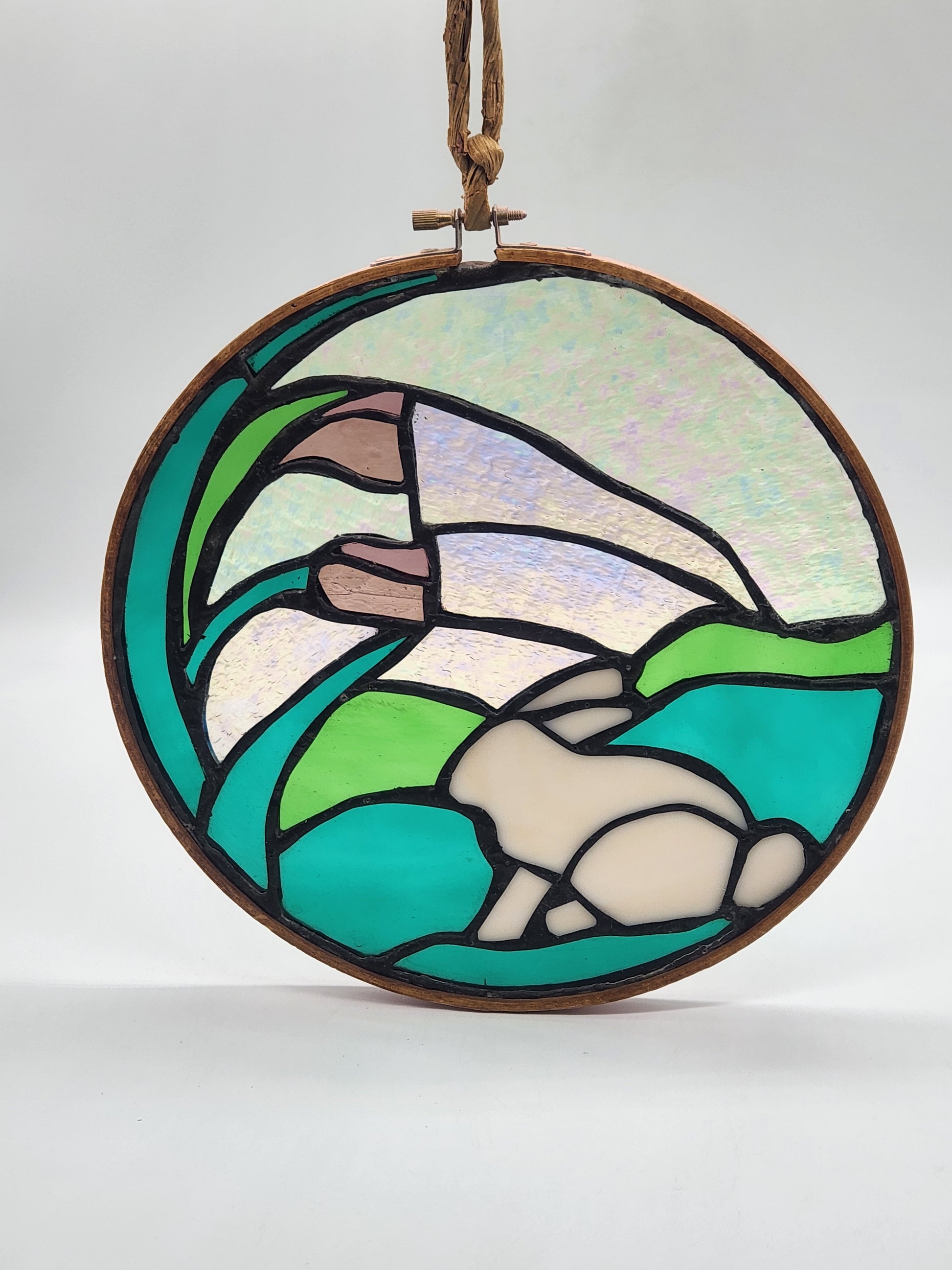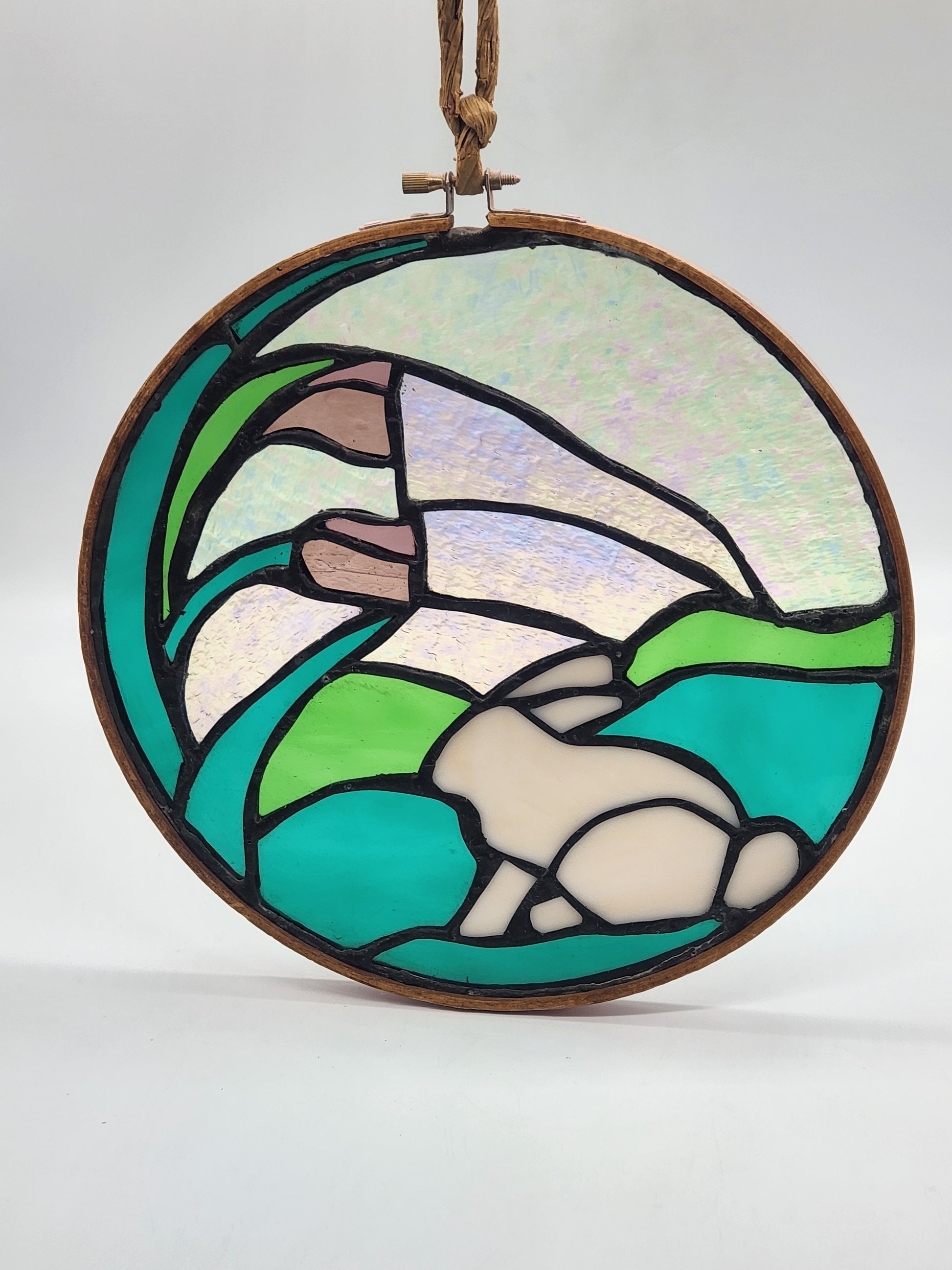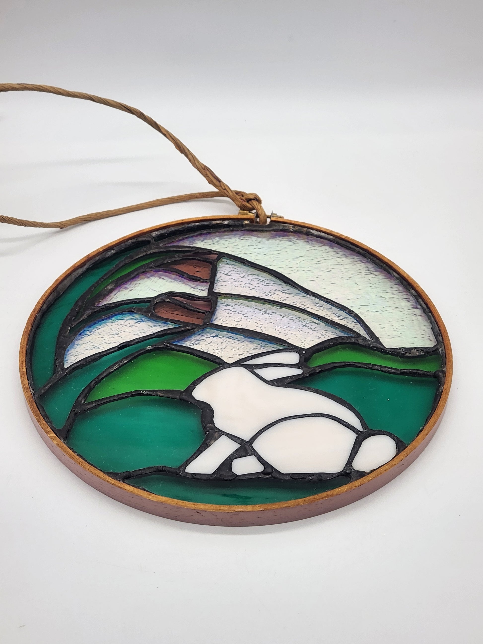 Artisan Made 9.5” Stained Glass Beautiful Bunny Garden Sun catcher