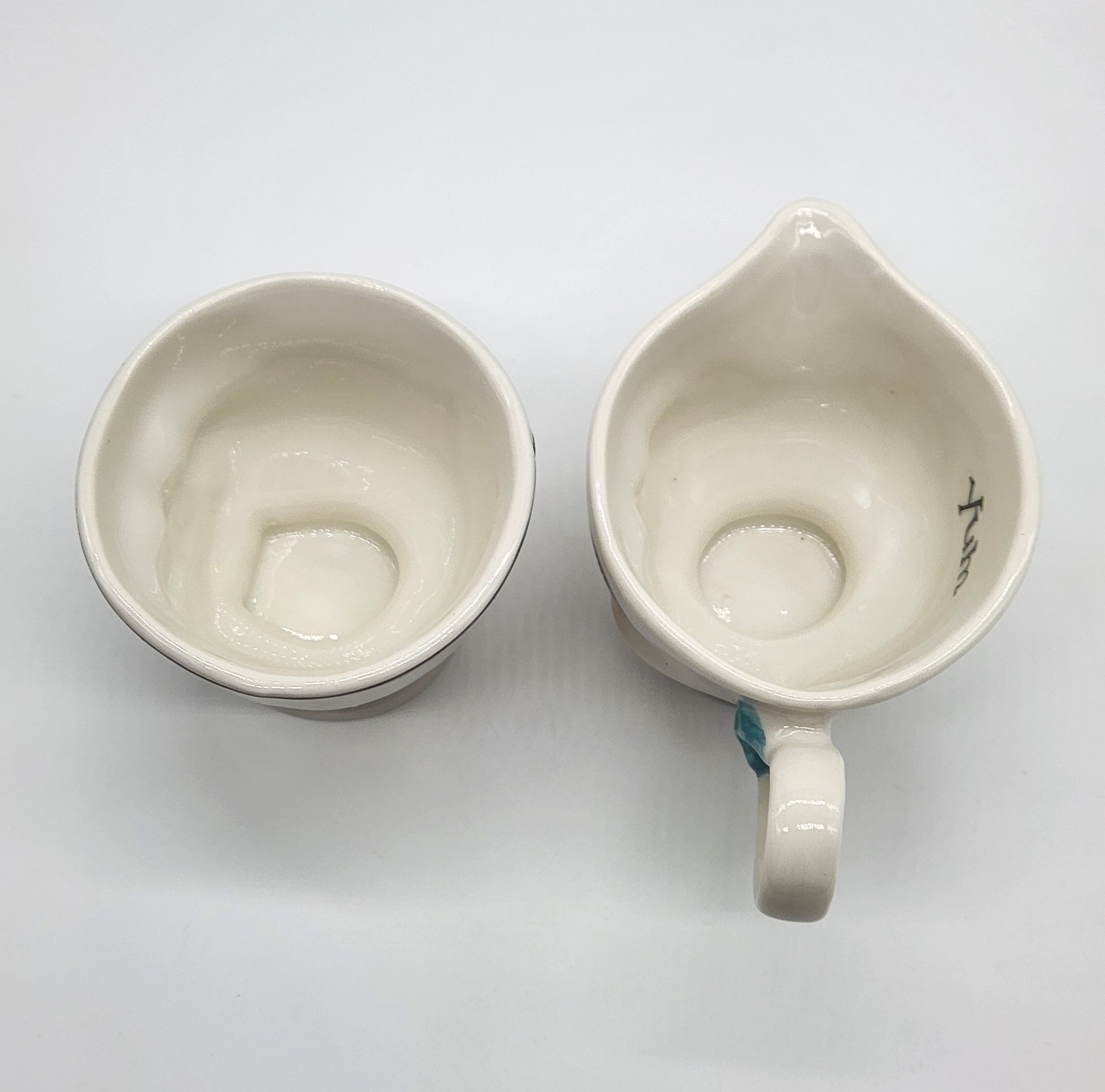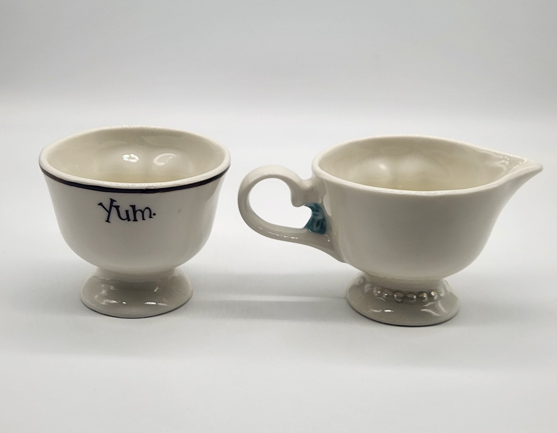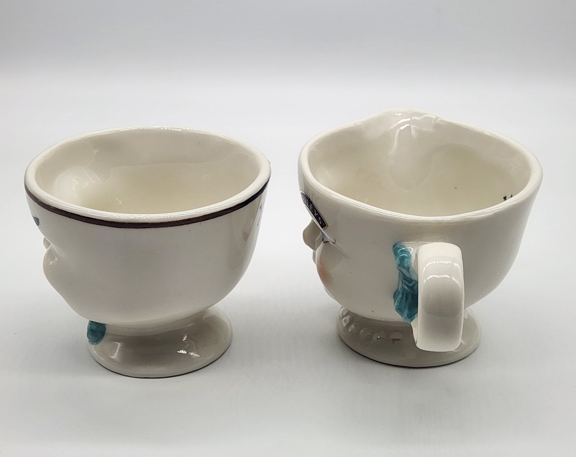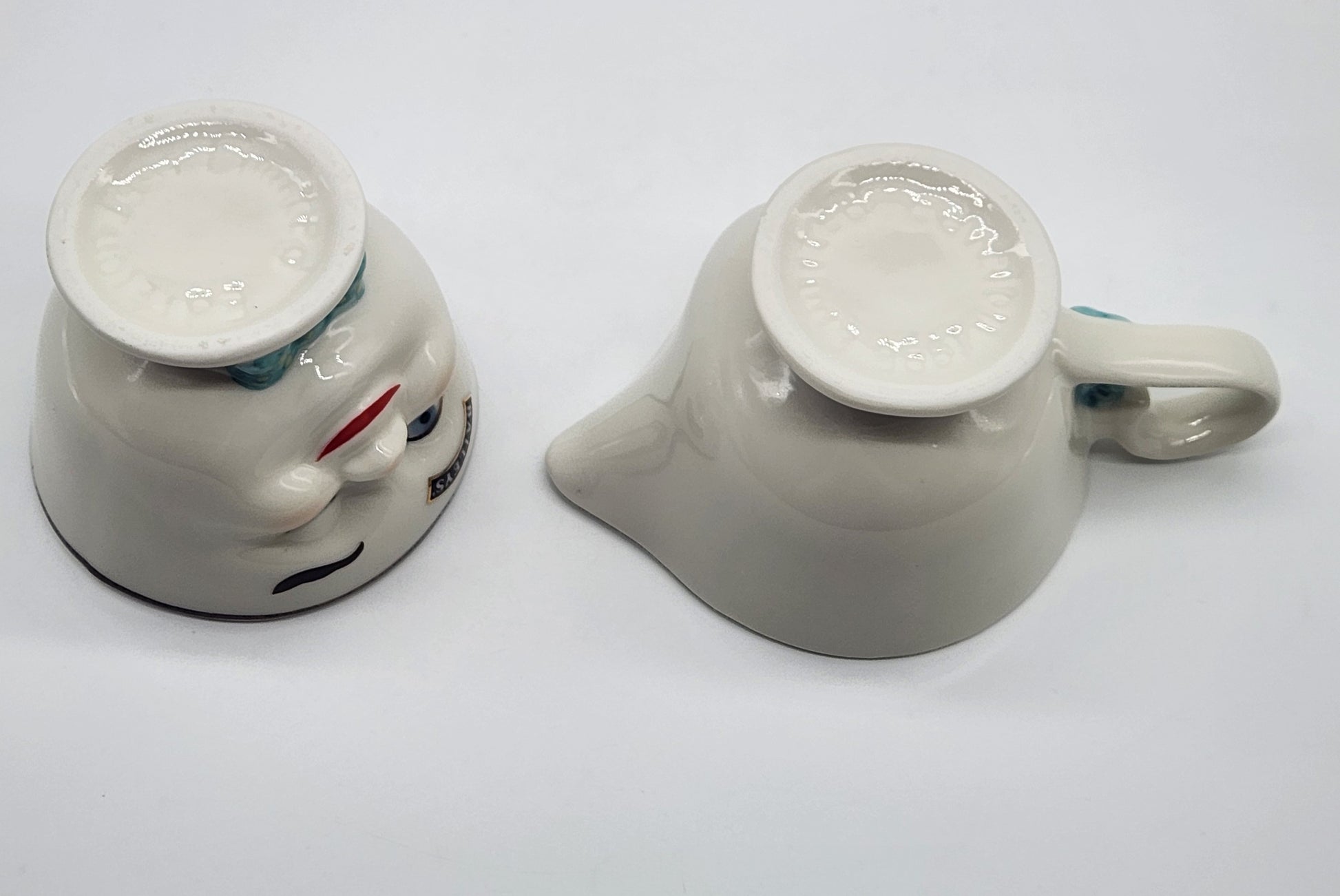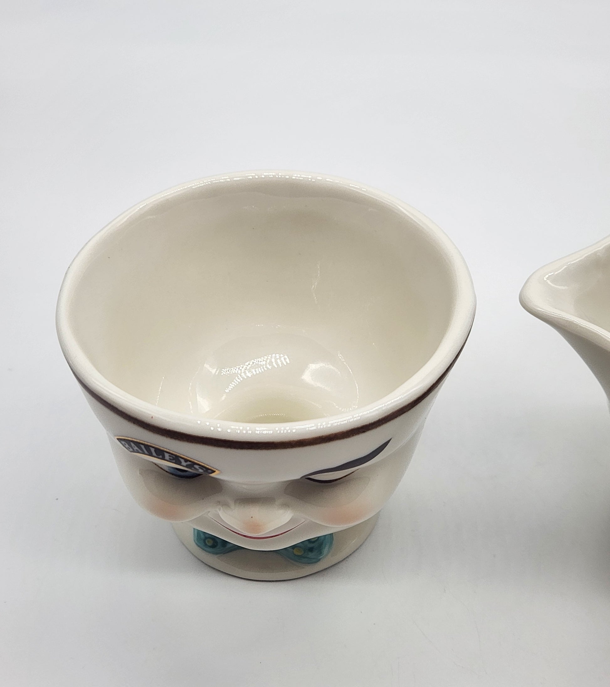 BAILEYS Irish Cream YUM Winking Eye Face Cream And Sugar Limited Edition 1996. Creamer measures 4.5" wide x 3" tall. Sugar bowl measures 3.5" wide x 3" tall