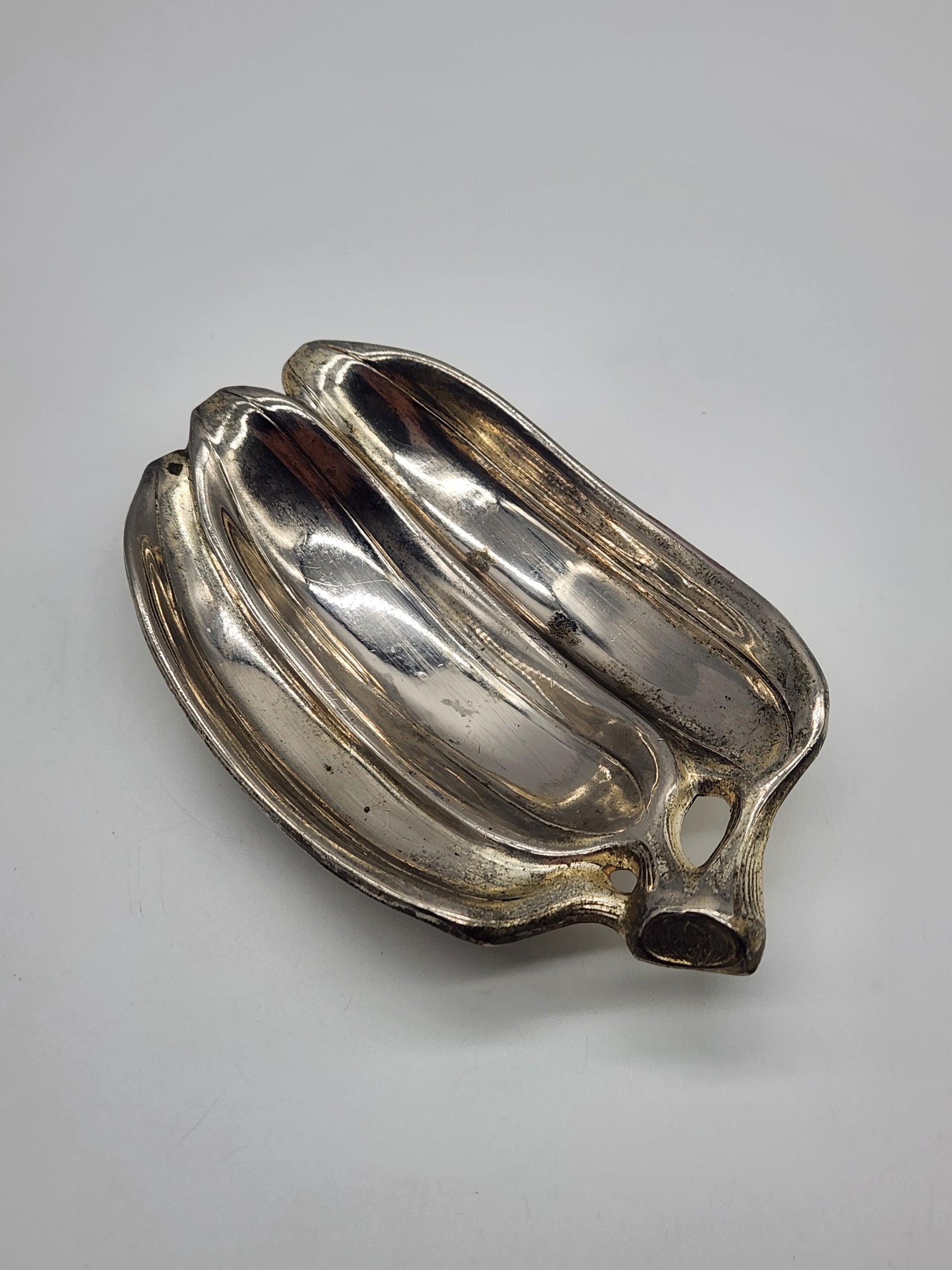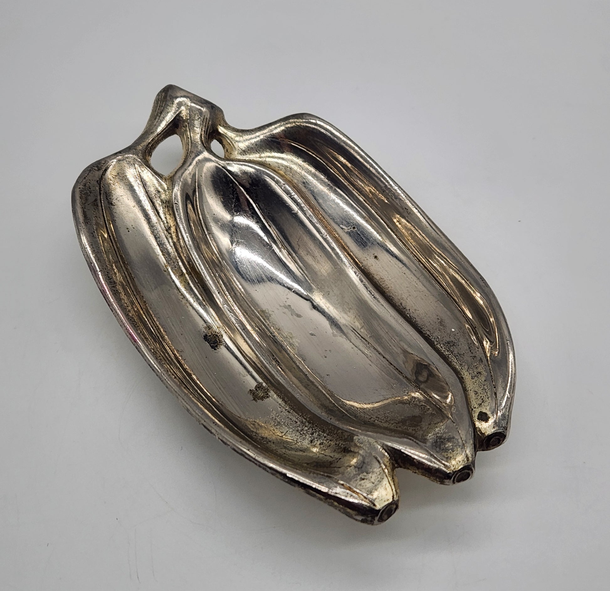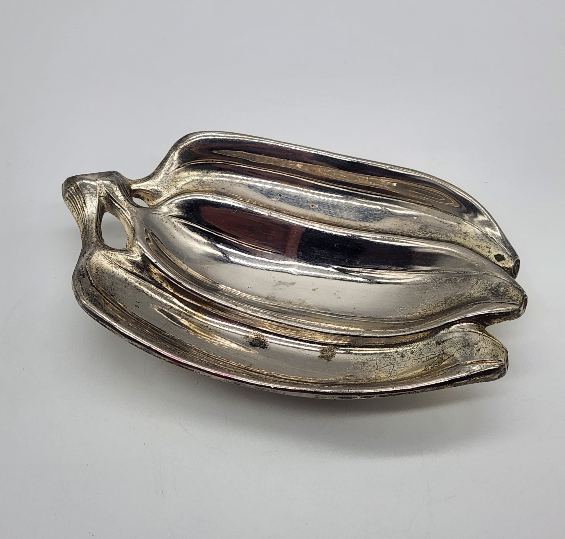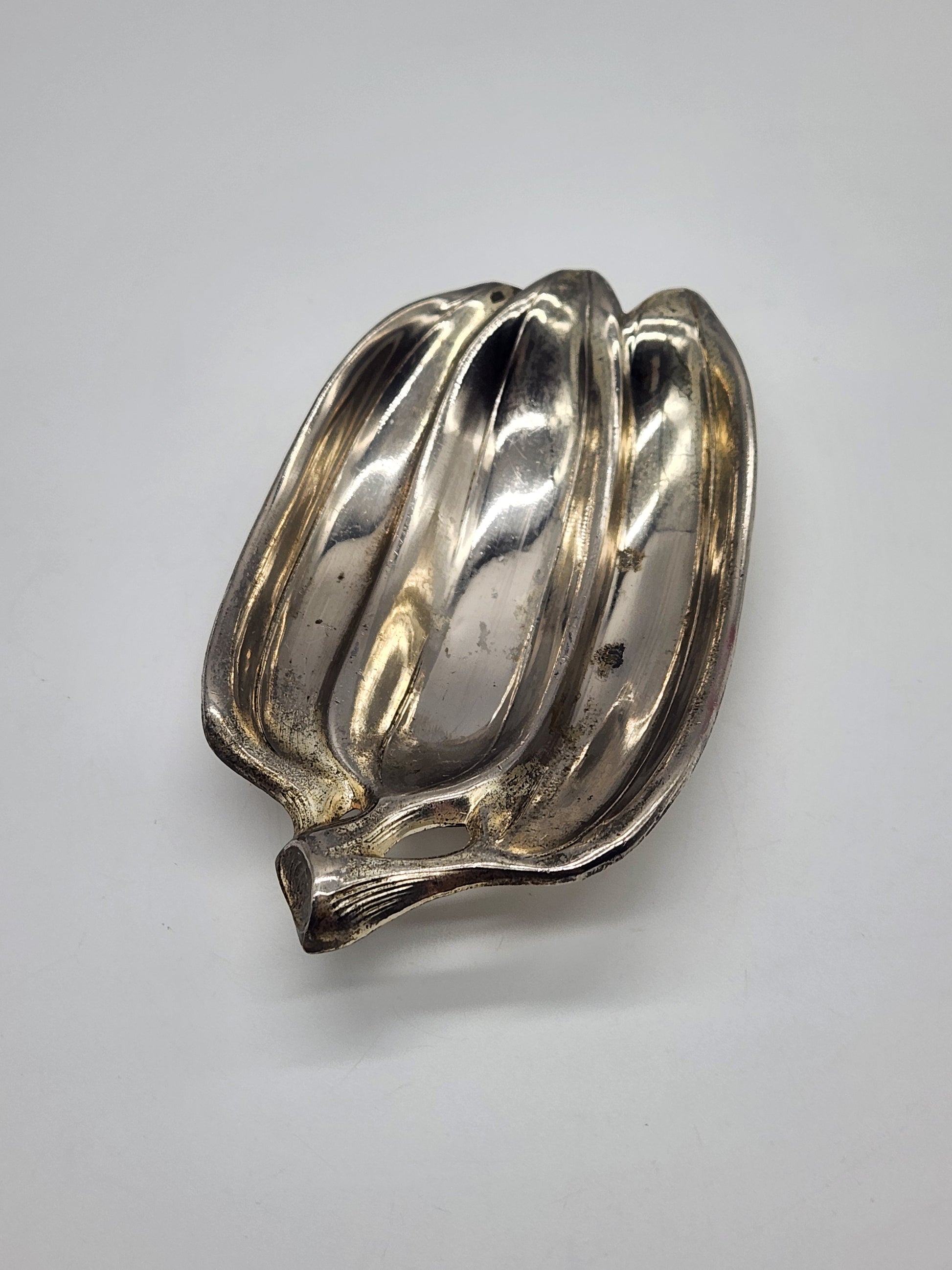 Bananas or plantain silver plated nuts or nibbles dish - Novelty food shaped dish 5.5"