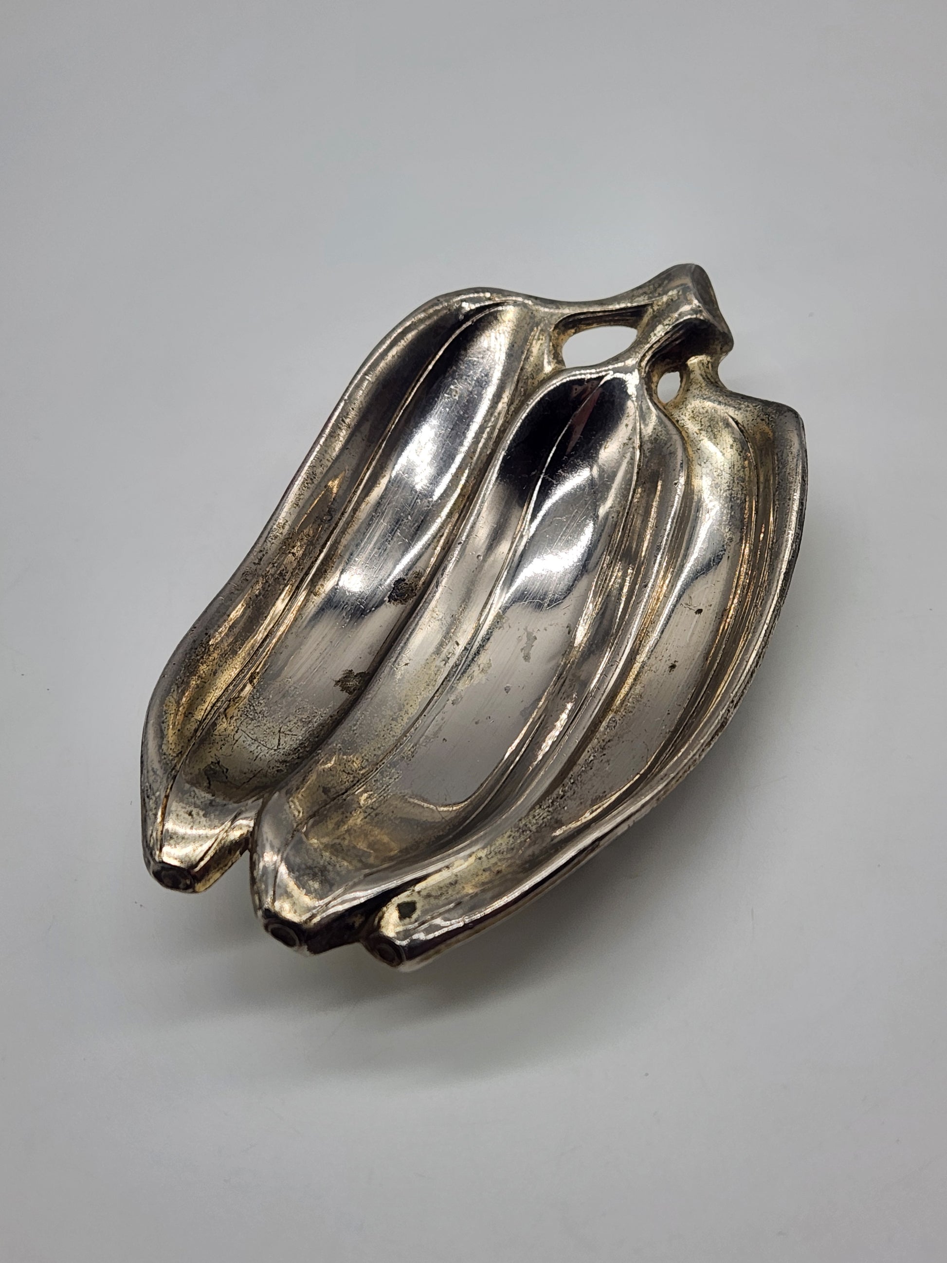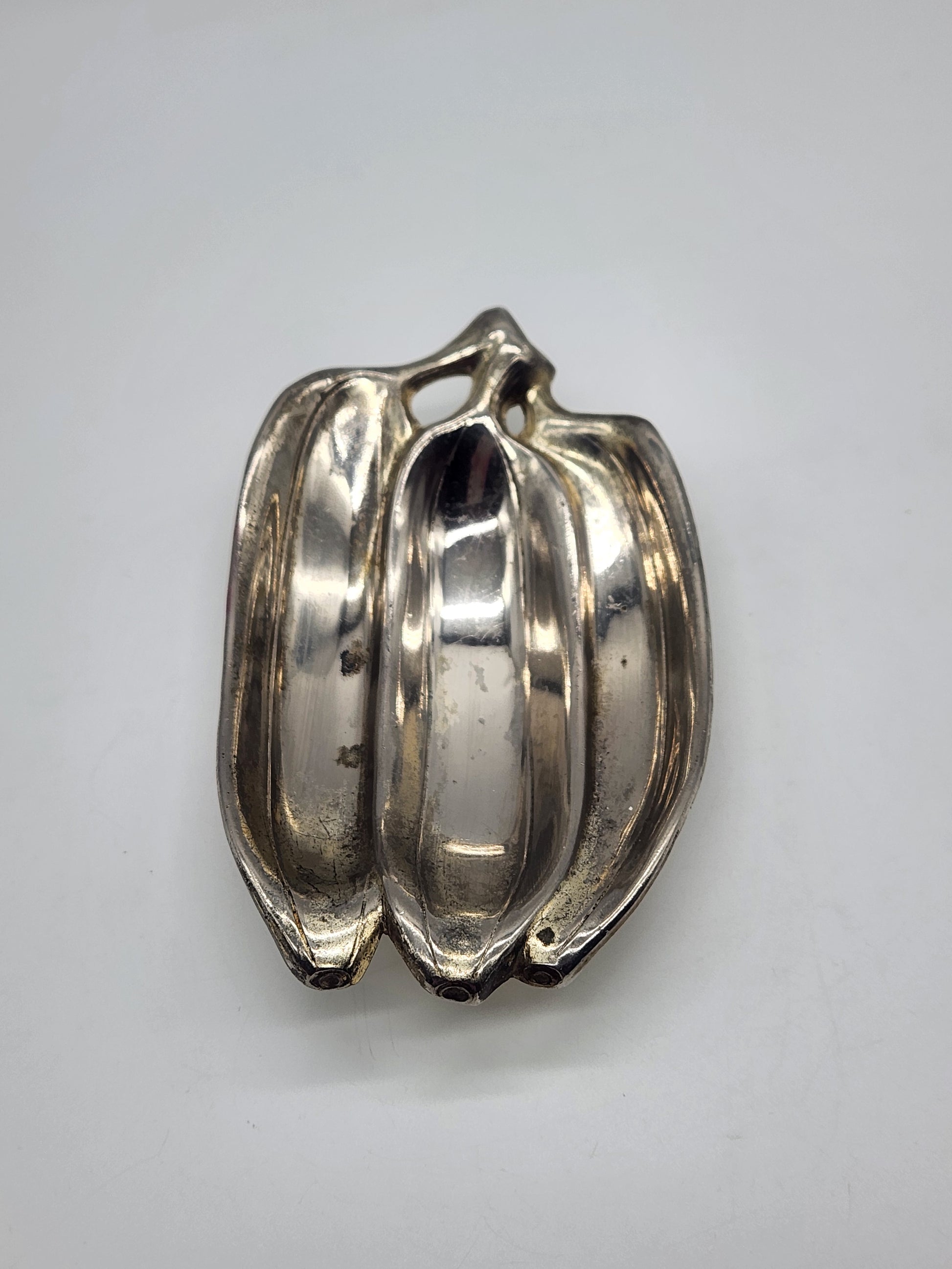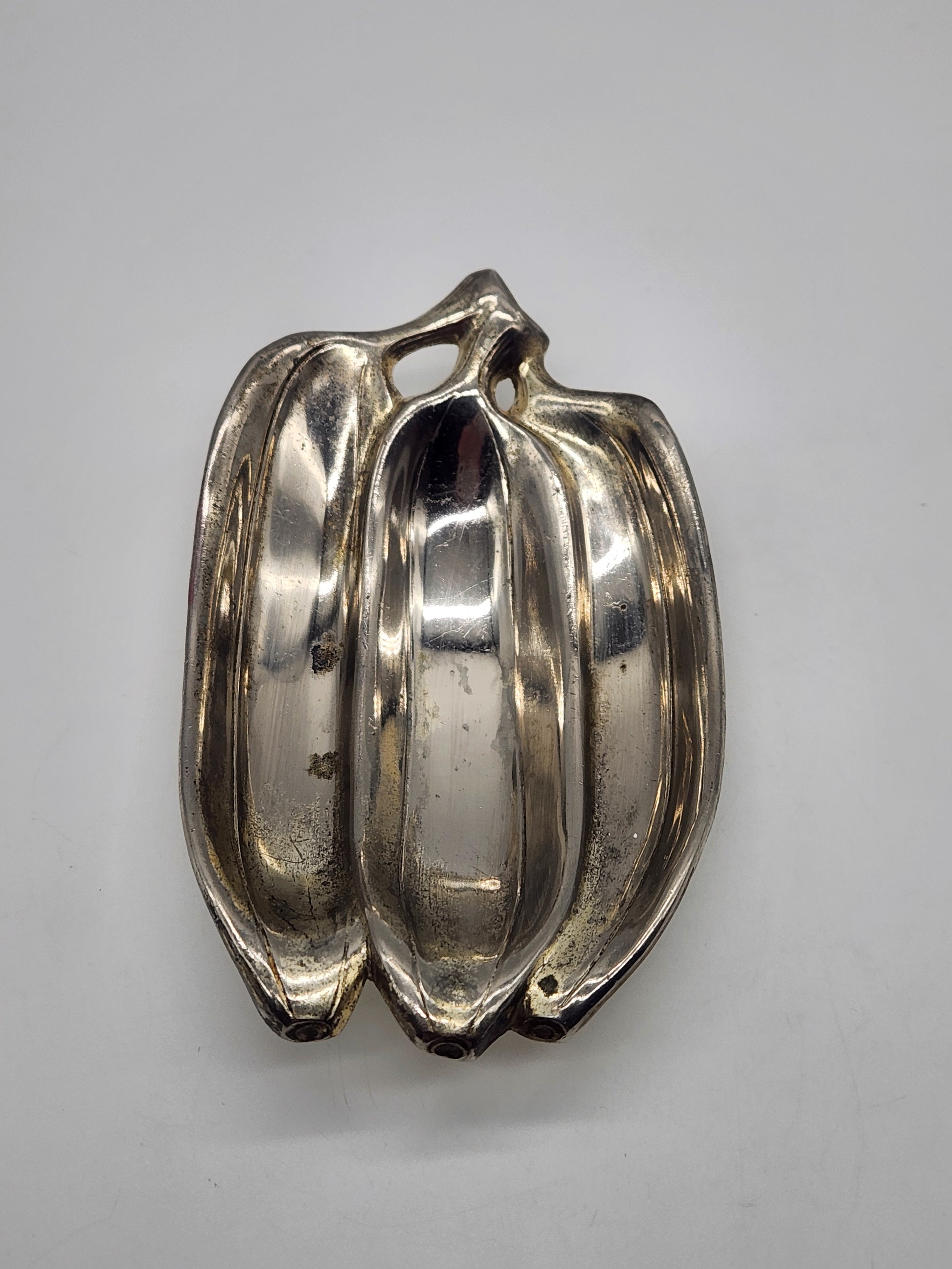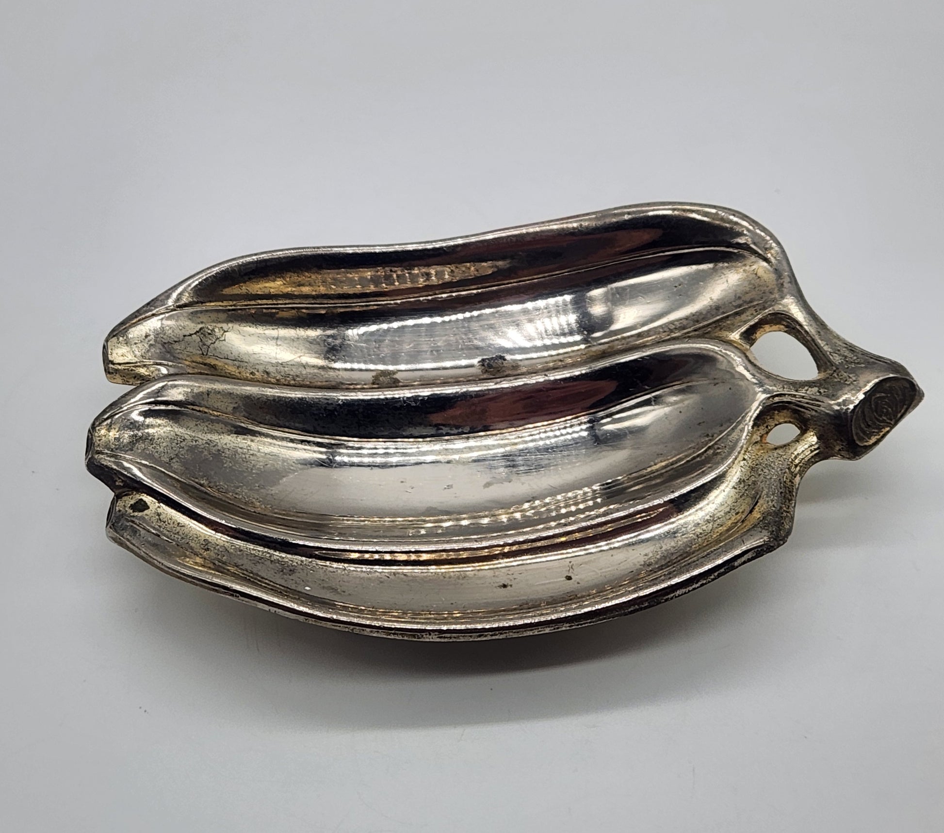 Bananas or plantain silver plated nuts or nibbles dish - Novelty food shaped dish 5.5"