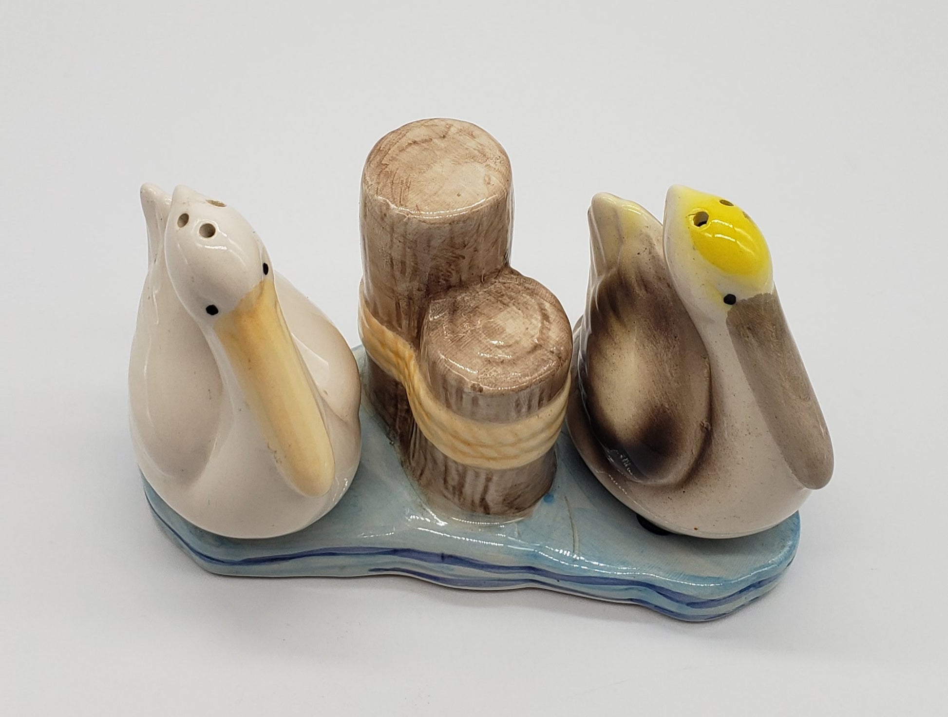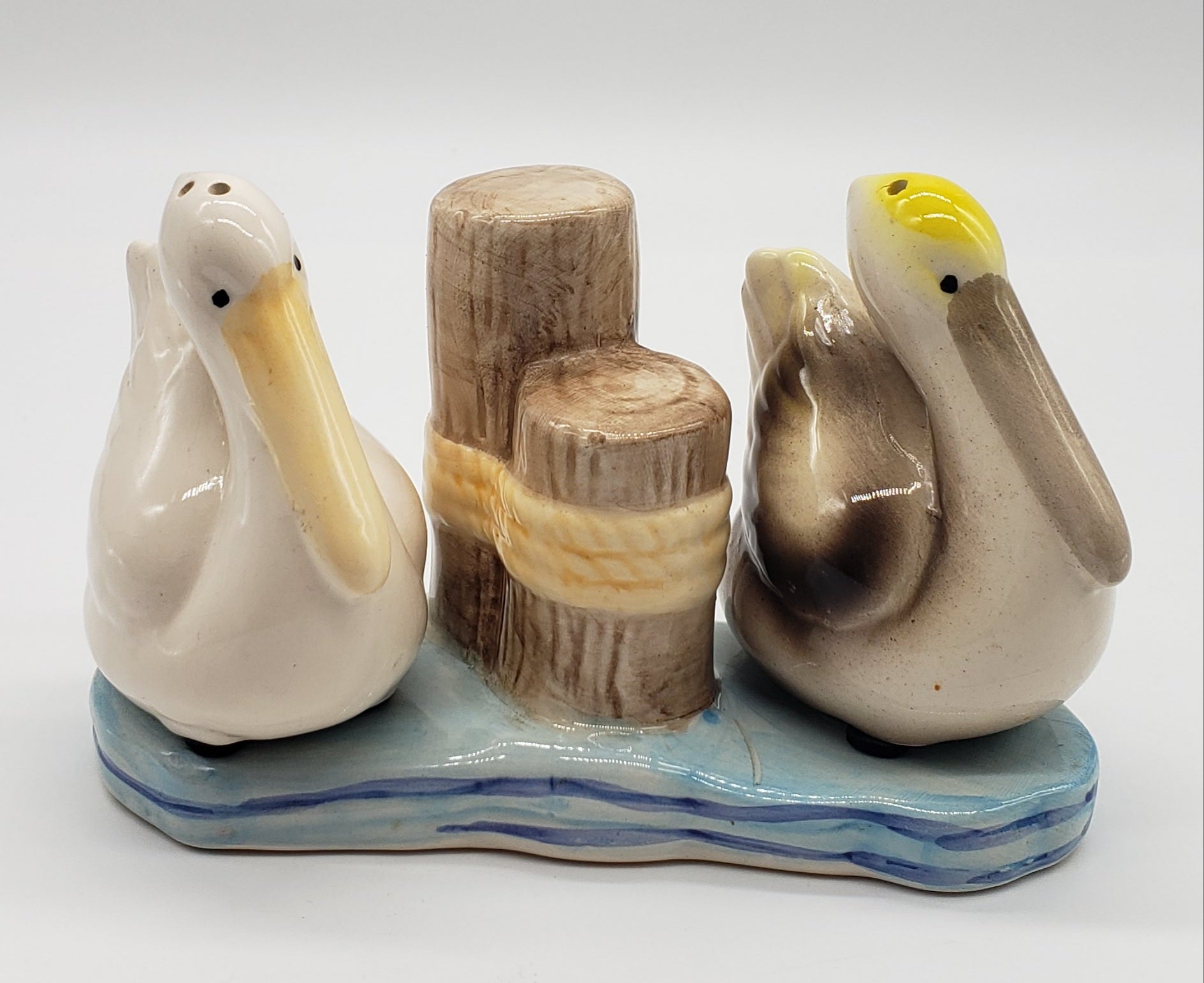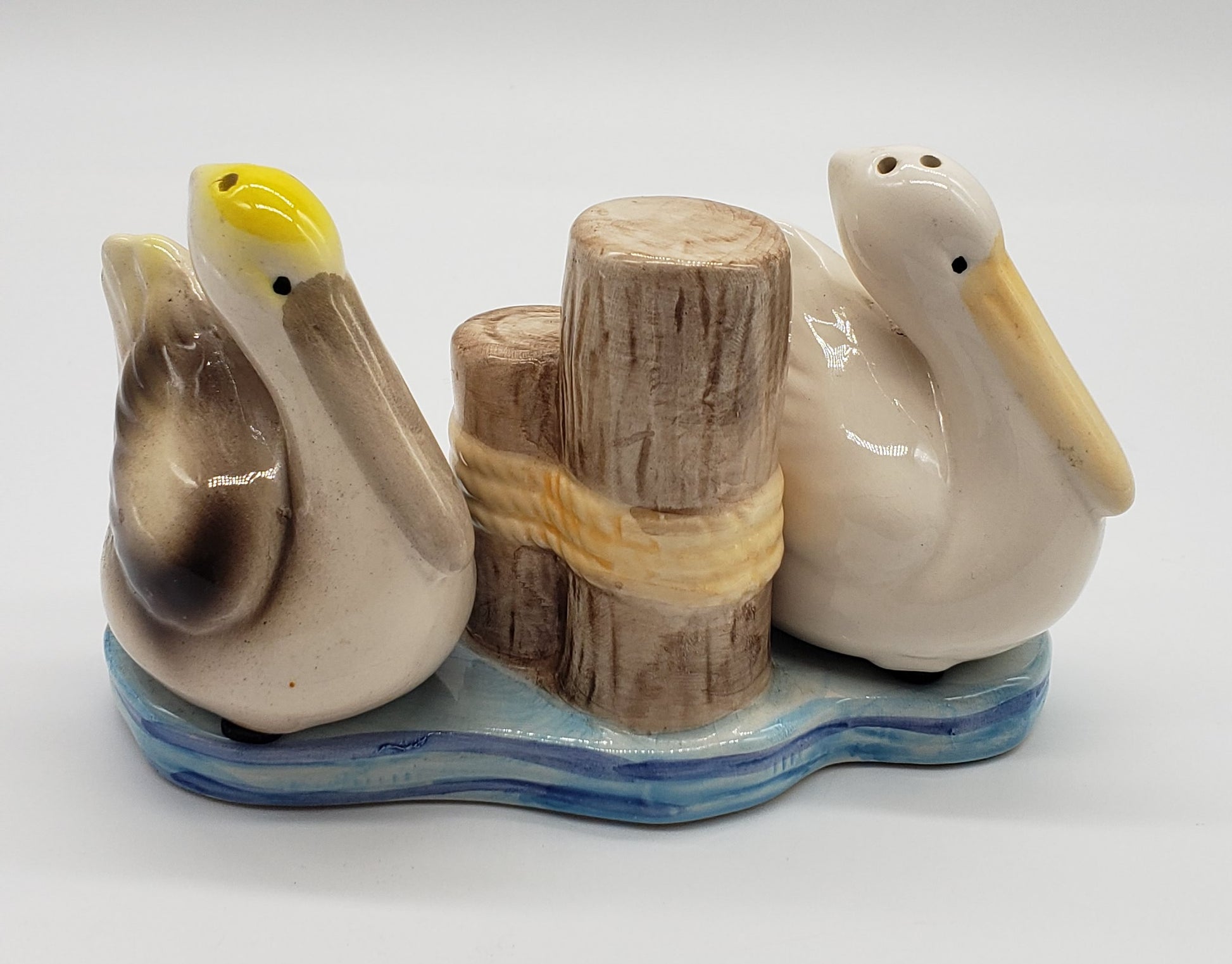 Beachcombers Coastal Pelicans on Water Near Pilings Salt and Pepper Shaker Set