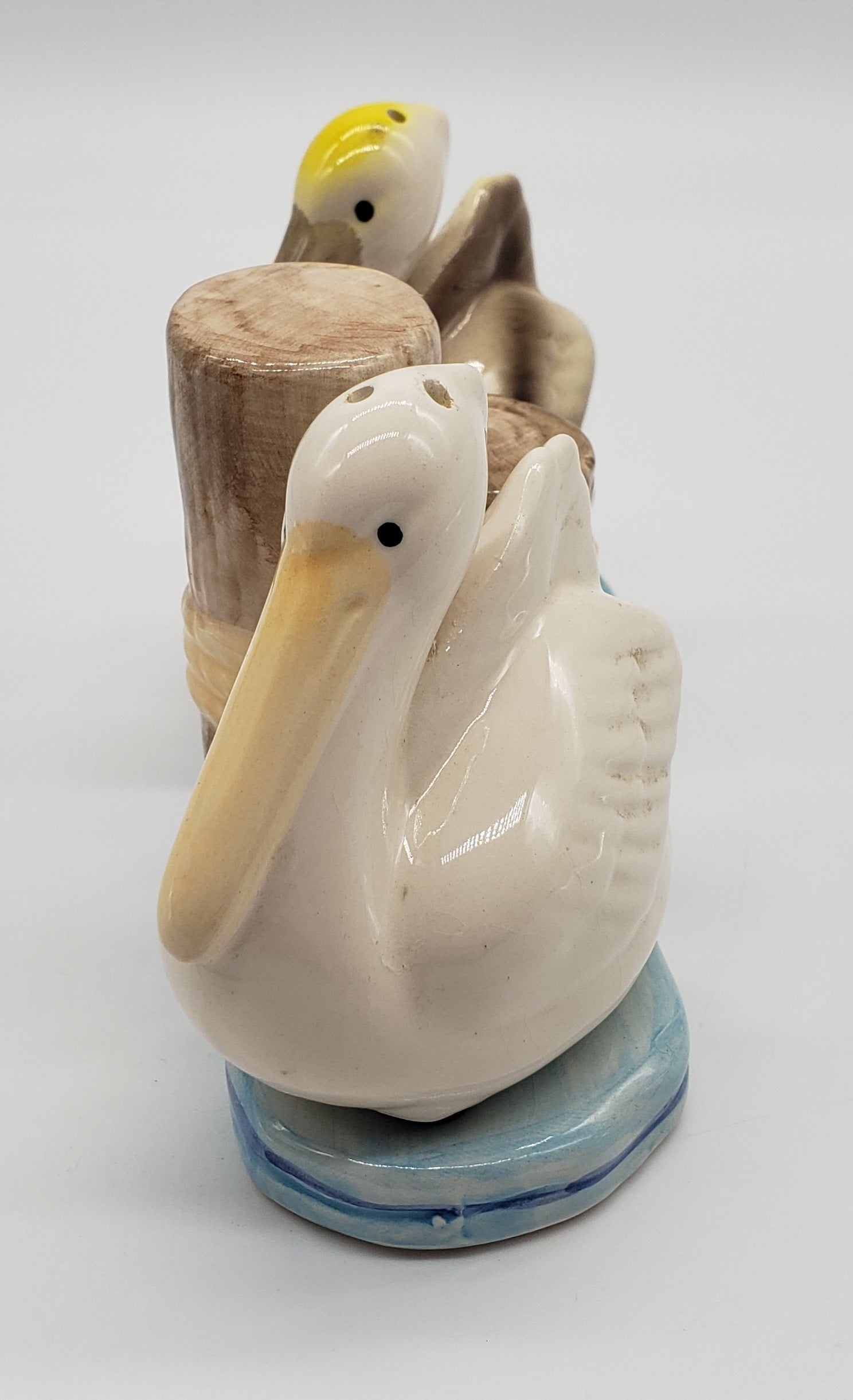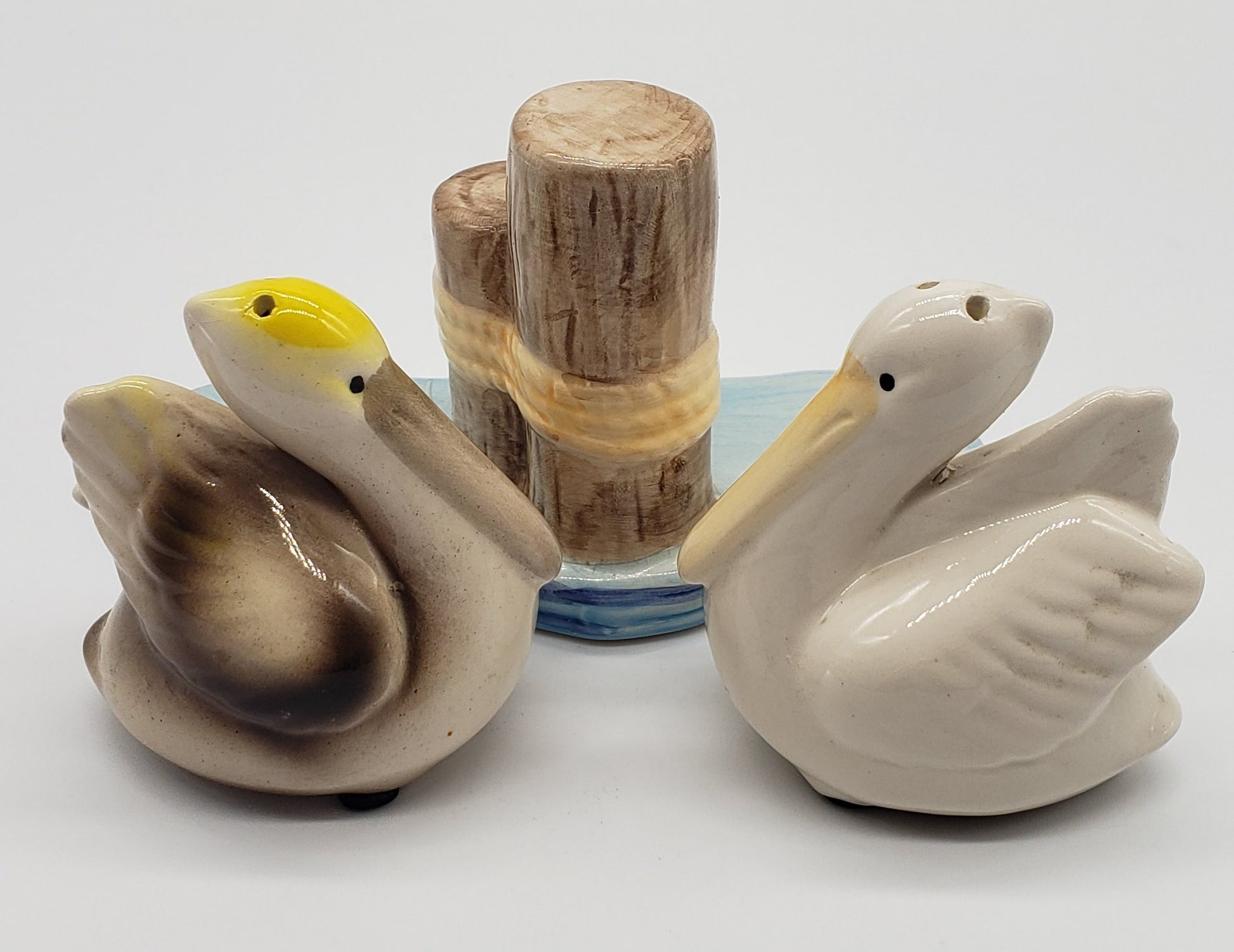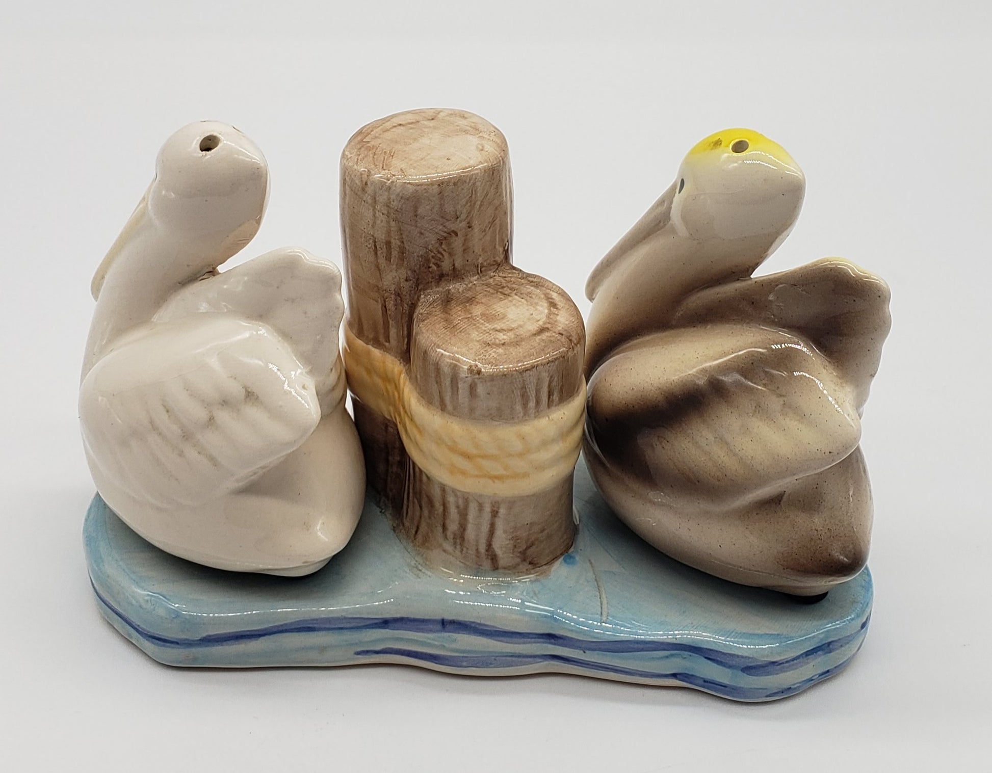 Beachcombers Coastal Pelicans on Water Near Pilings Salt and Pepper Shaker Set