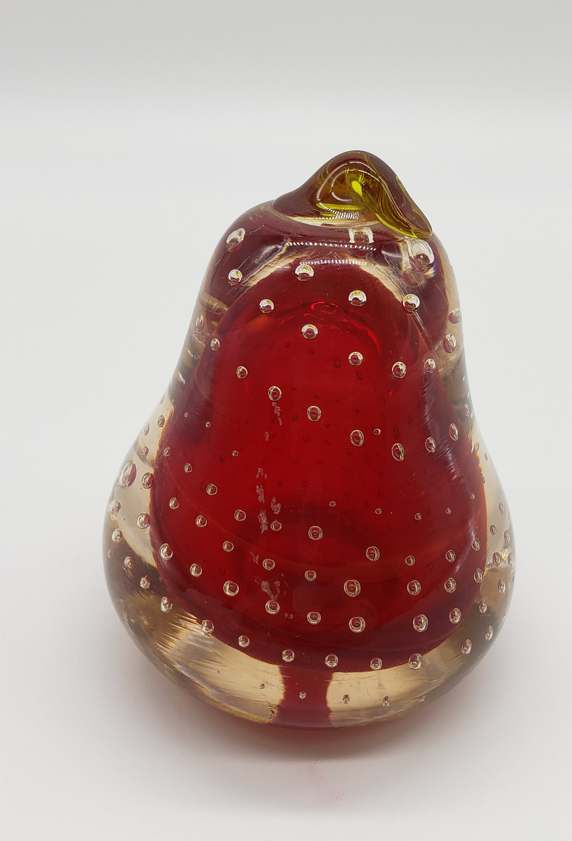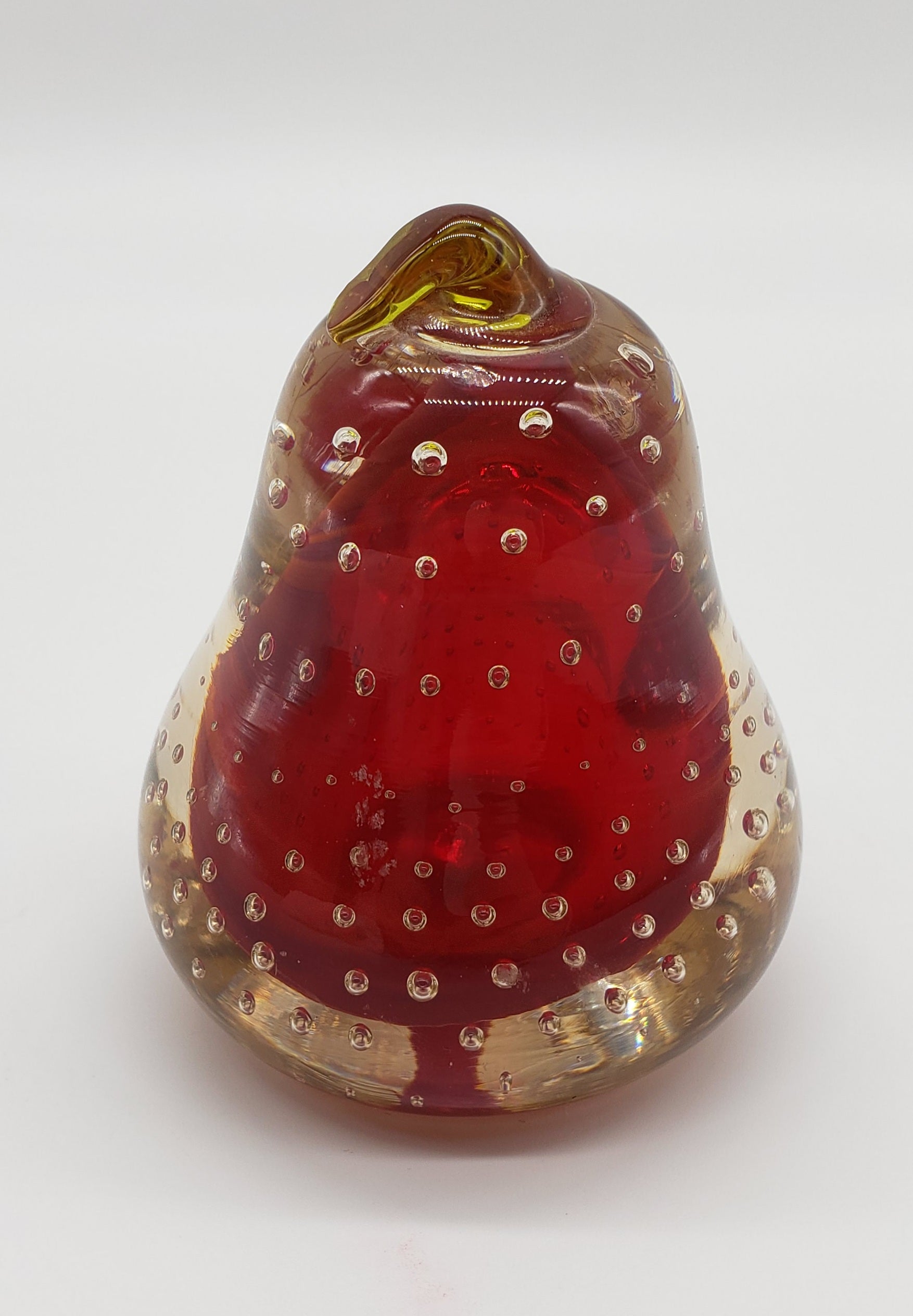 Blown Glass Red Pear Paperweight with Controlled Bubbles
