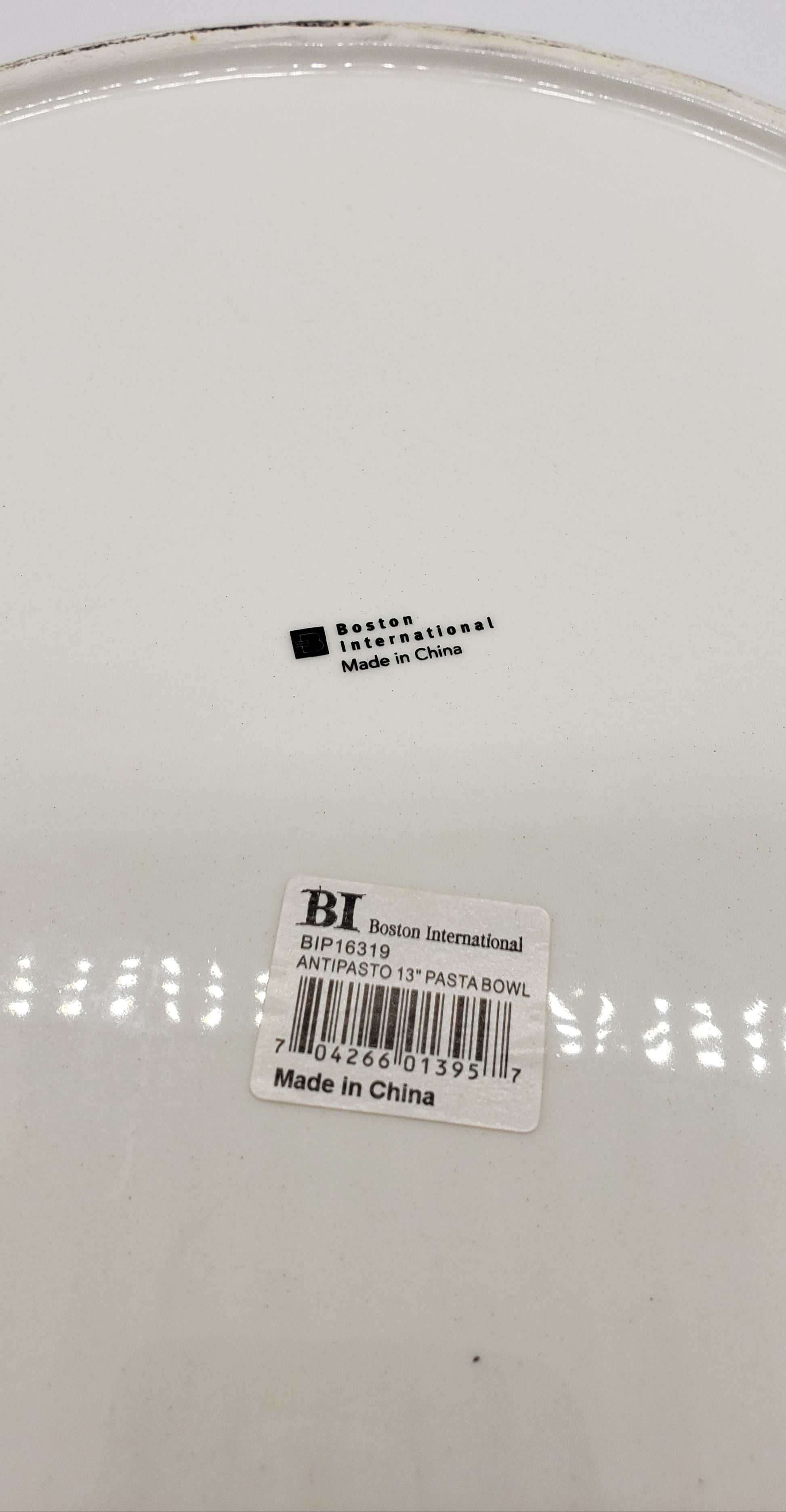 Boston International Antipasto 13 Inch Pasta Bowl. There are a few rough spots around the rim.