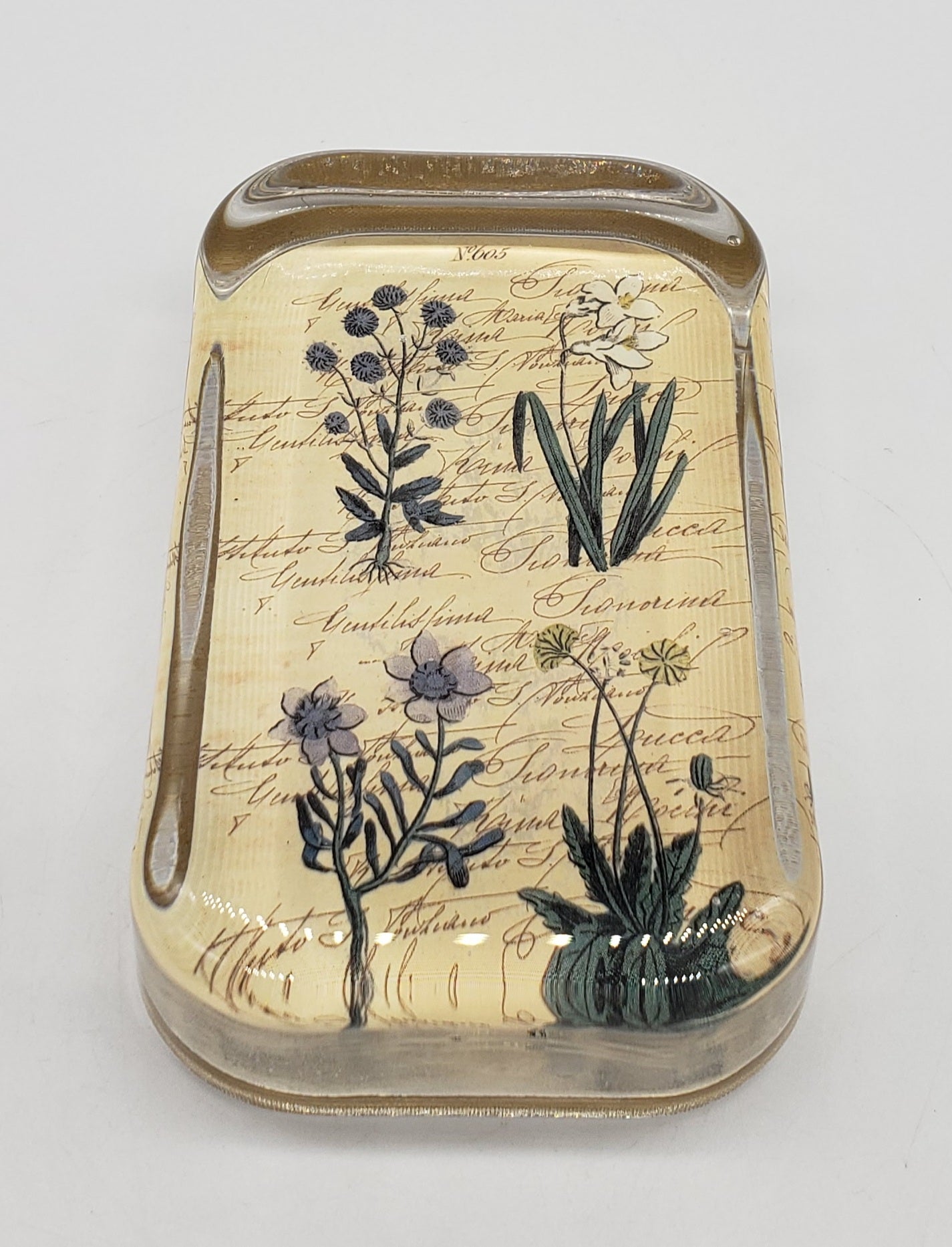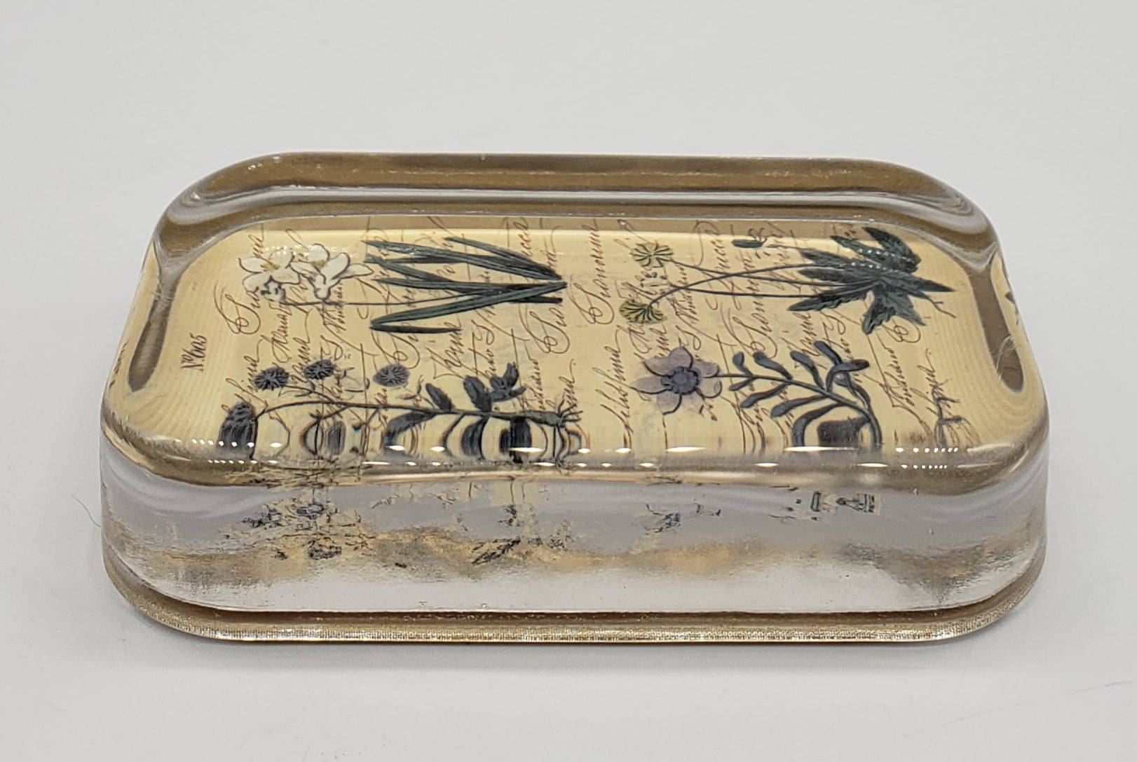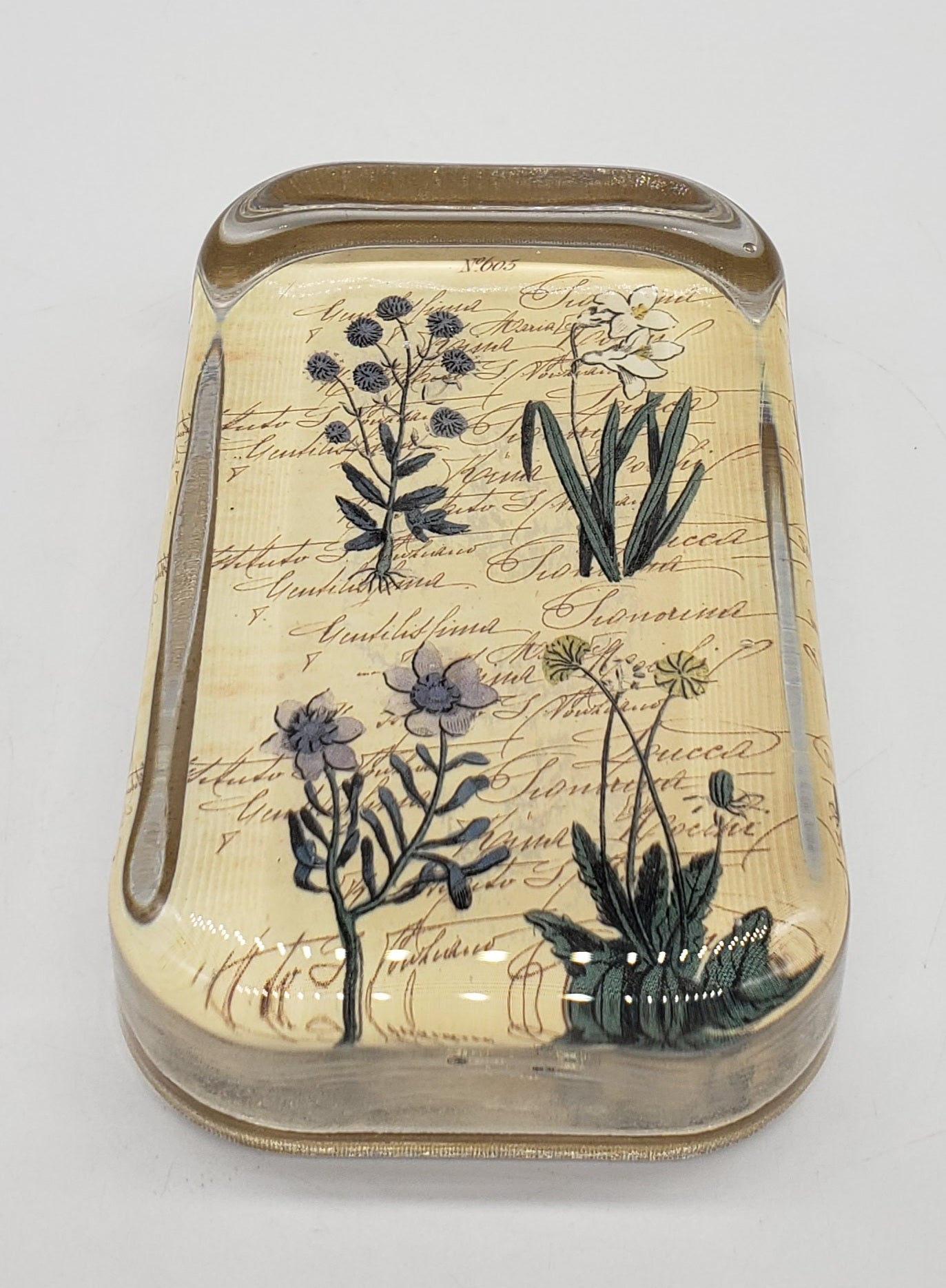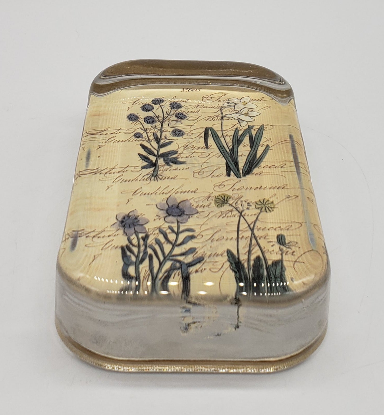 Botanical Rectangular Domed Paperweight - No. 605 - Floral Paperweight - Vintage Glass Paperweight