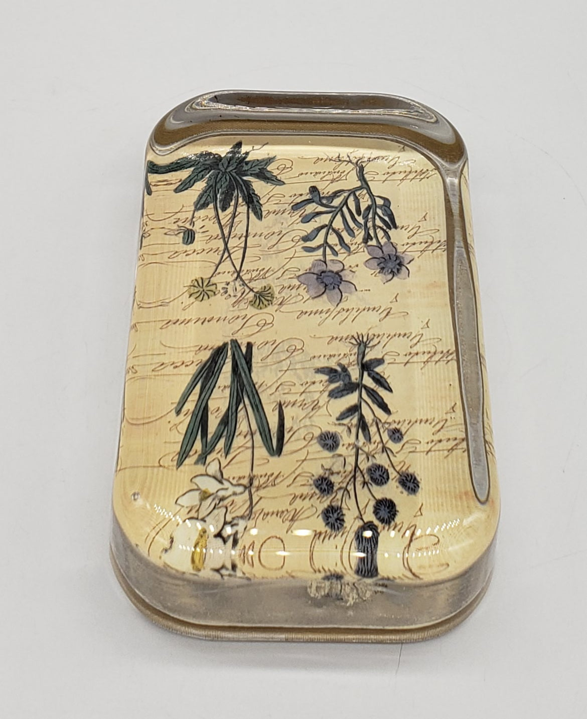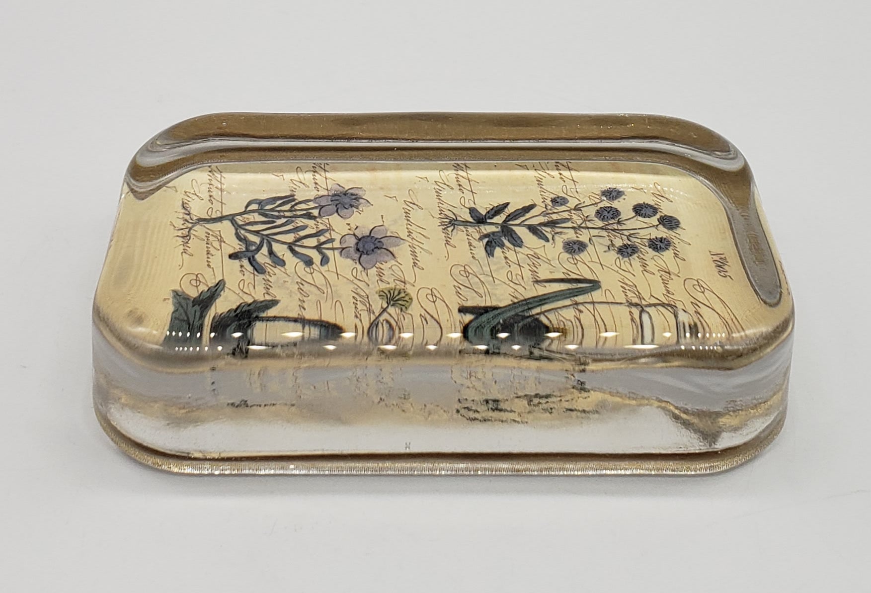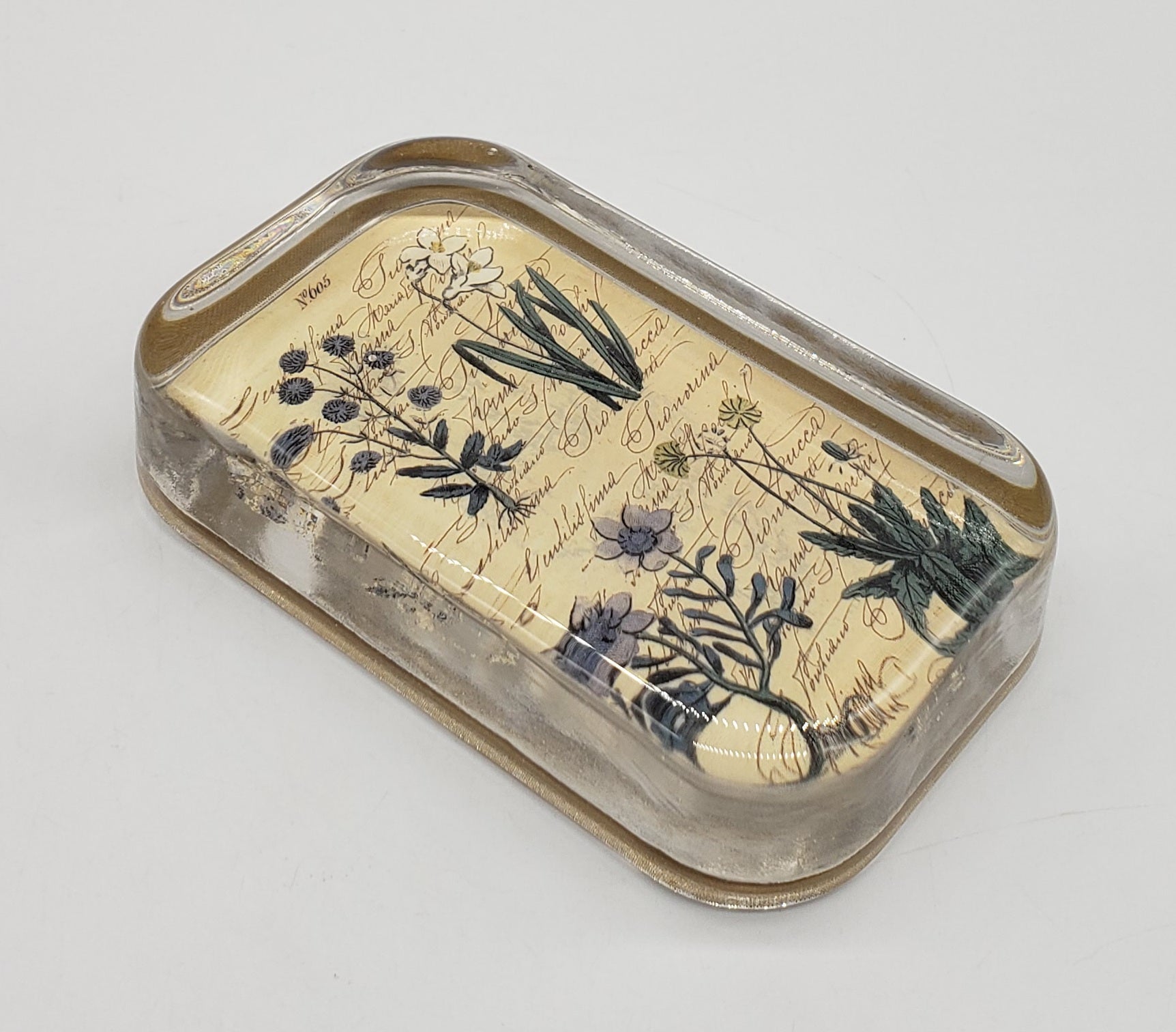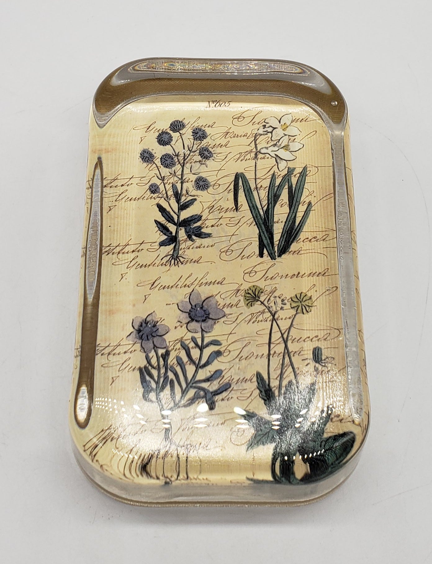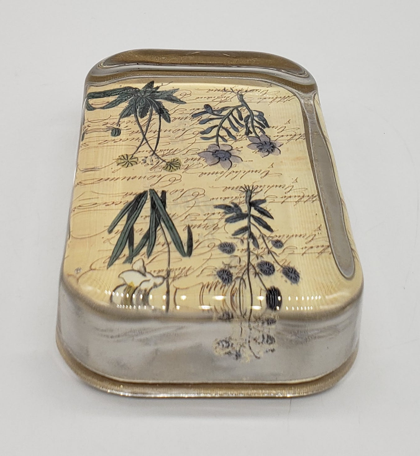 Botanical Rectangular Domed Paperweight - No. 605 - Floral Paperweight - Vintage Glass Paperweight