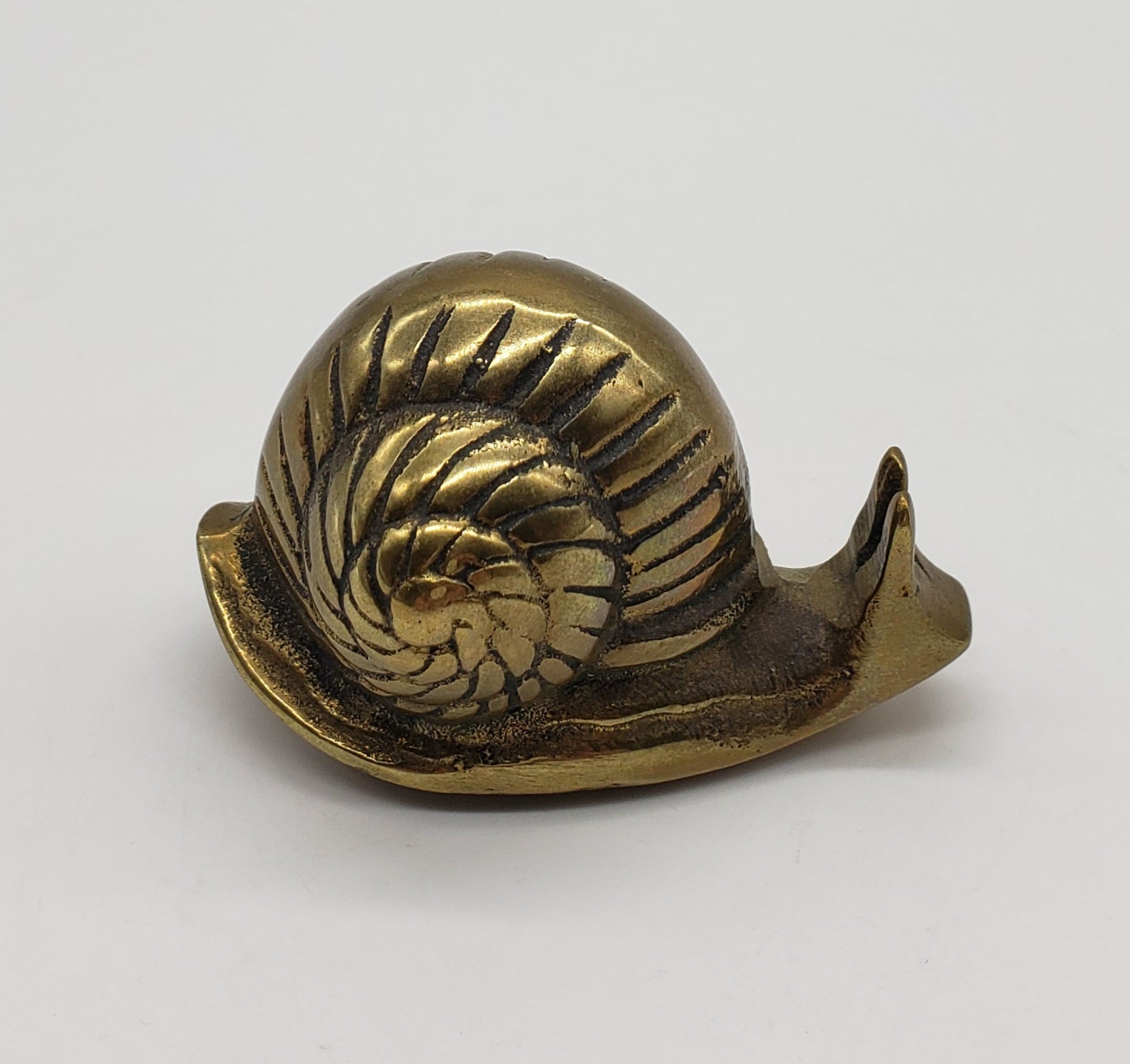 Vintage Brass Lucky Snail Paperweight Figurine. All brass items will show there wear, from normal use and age. Scratches and other vintage wear. Vintage Brass Lucky Snail Paperweight Figurine