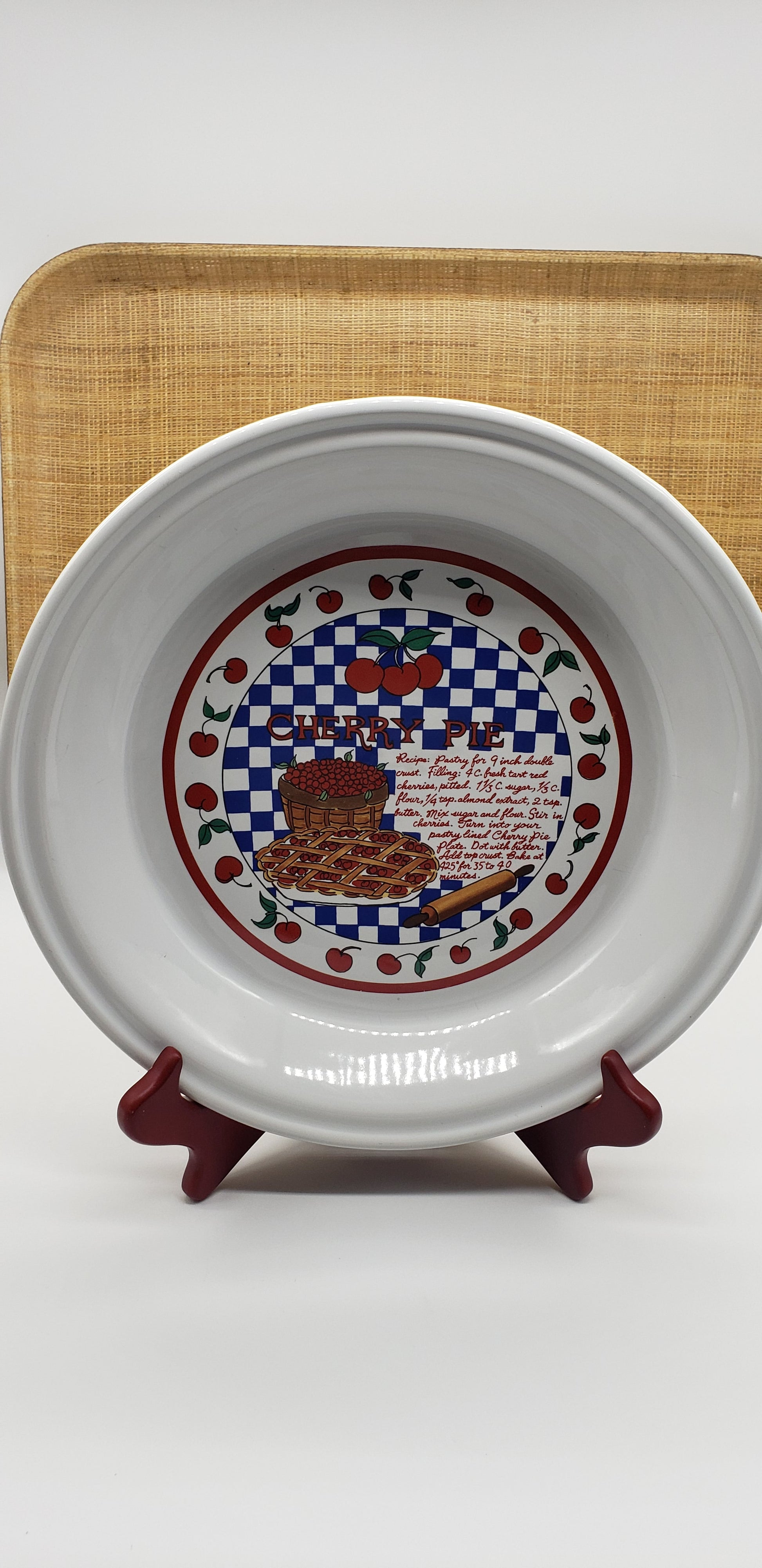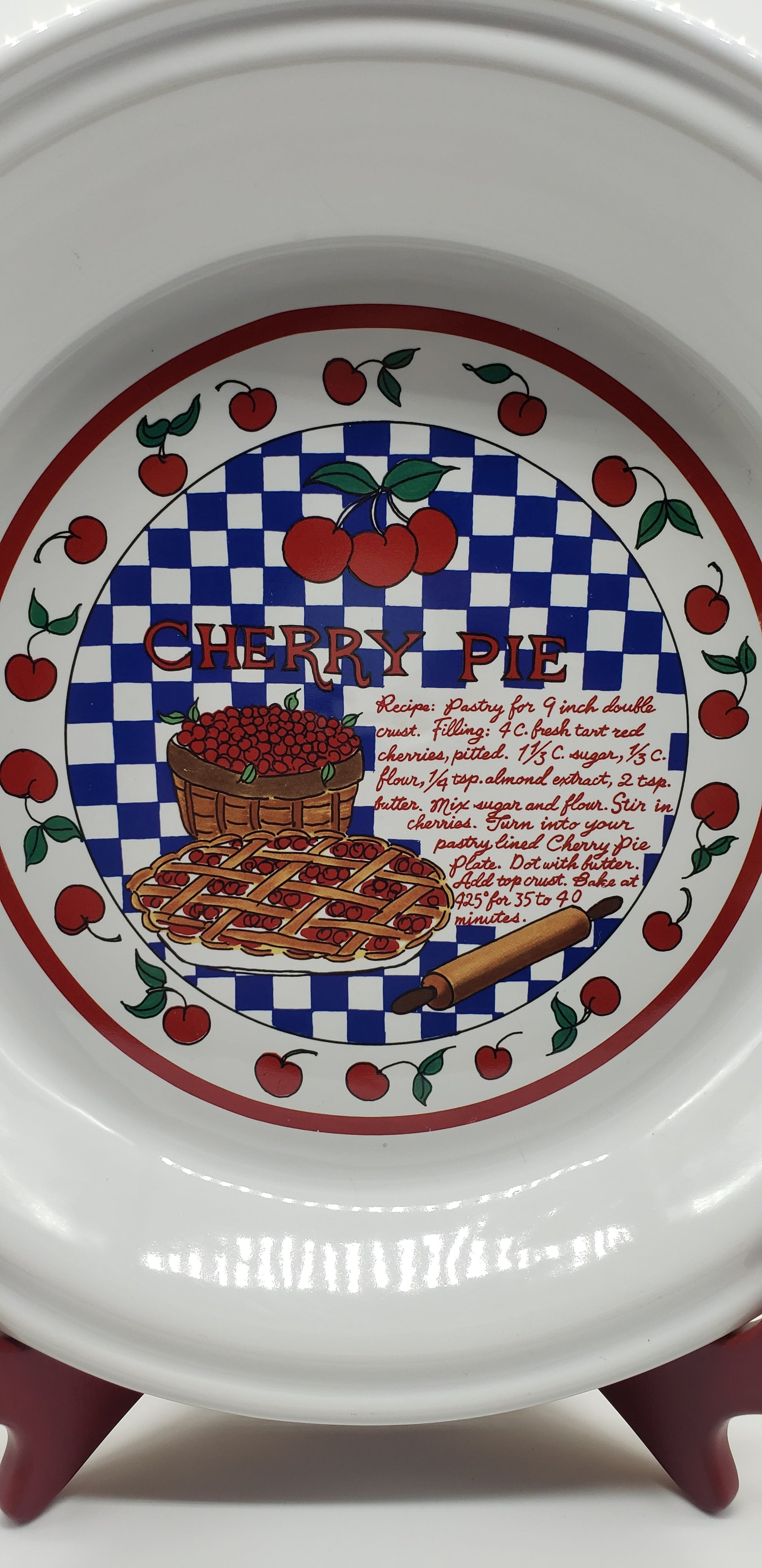 Indoor Outfitters Cherry Pie Recipe with recipe, measures 11 inches wide and about 1 1/2 inches deep.