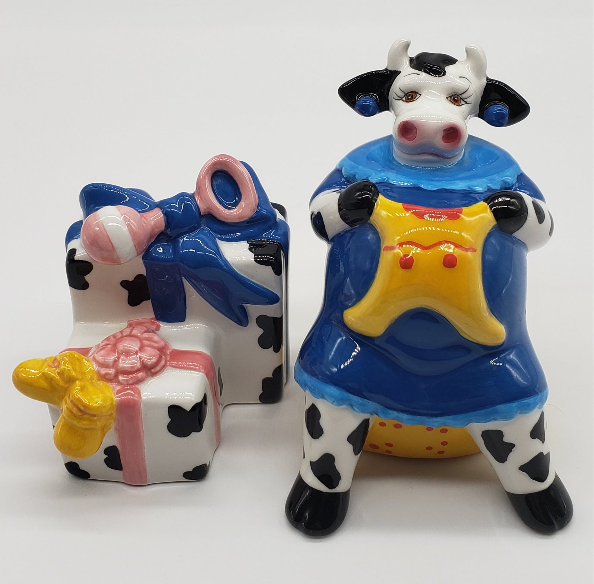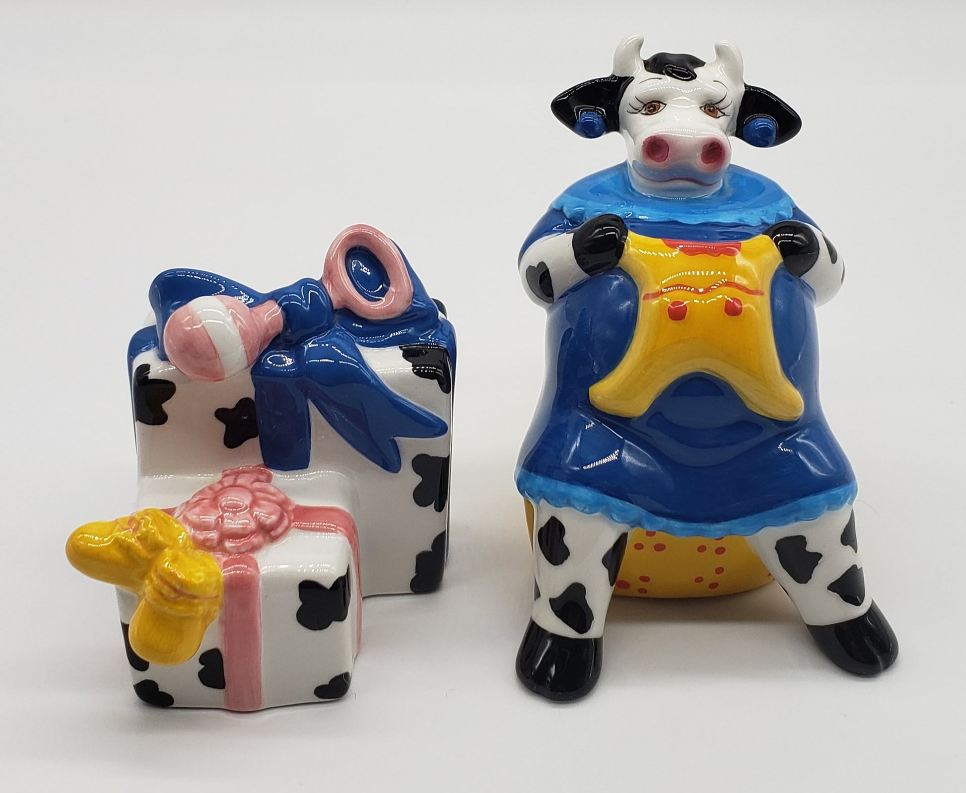 Clay Art Pregnant Cow Salt and Pepper Shakers