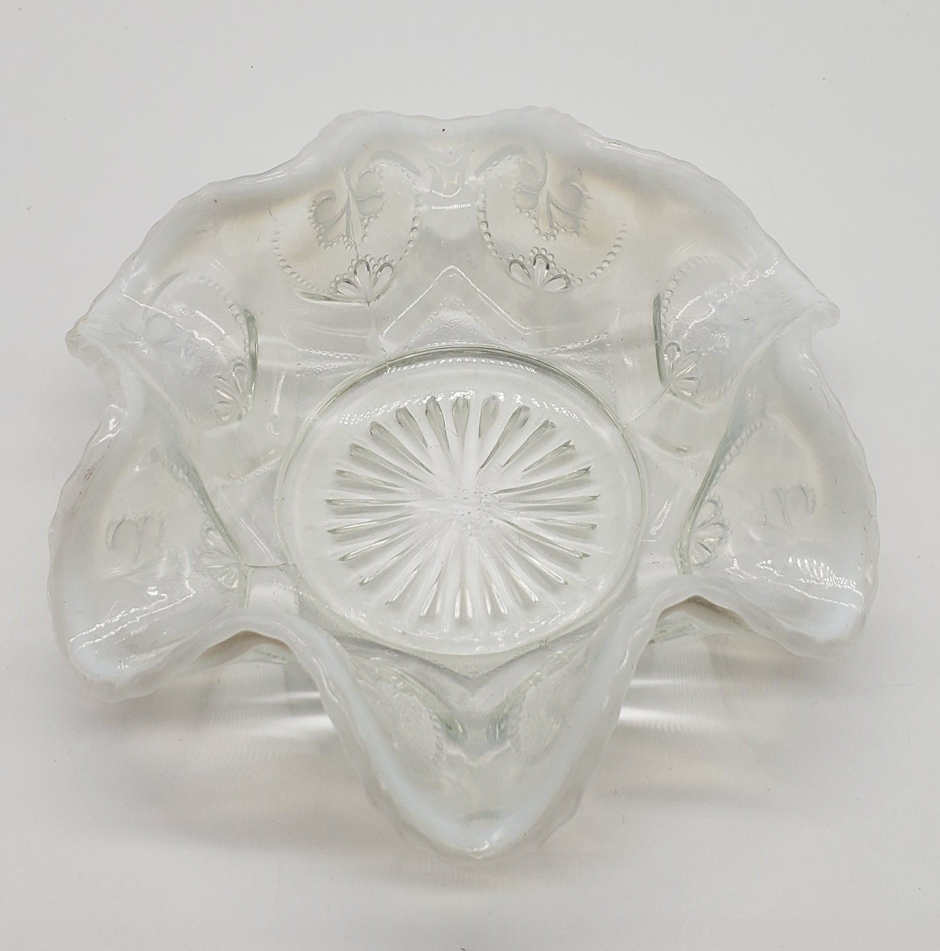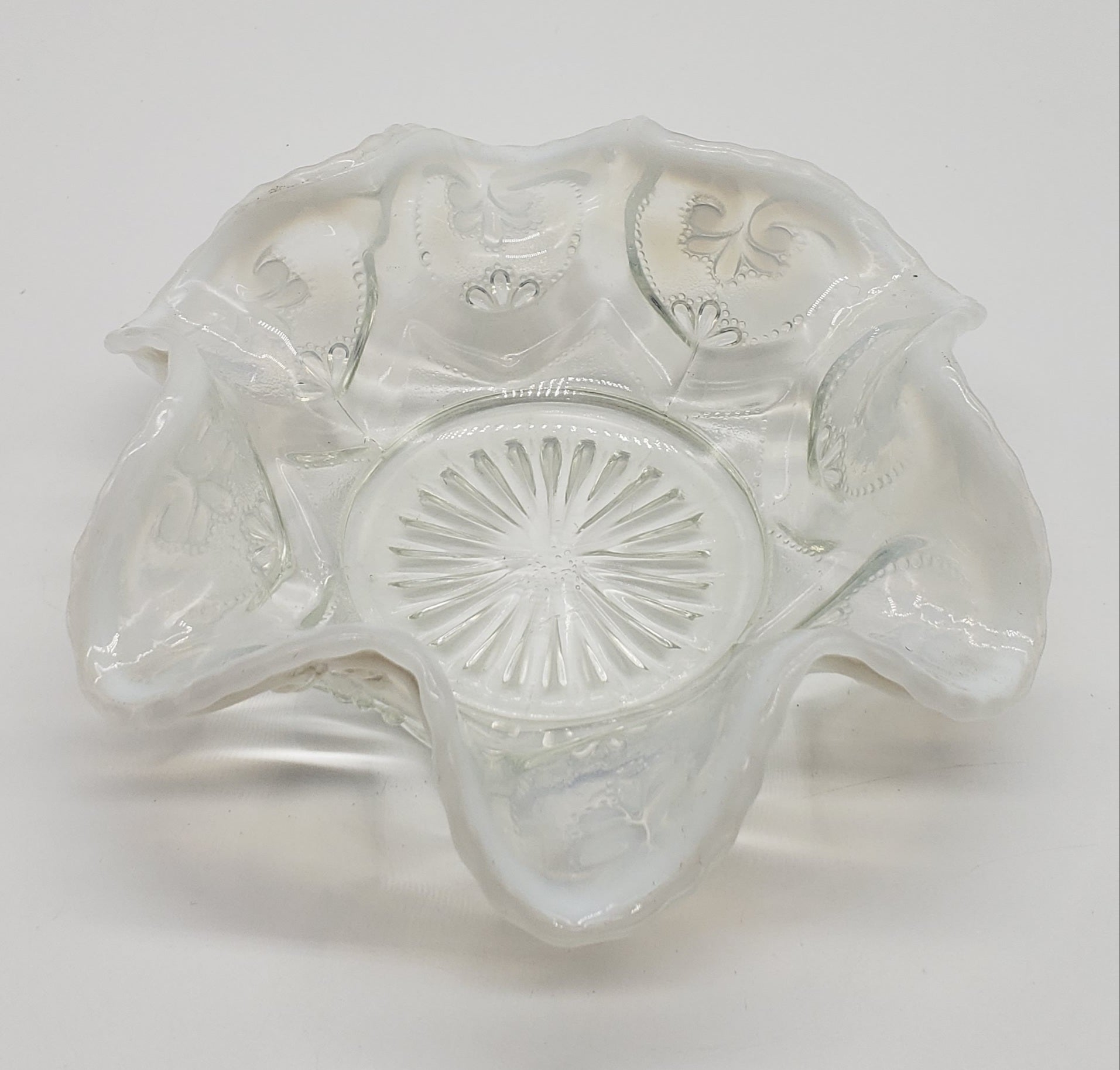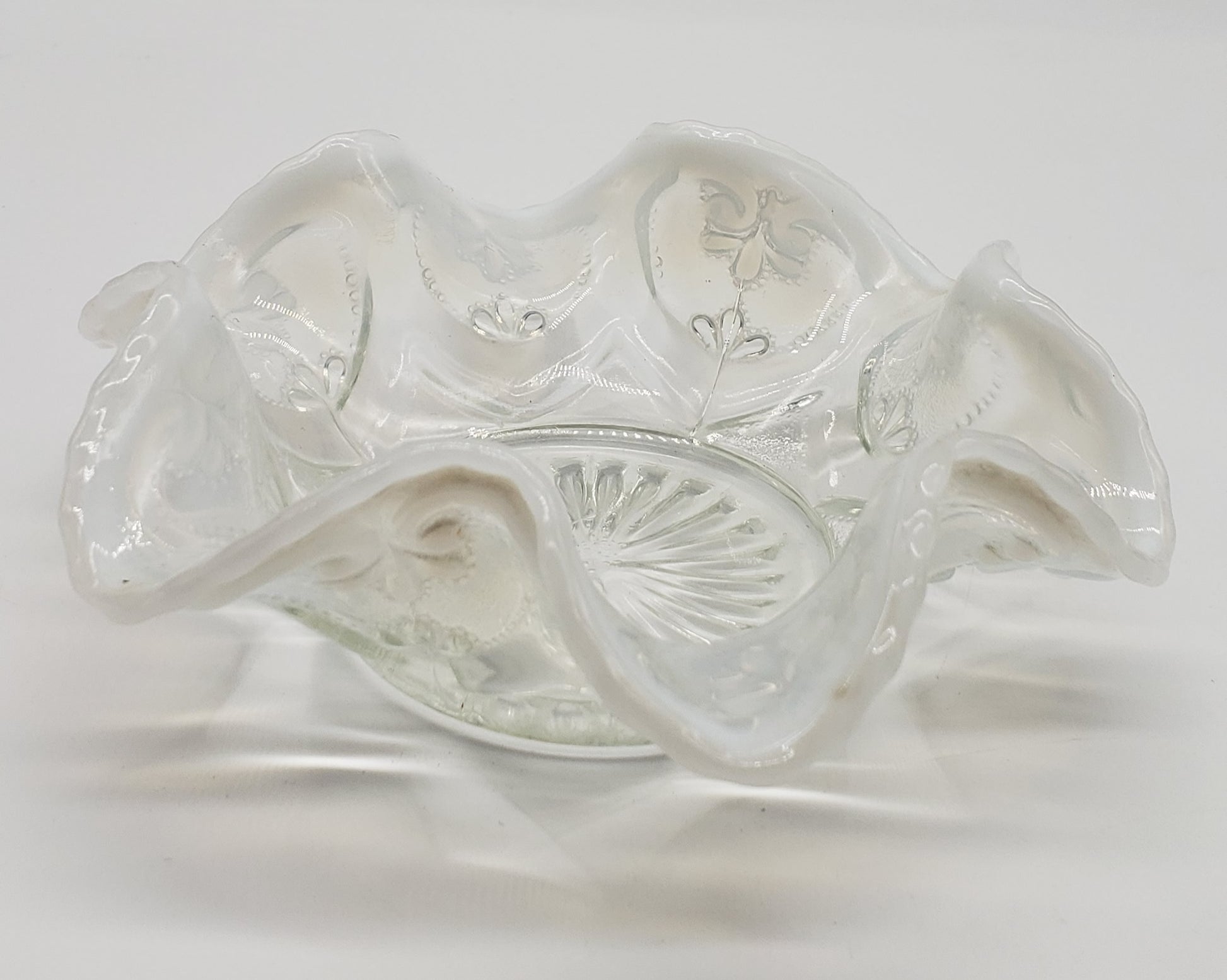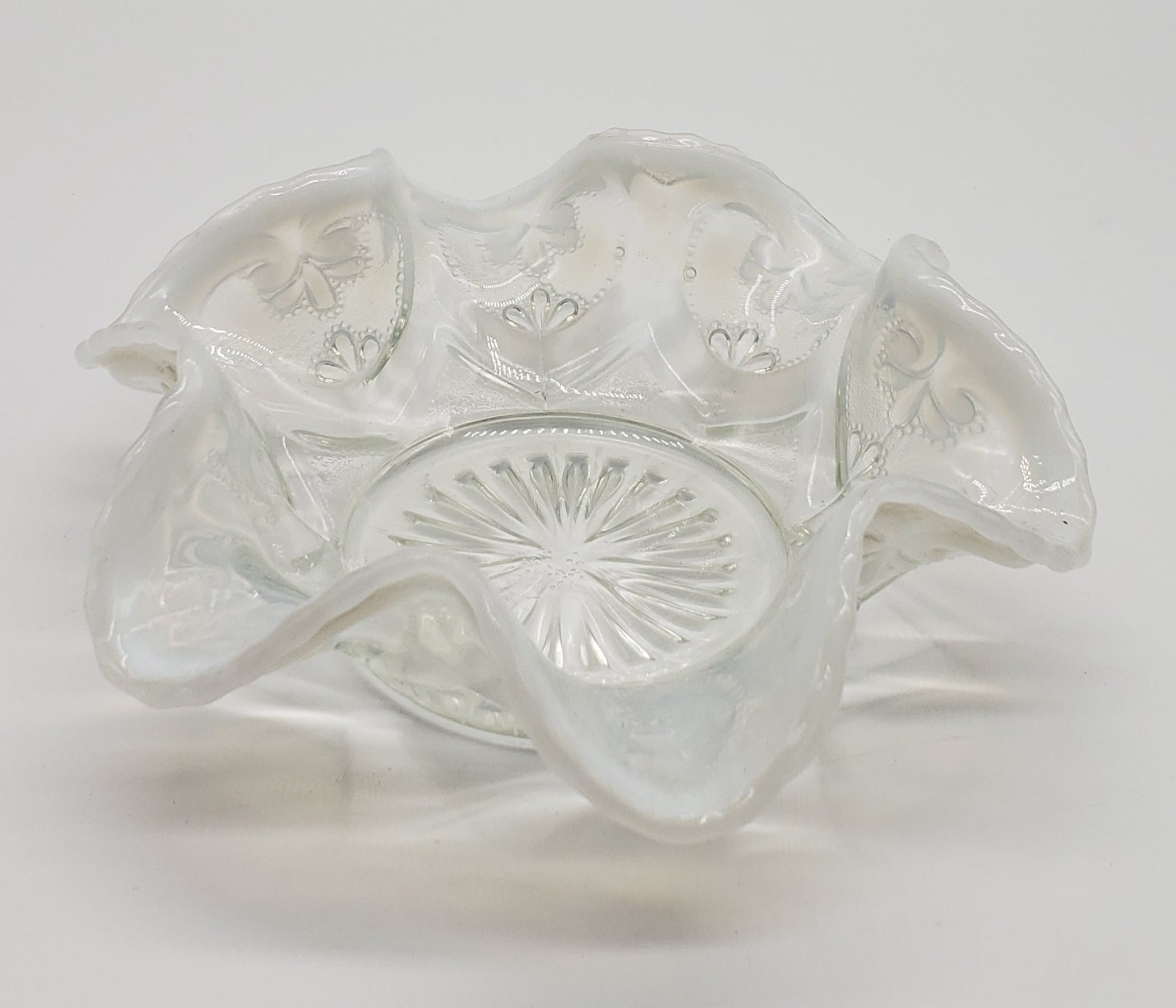 Dugan Jeweled Glass Berry Bowl White Opalescent Circa 1905