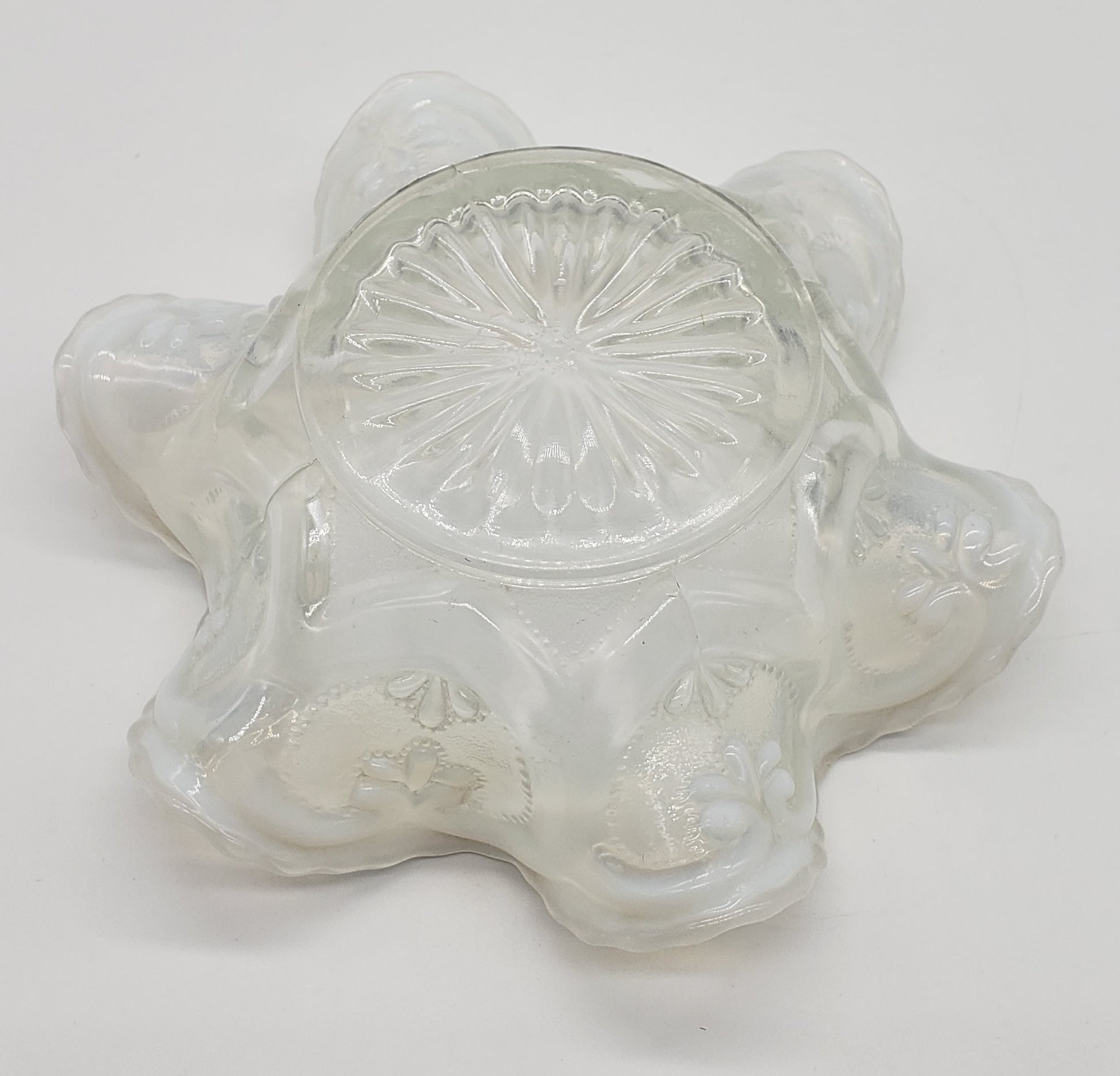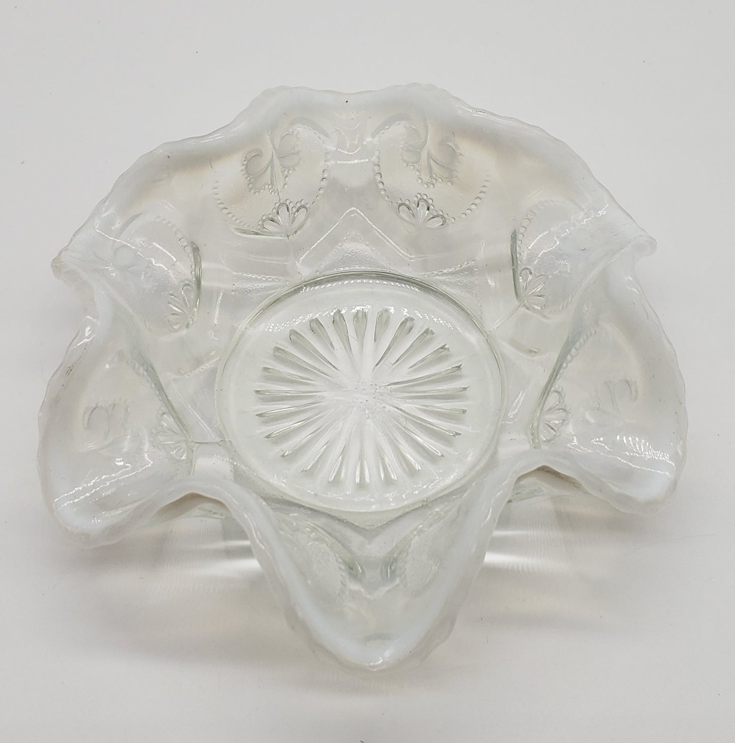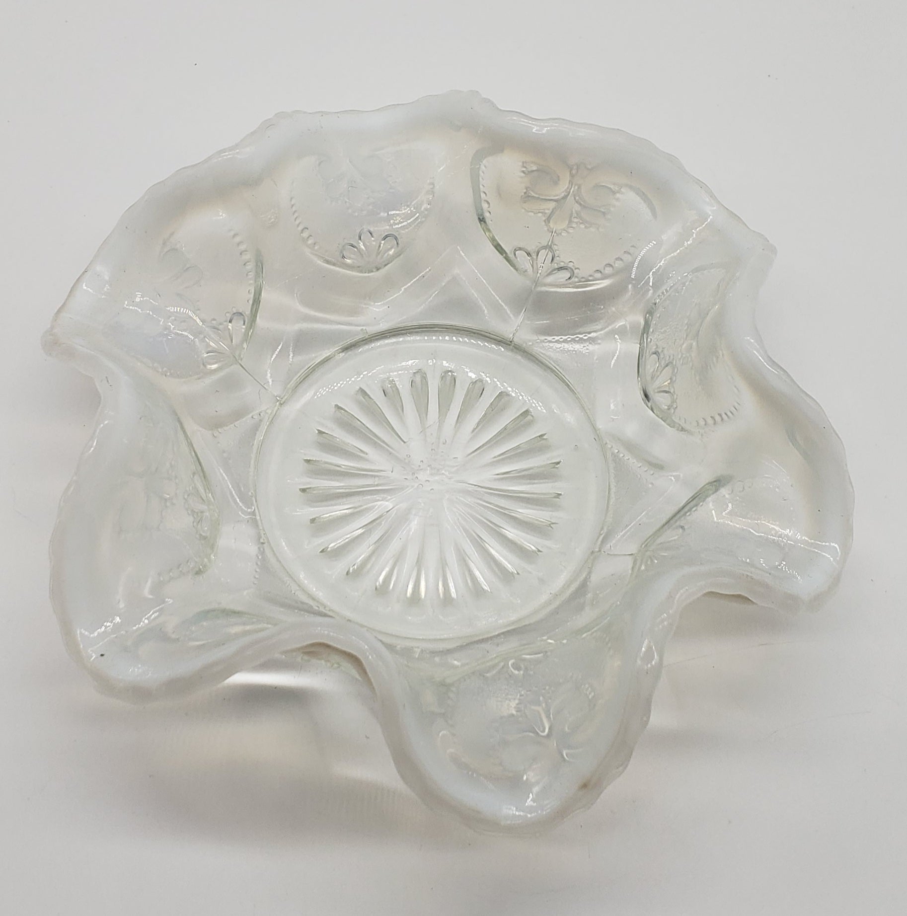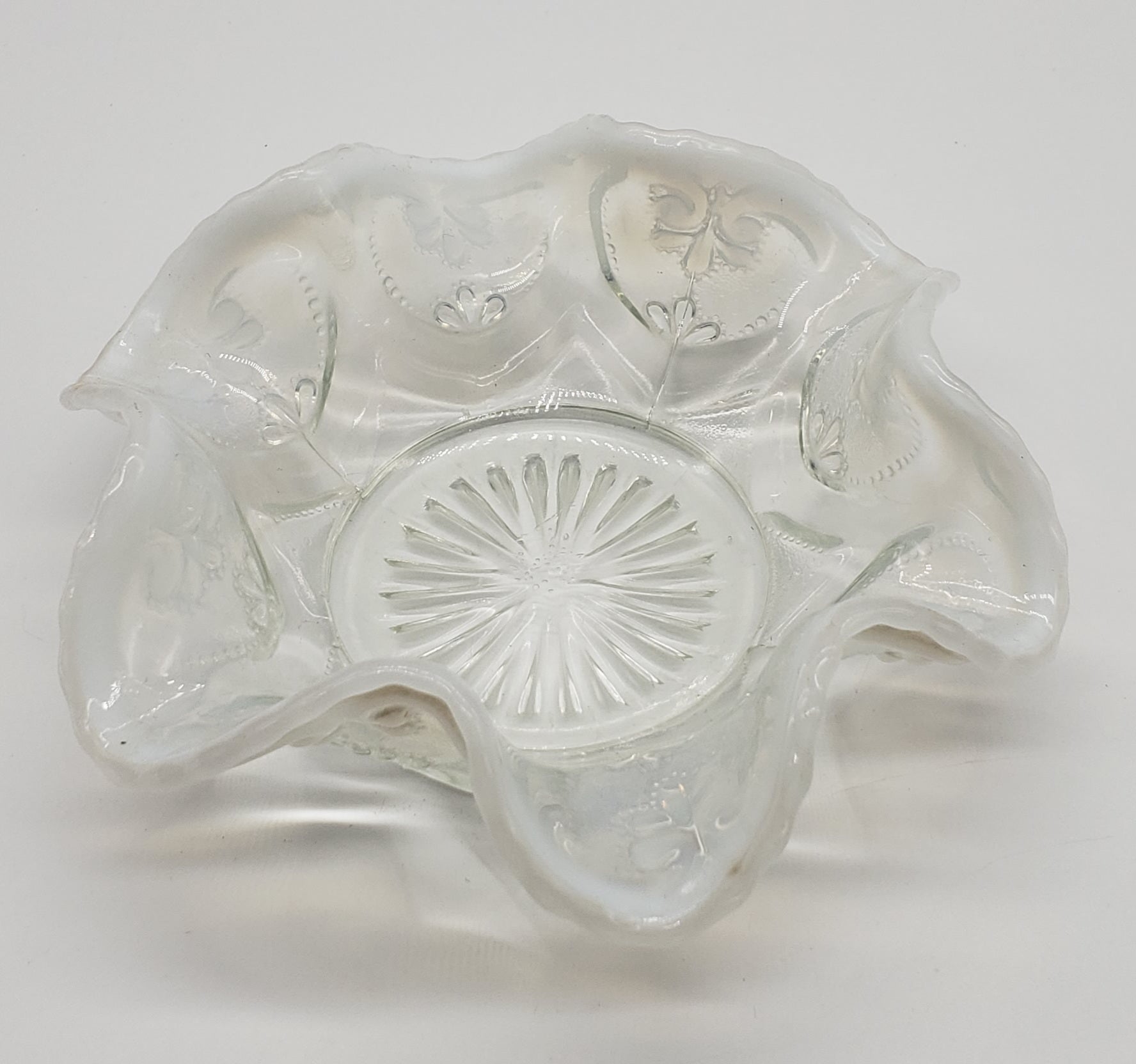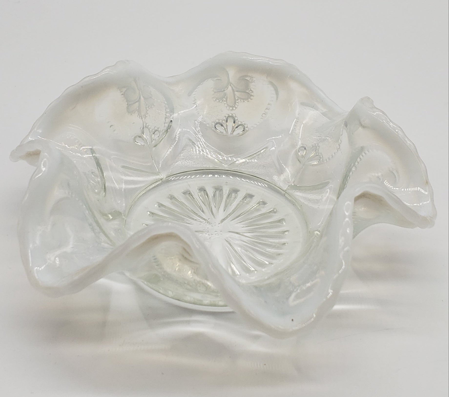 Dugan Jeweled Glass Berry Bowl White Opalescent Circa 1905