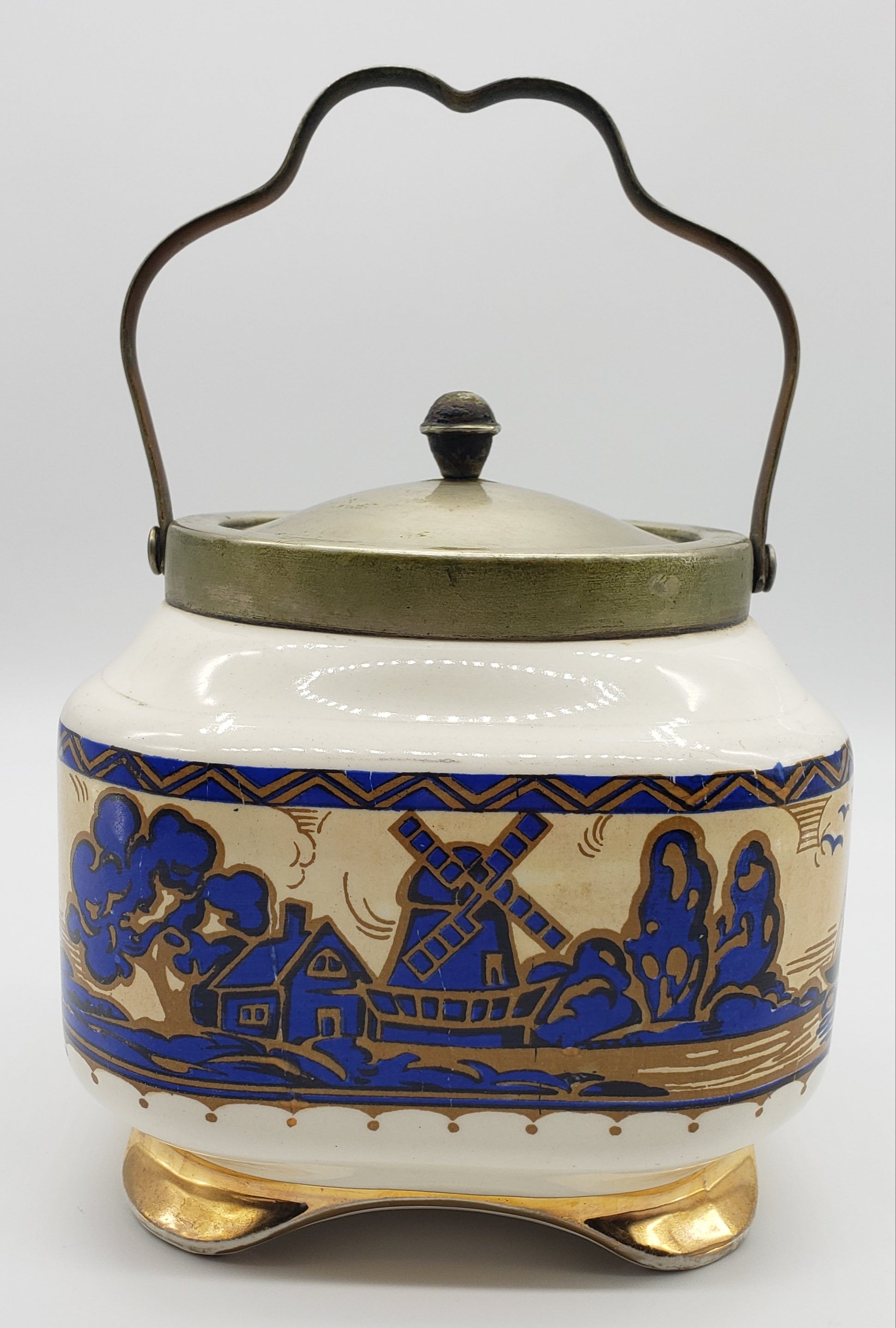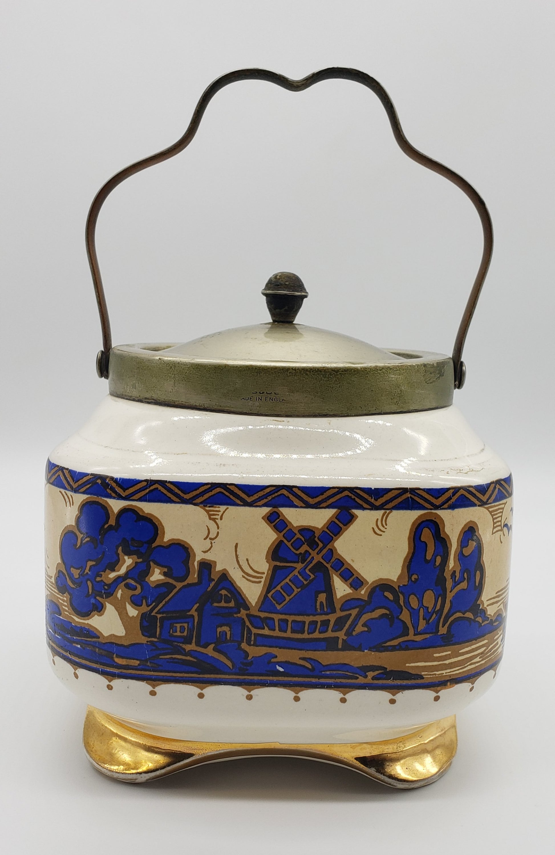 EPNS Cookie Jar & English Regent China - Porcelain Biscuit Barrel