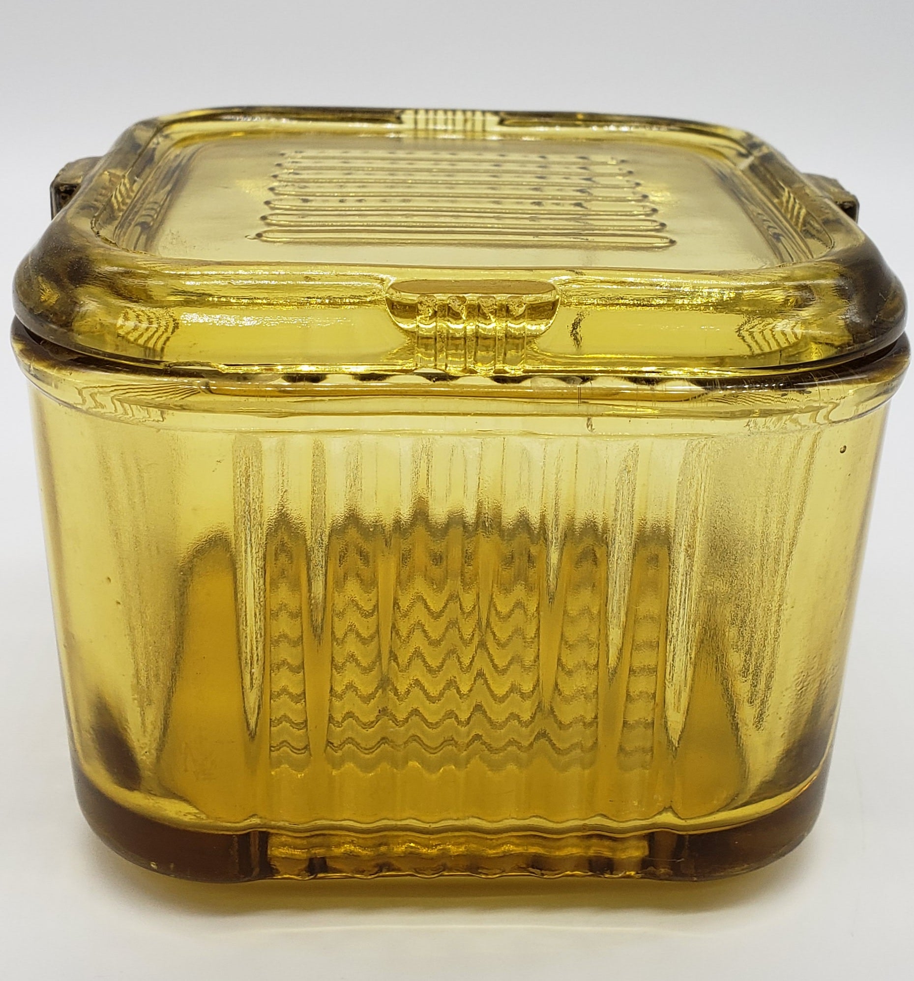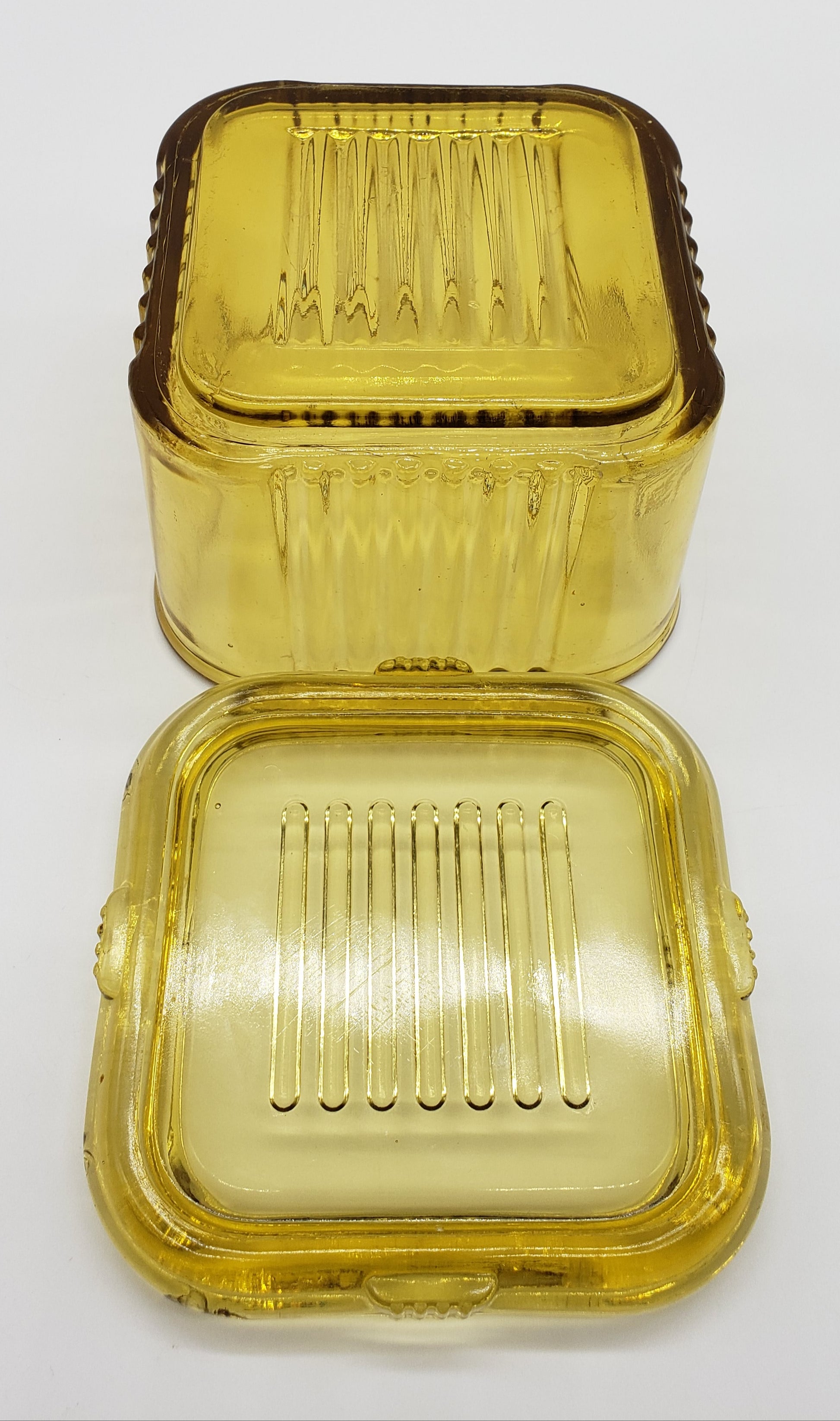 Federal Amber Glass Square Ribbed Refrigerator Dish with Lid