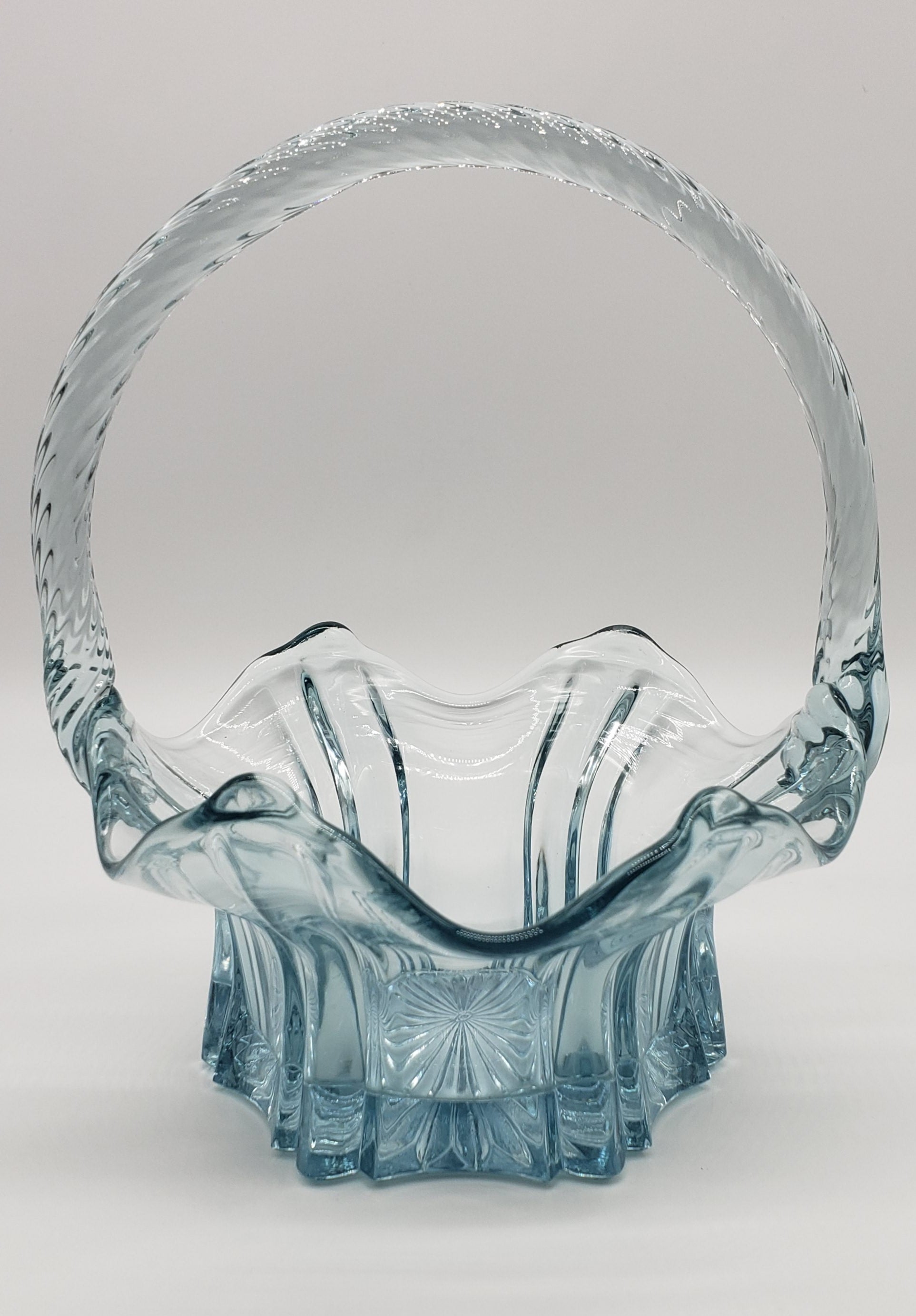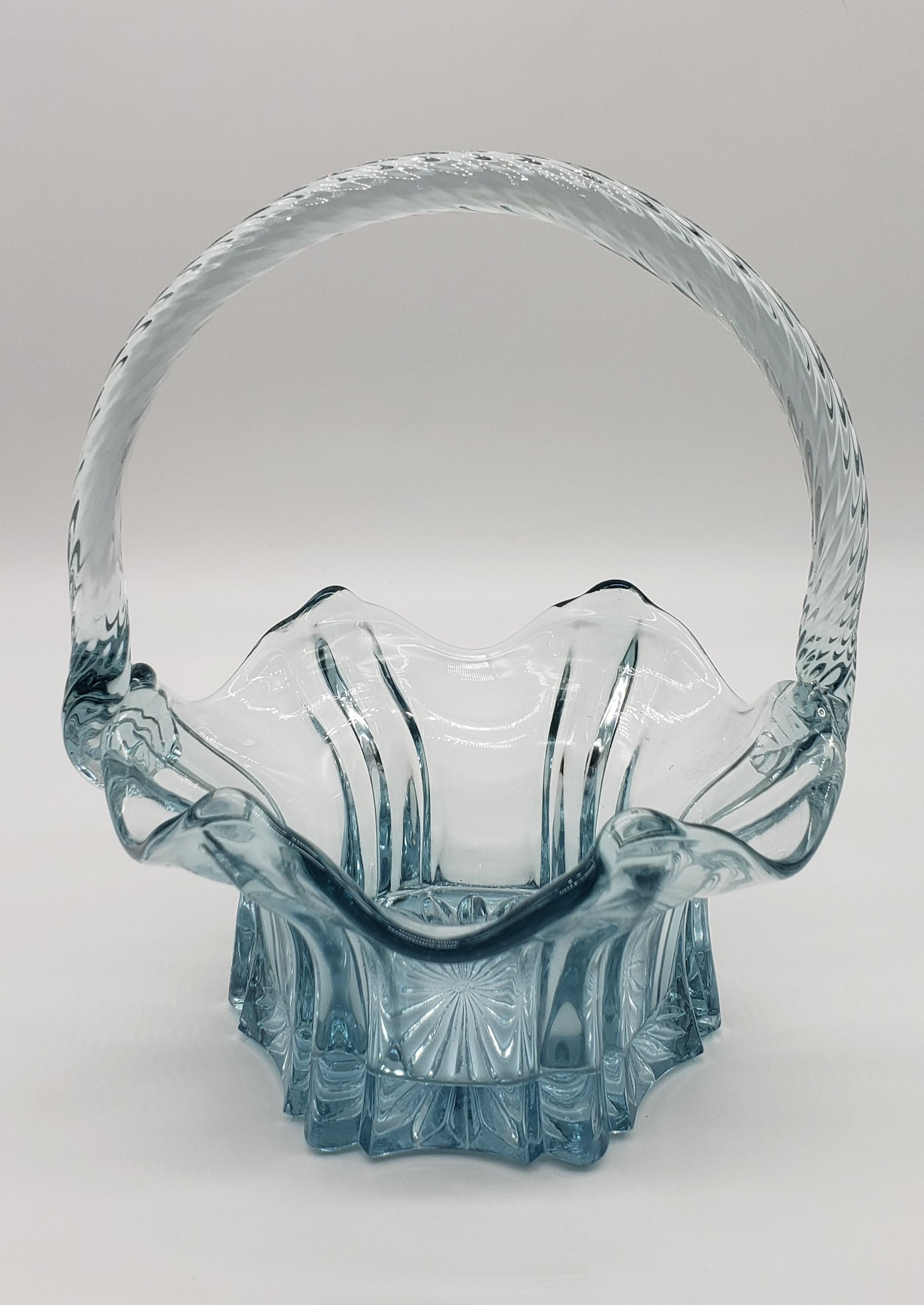 Fenton Art Glass Vulcan Pattern Ice Blue Basket