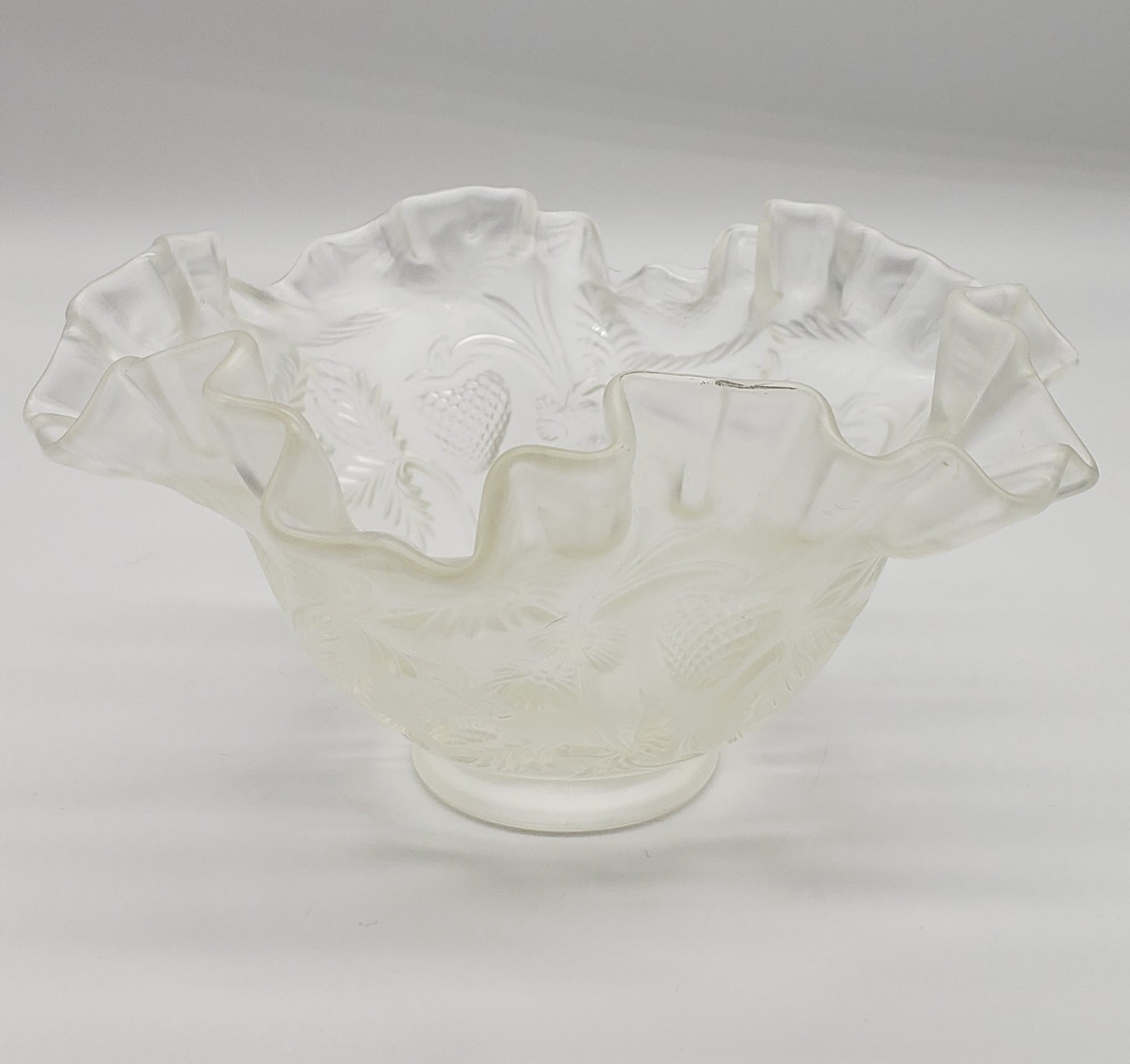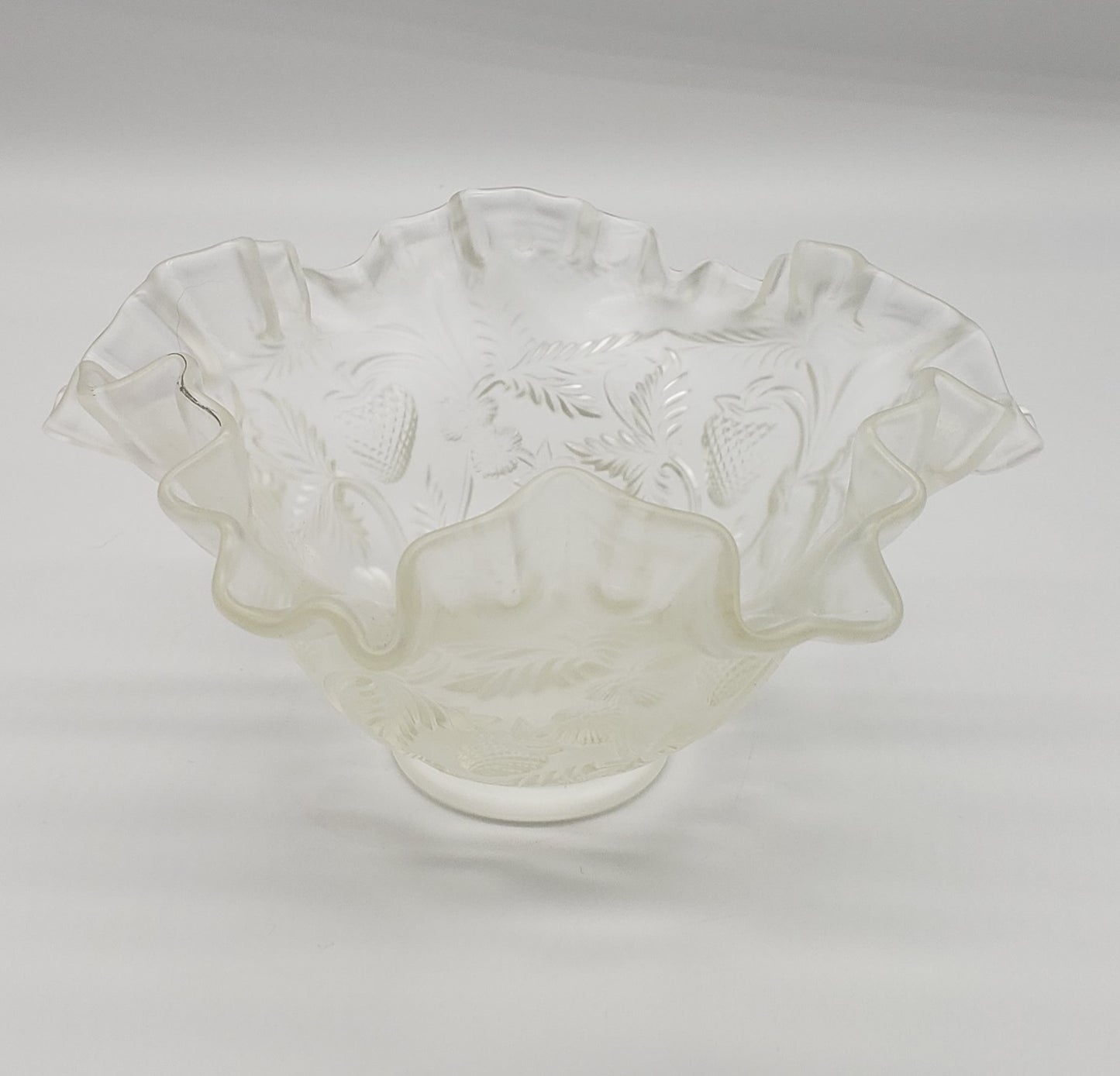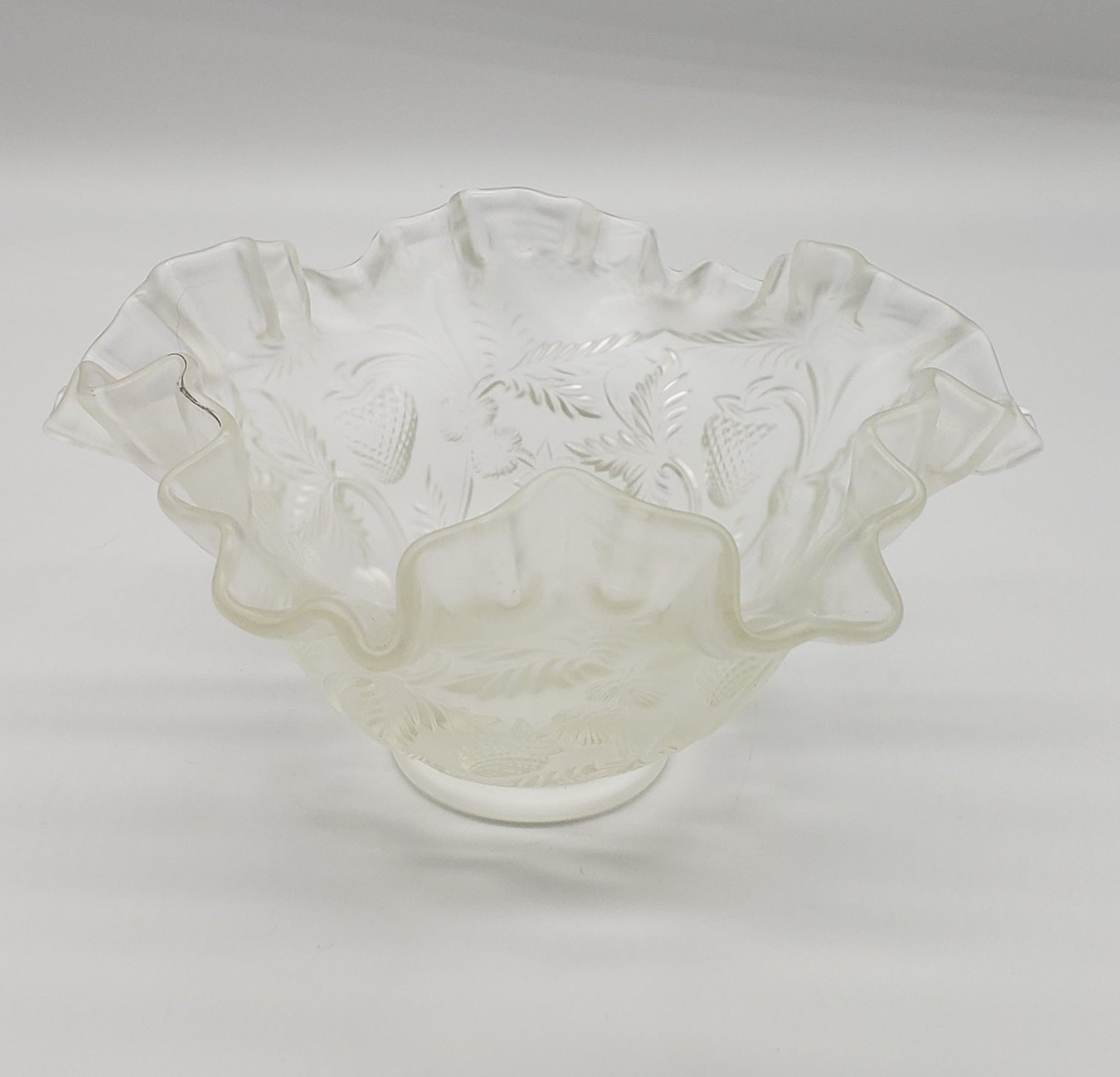 Fenton satin Glass Ruffled Edge Strawberry candy dish