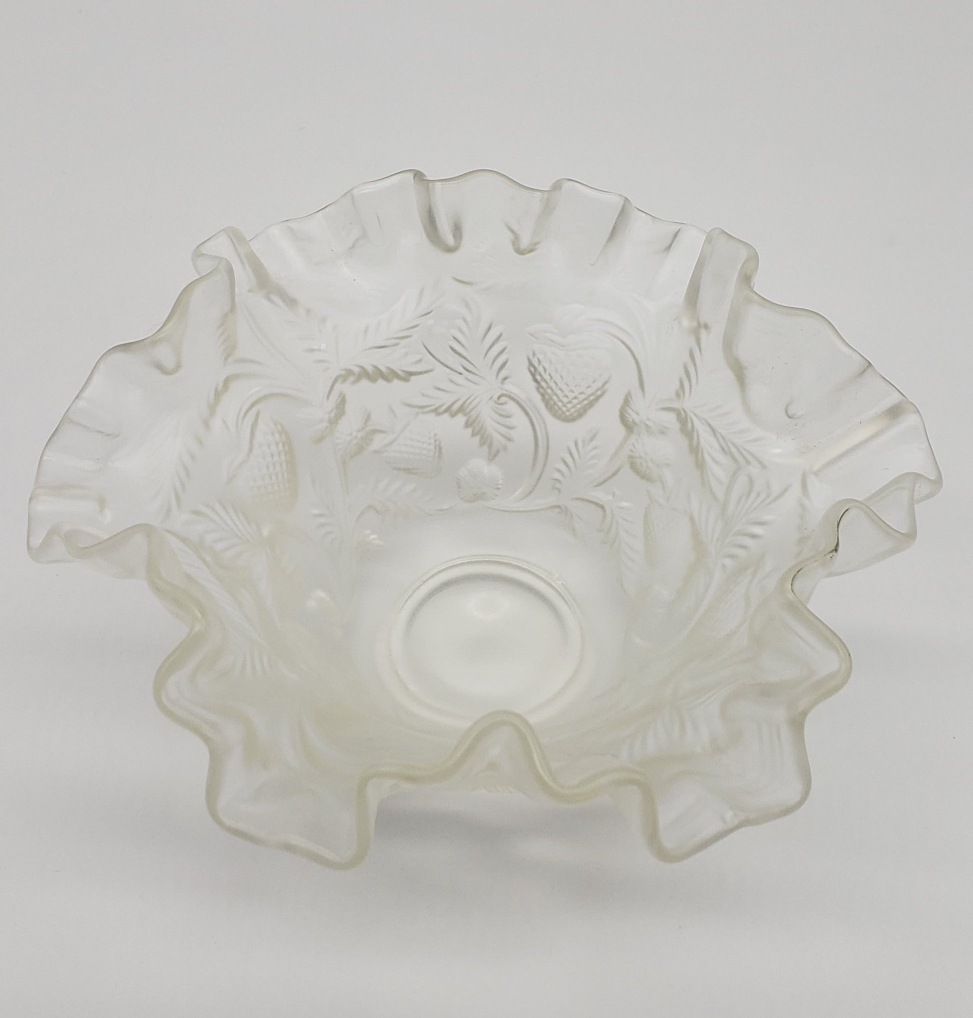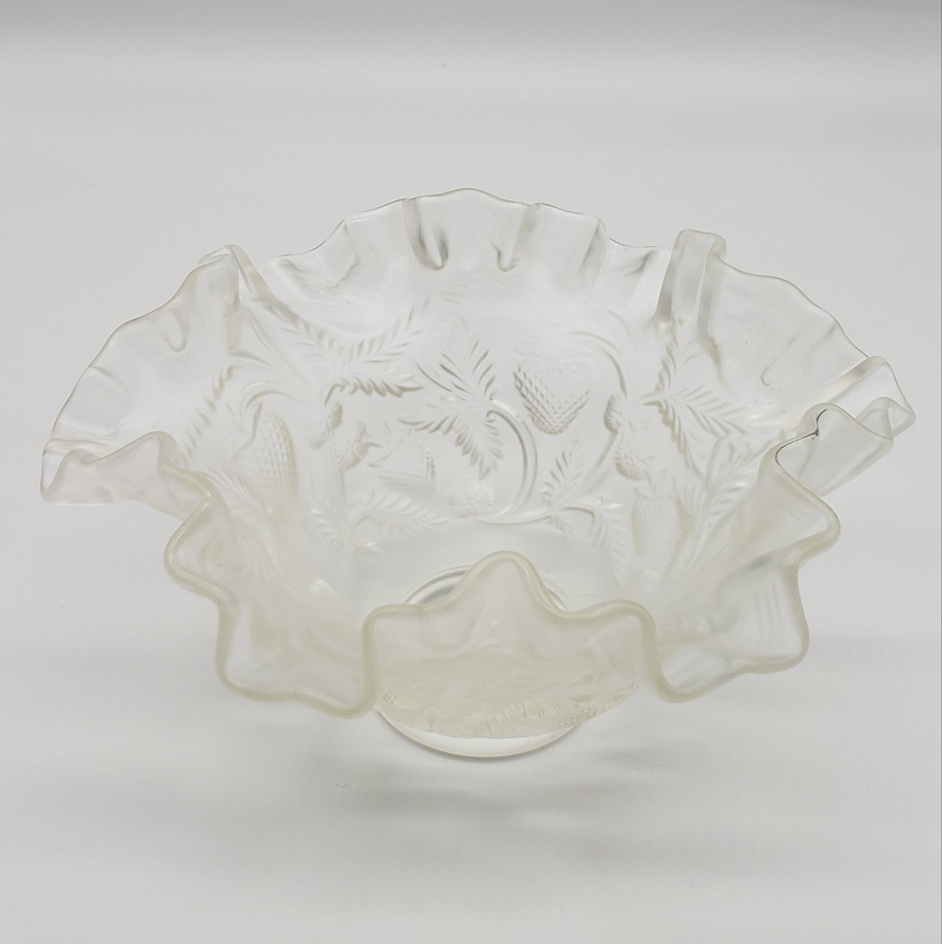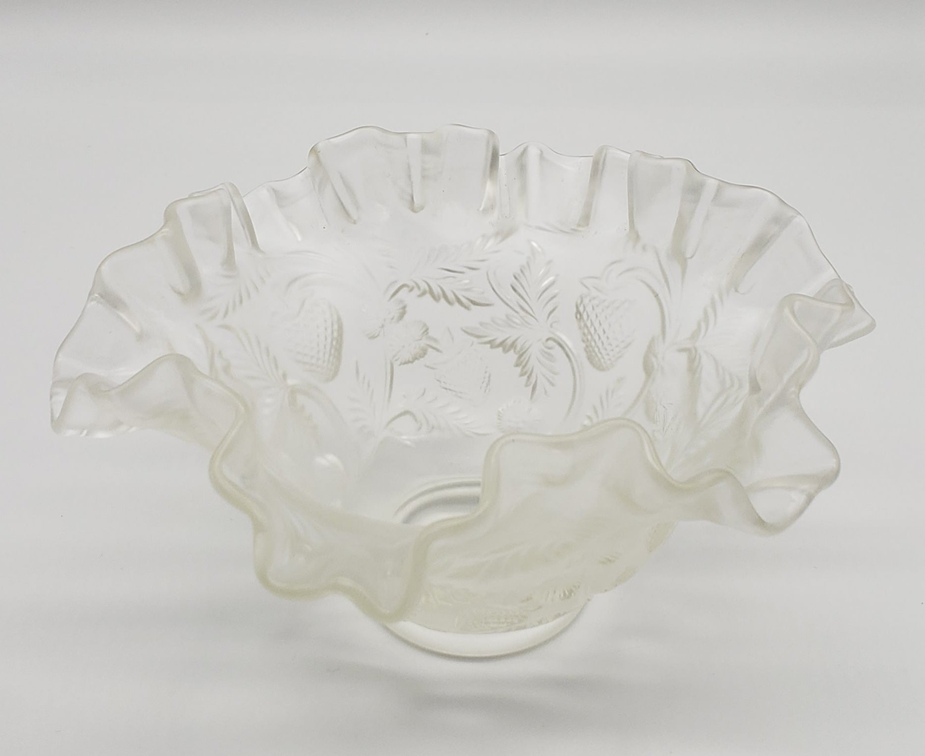 Fenton satin Glass Ruffled Edge Strawberry candy dish