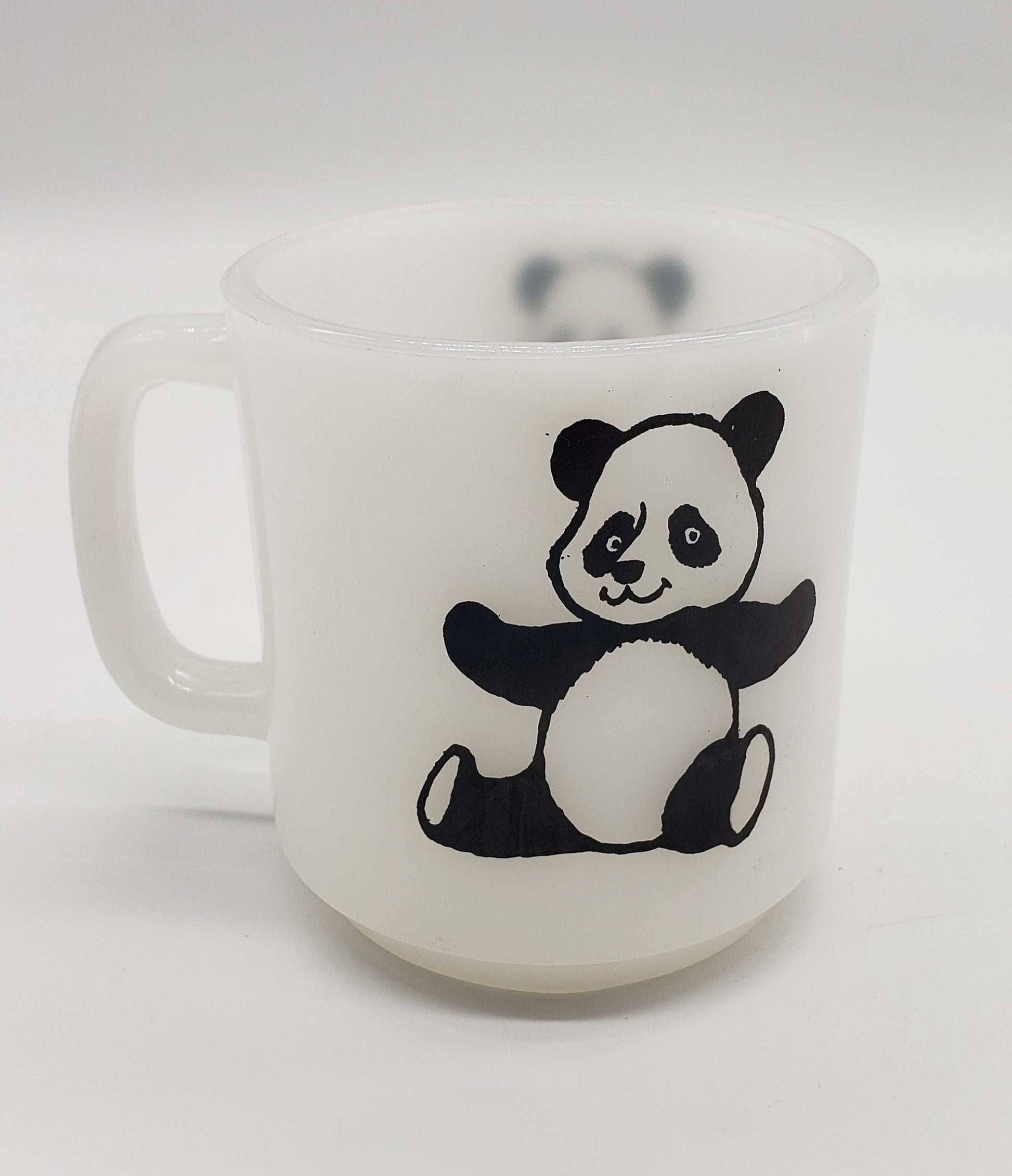 Glasbake Milk Glass Coffee Cup Mug Panda Bear
