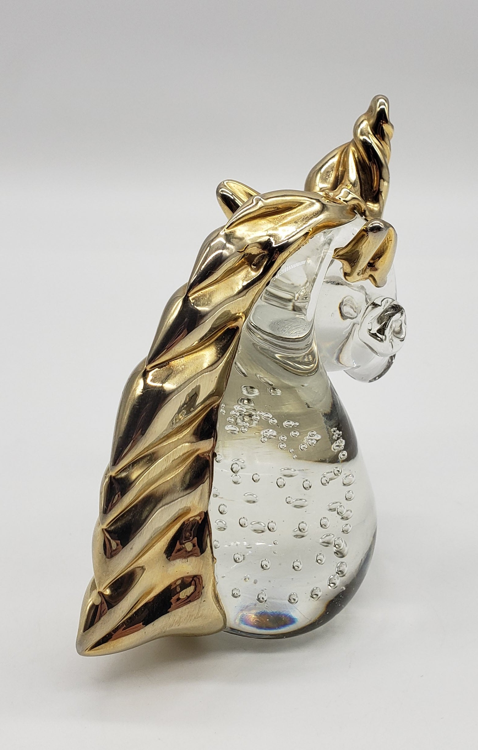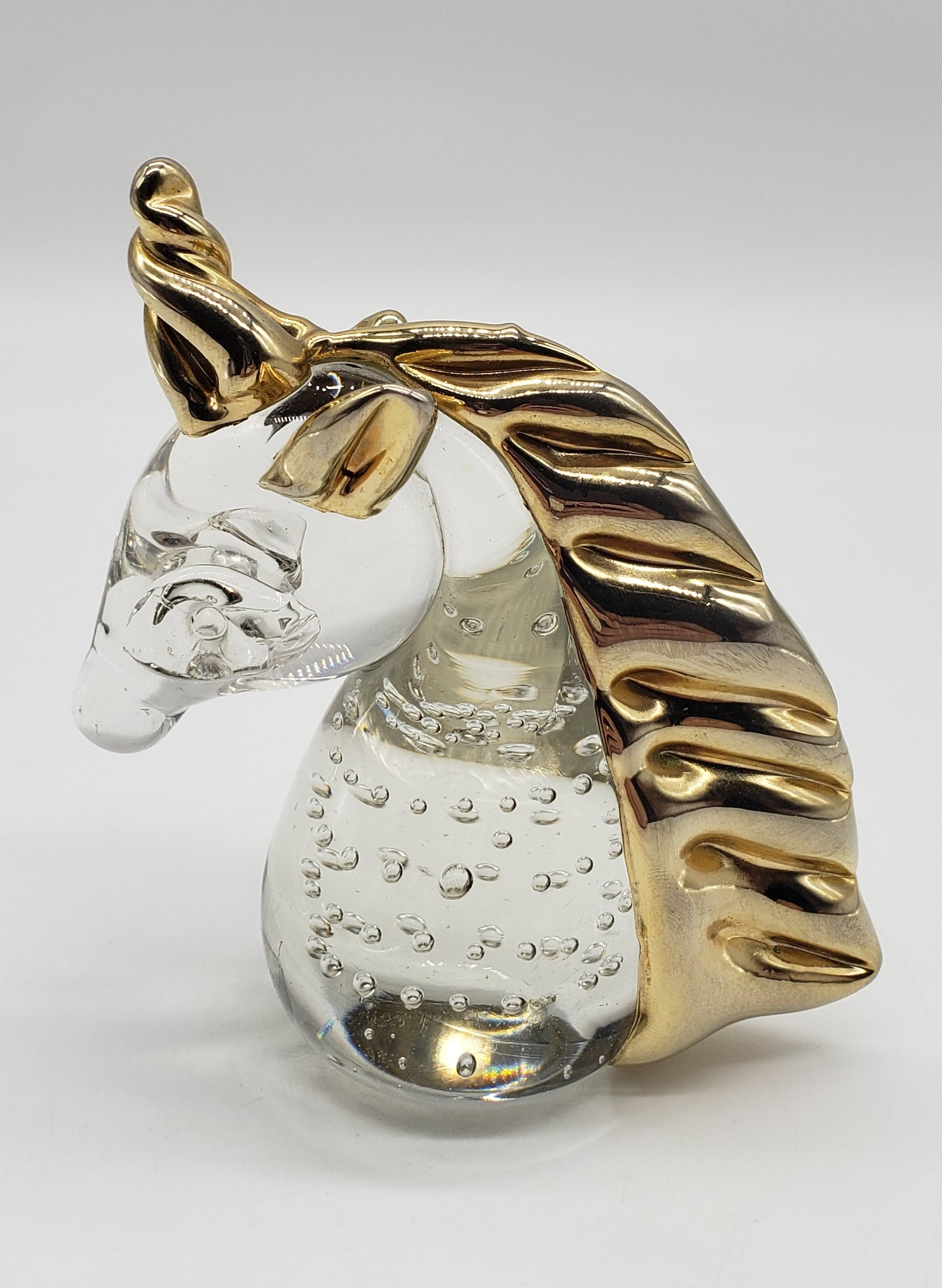 Glass and Metallic Gold Unicorn Figurine Paperweight