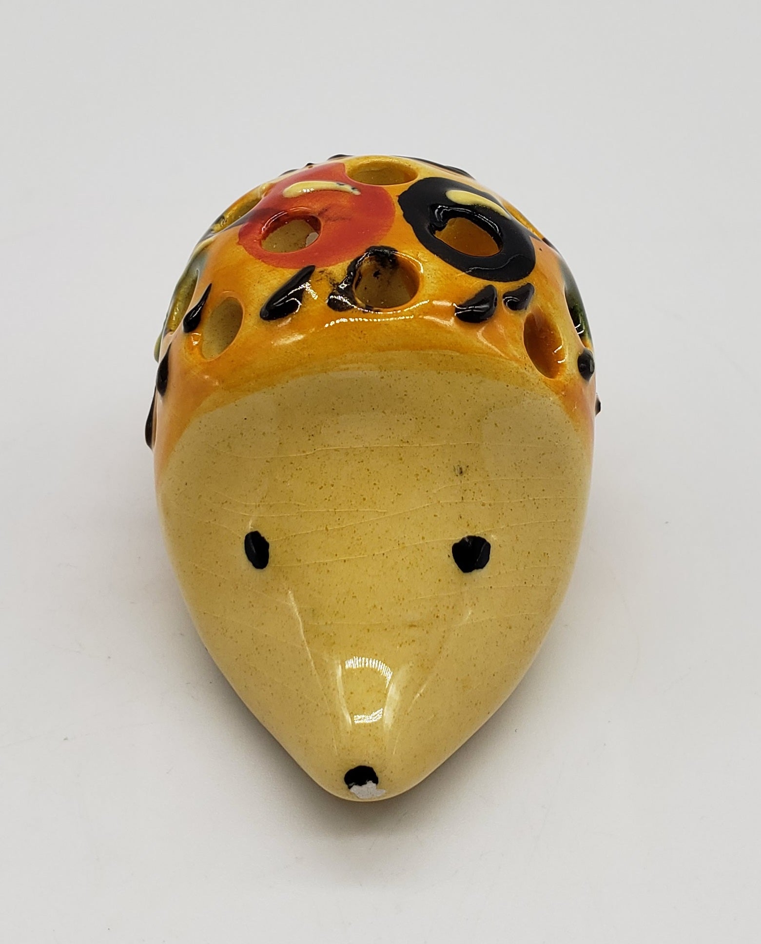 Entertain your guests with this unique serving dish accent. The Hedgehog toothpick holder can be used seperately or can attach to a serving dish or bowl. Golden hedgehog has a chipped nose.