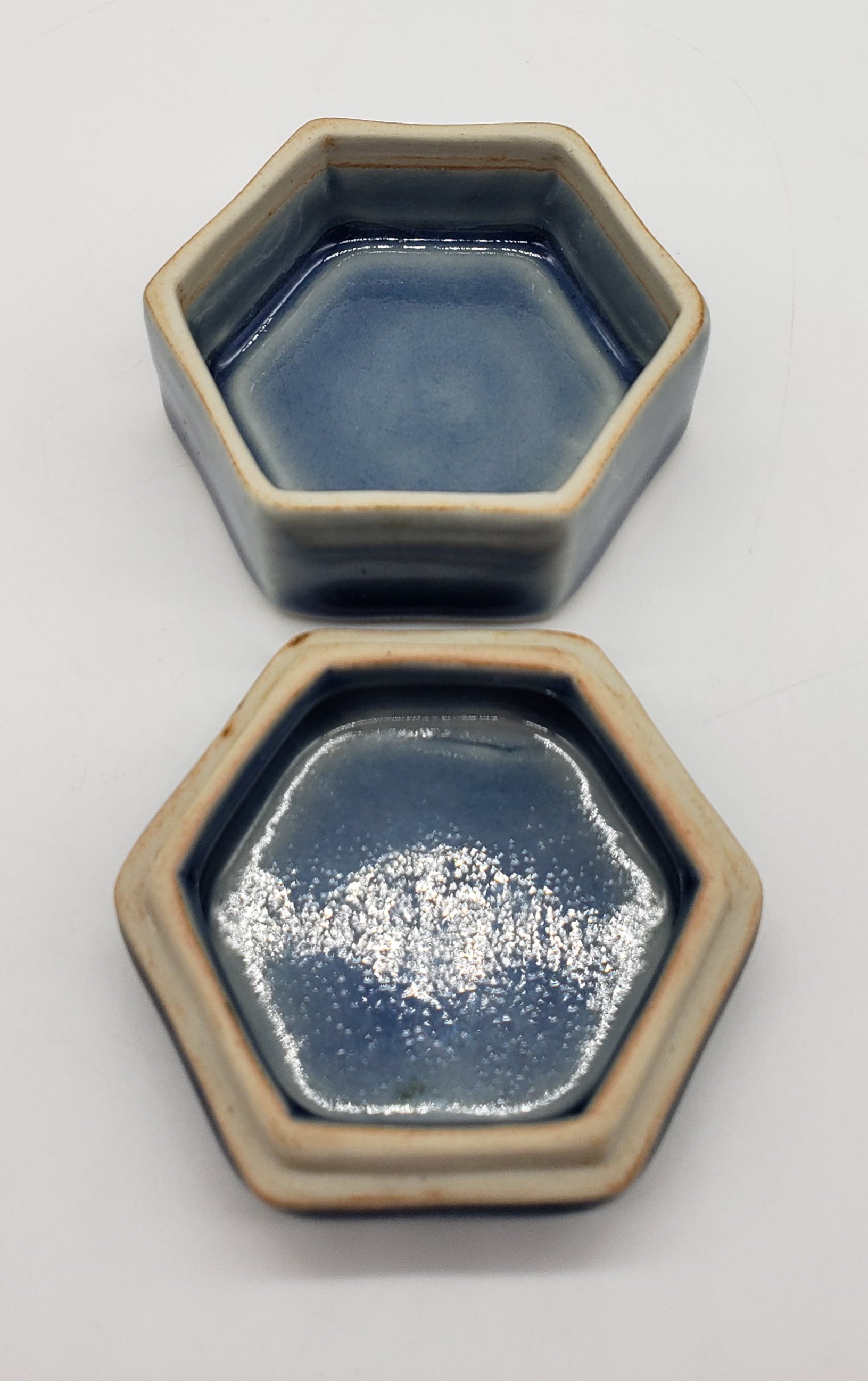Vintage Hexagon Lidded Trinket Box Hand Painted Thailand Blue