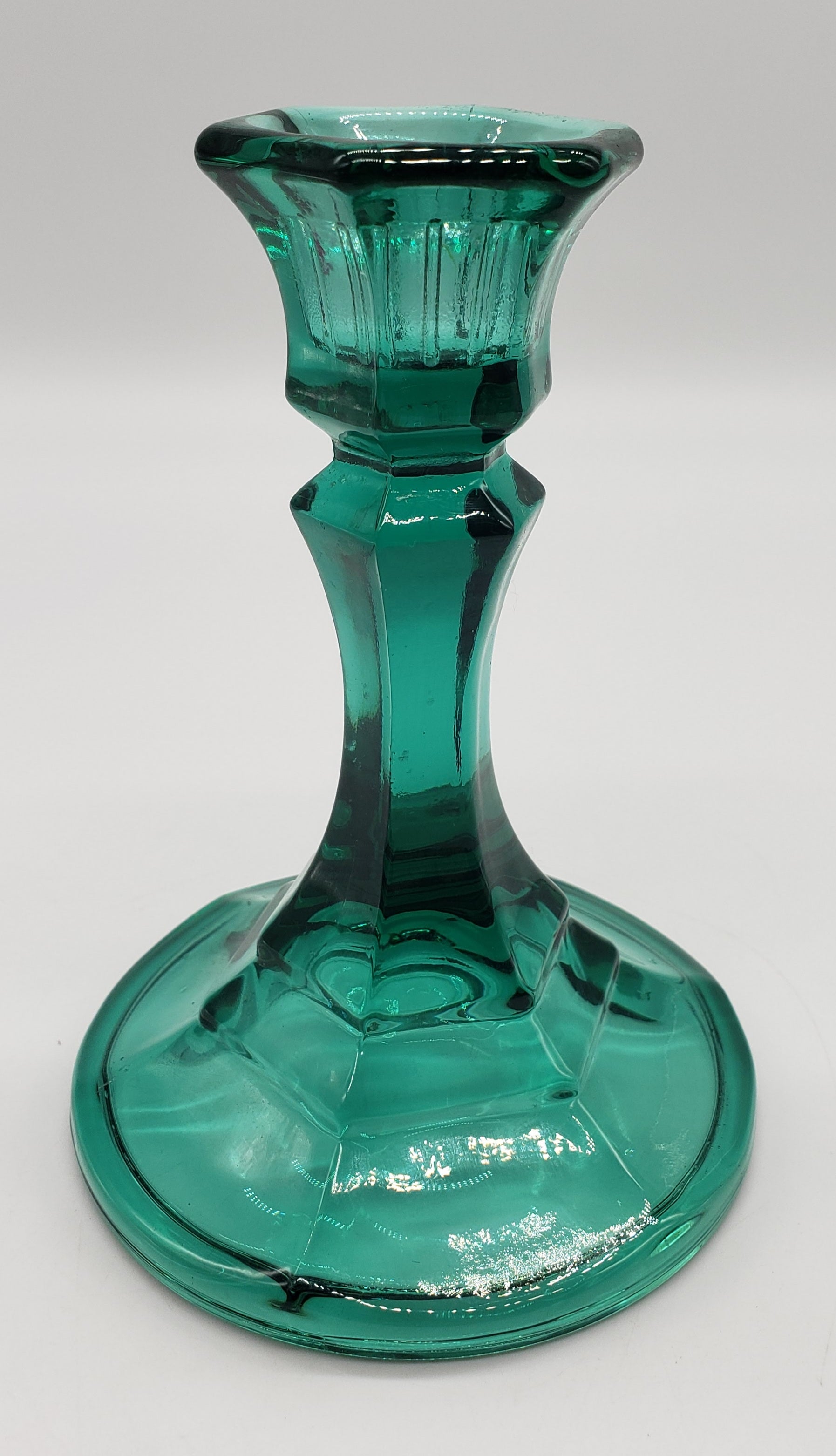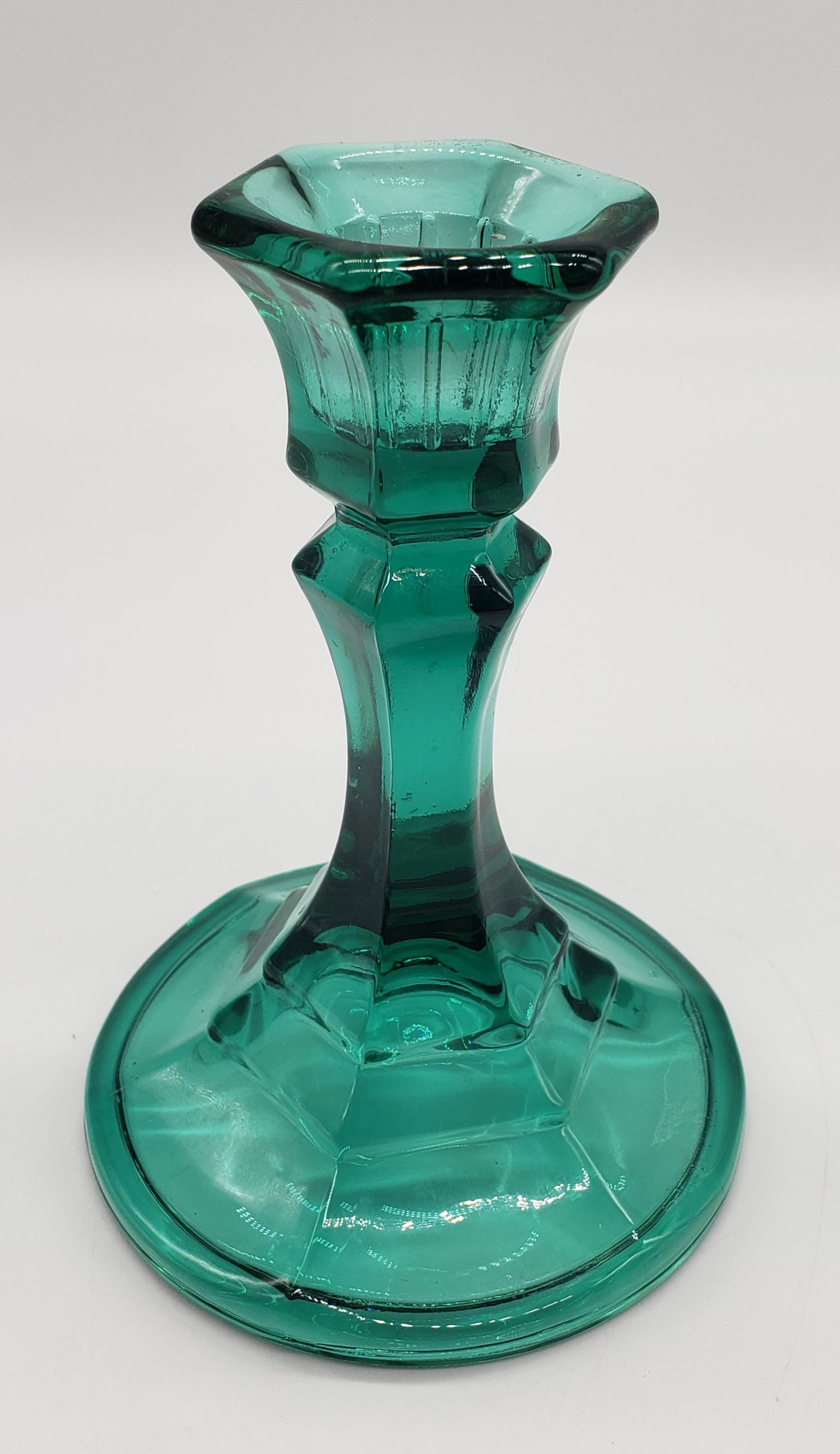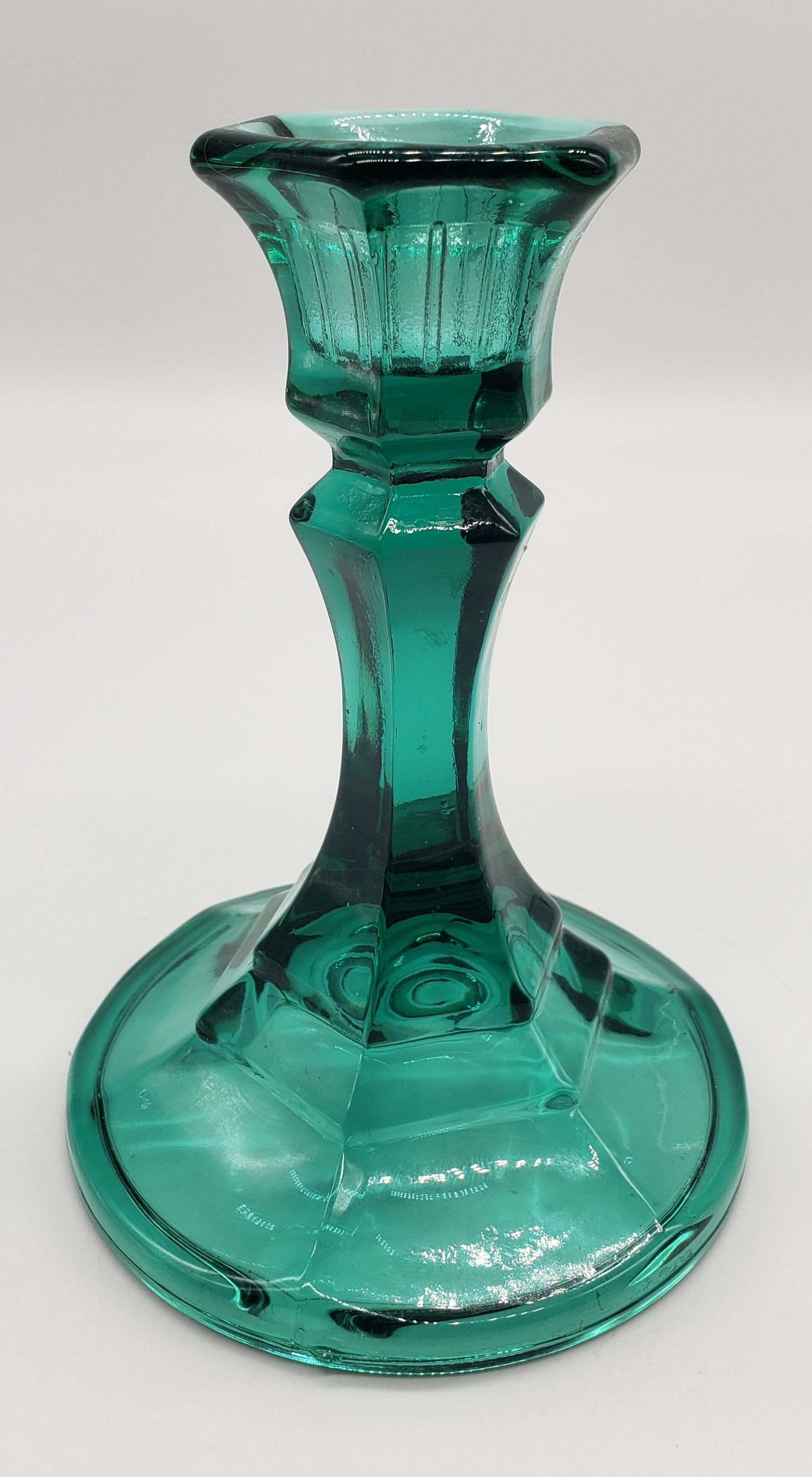 Indiana Glass Teal Green Glass Candlestick Holder
