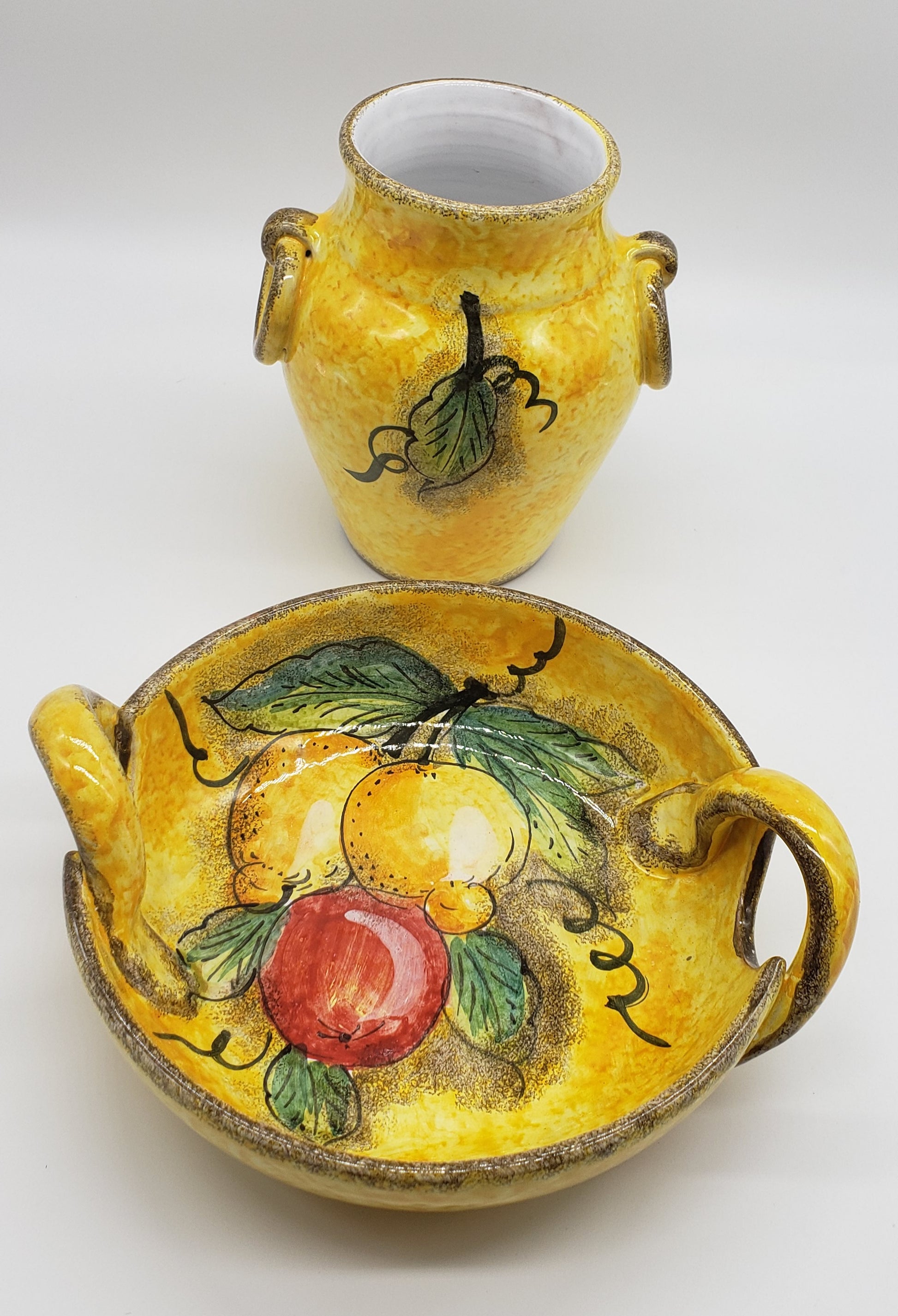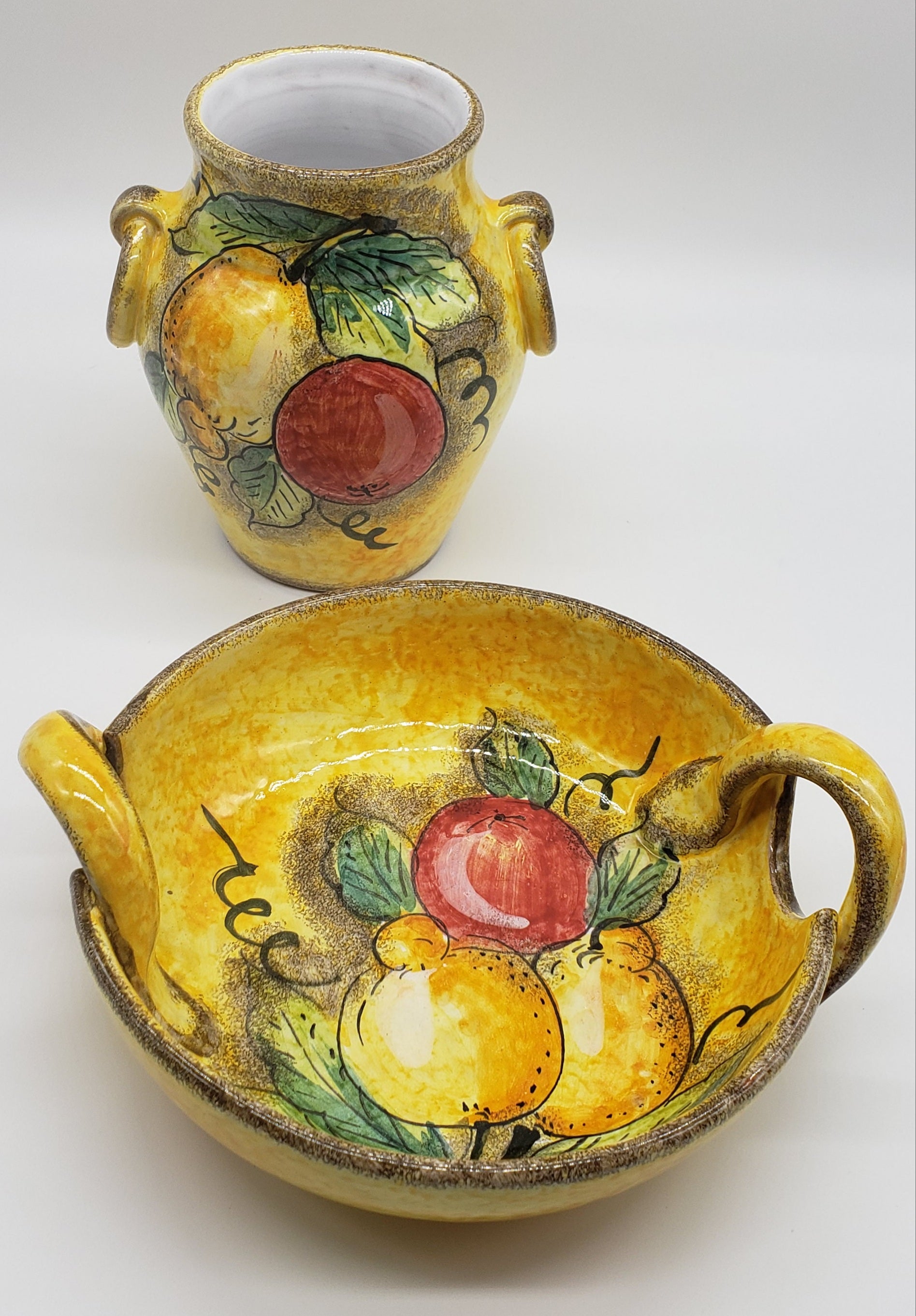 Italian Dipinto A Mano Lavarato Hand Painted Vase and basin