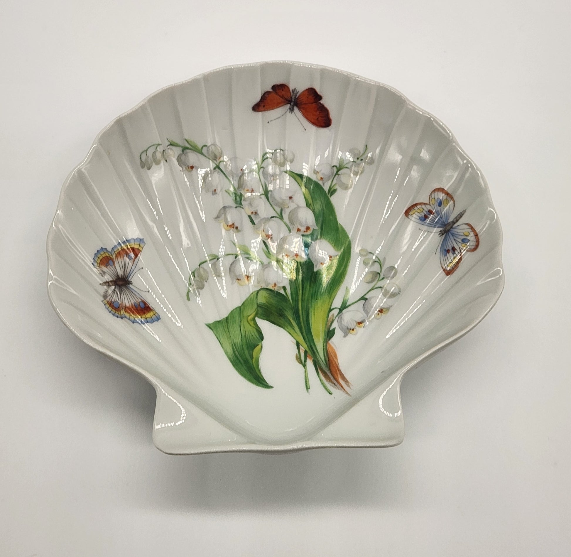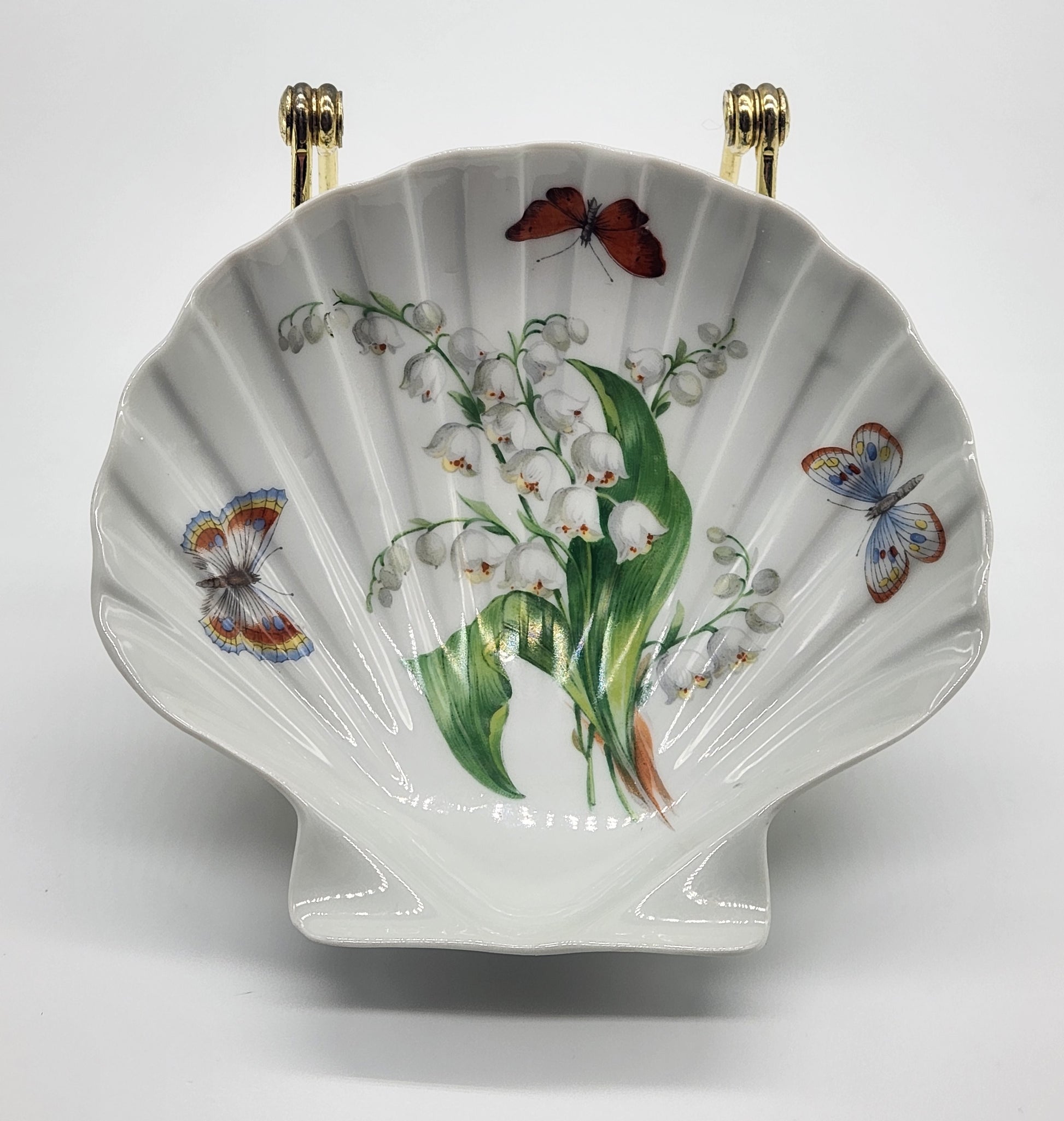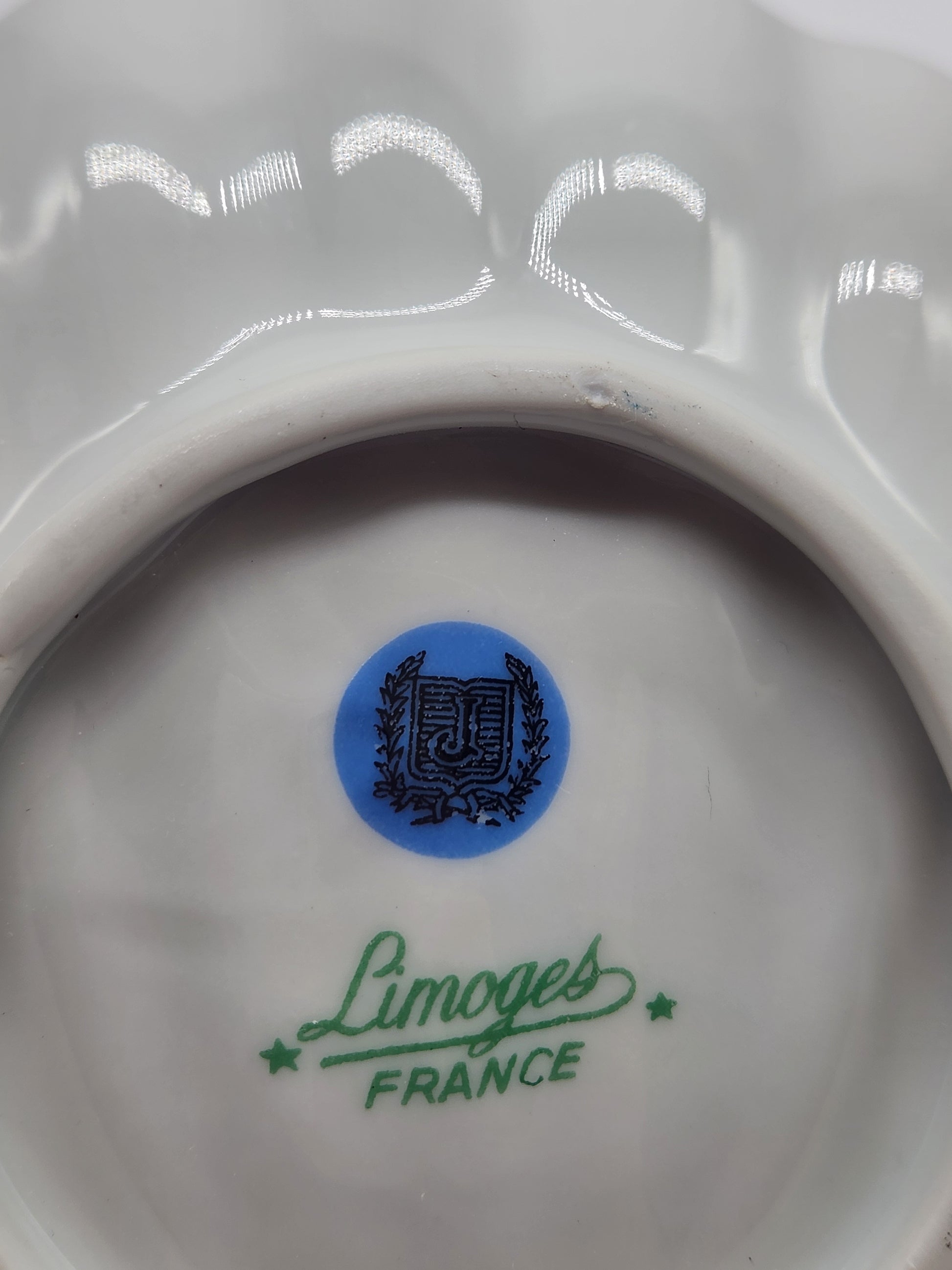 Limoges Vintage Shell-Shaped Porcelain Jewelry Dish with Floral Design