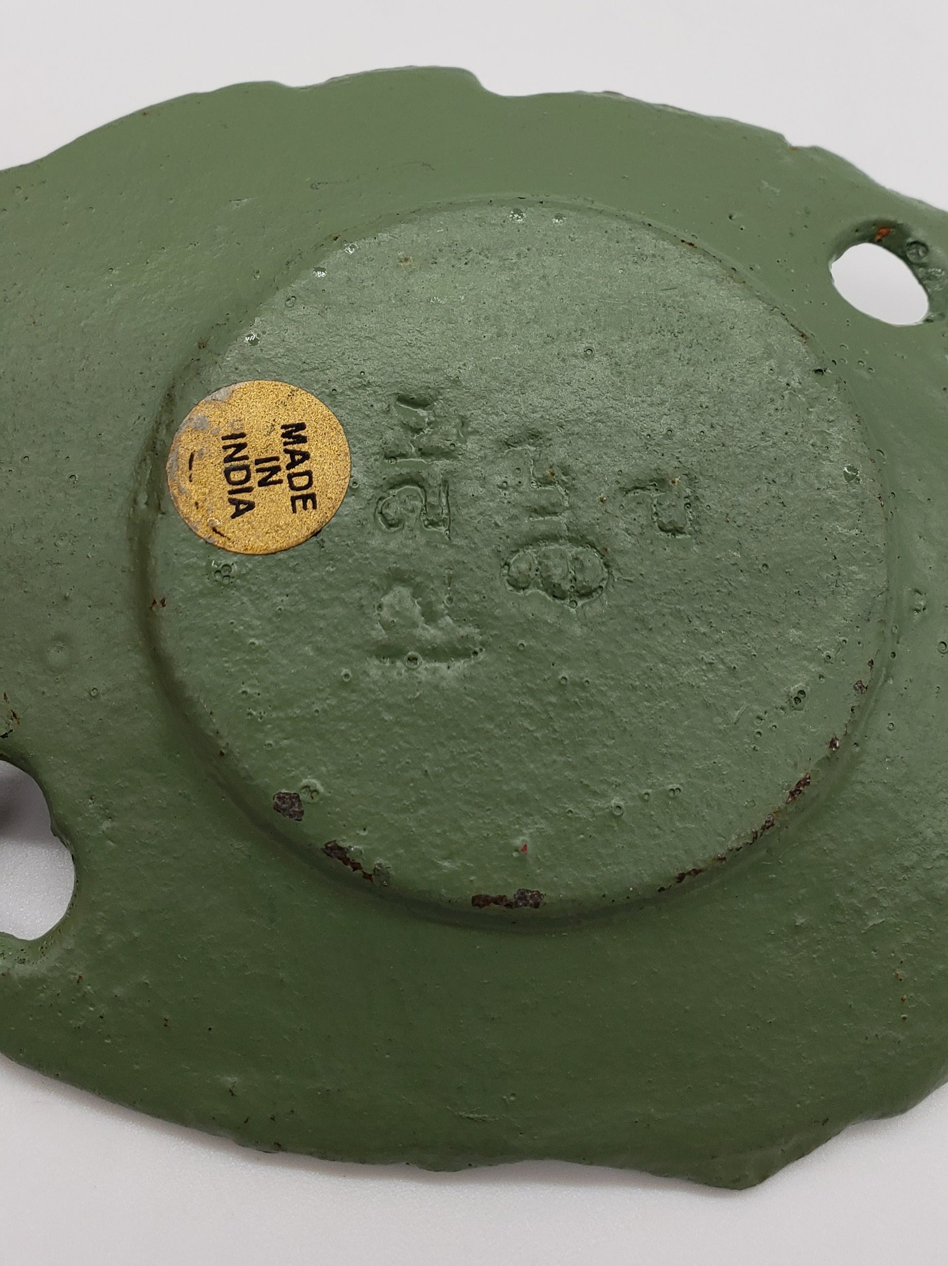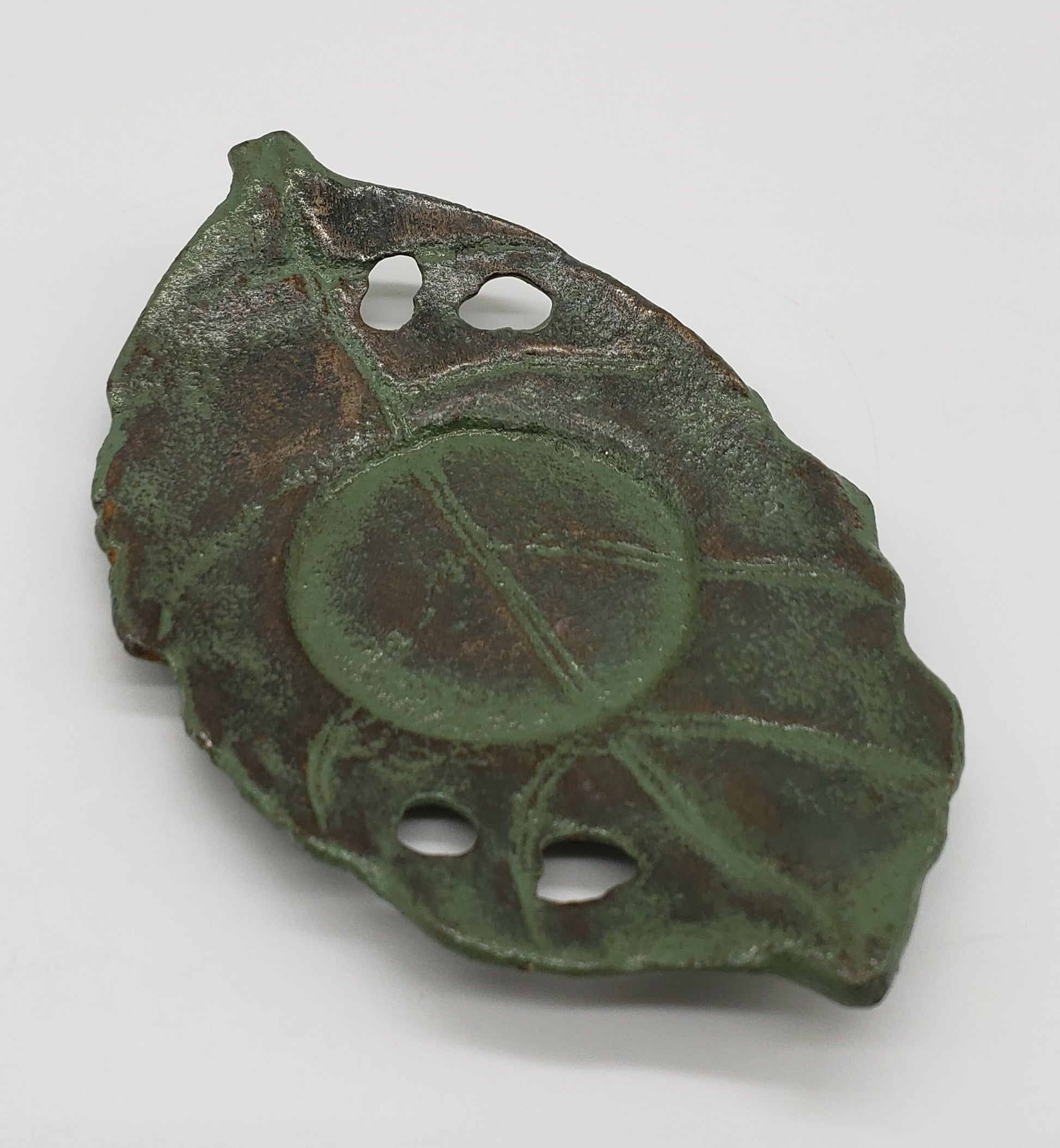 Metal Leaf Candle Holder with Green Patina Finish.