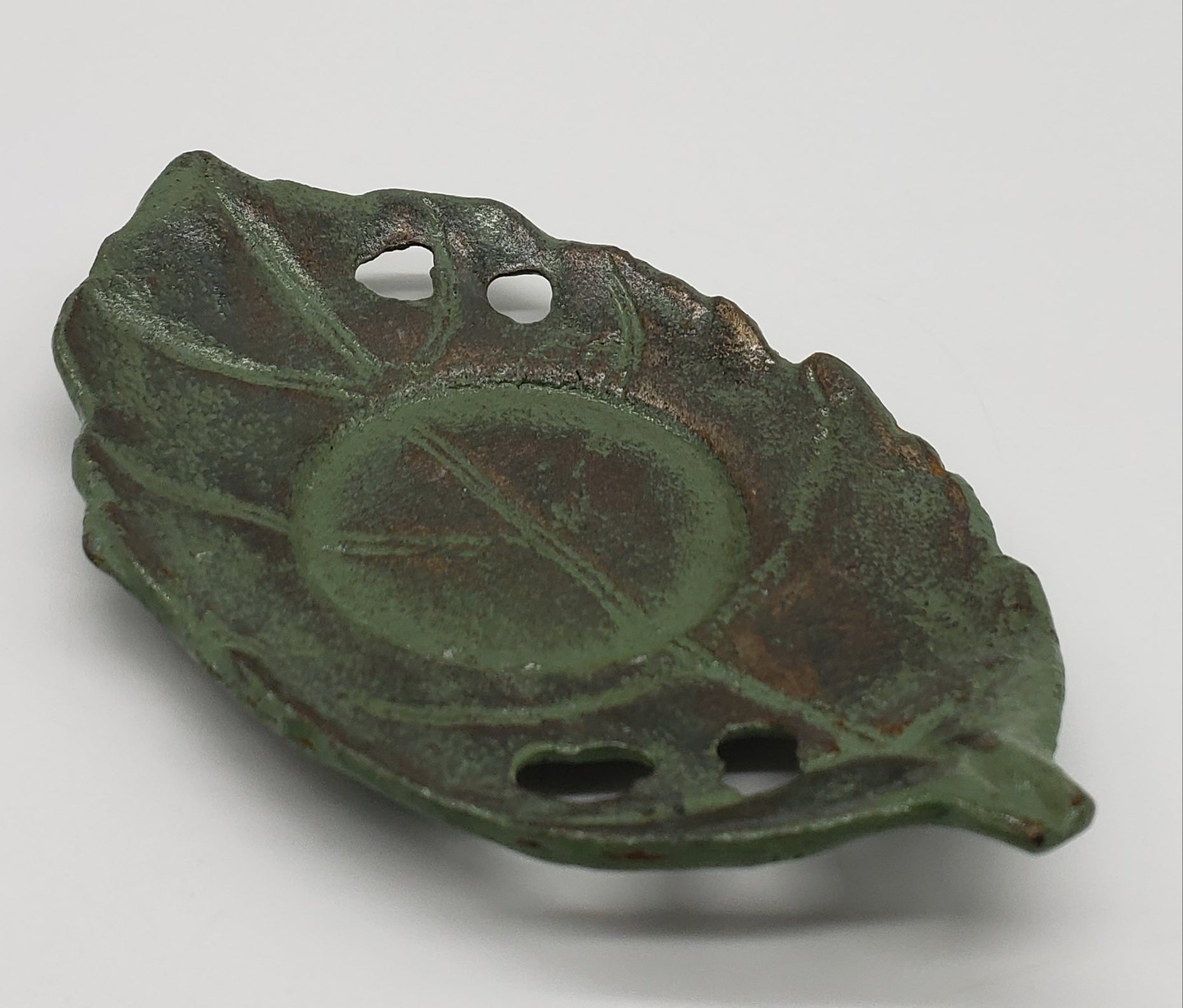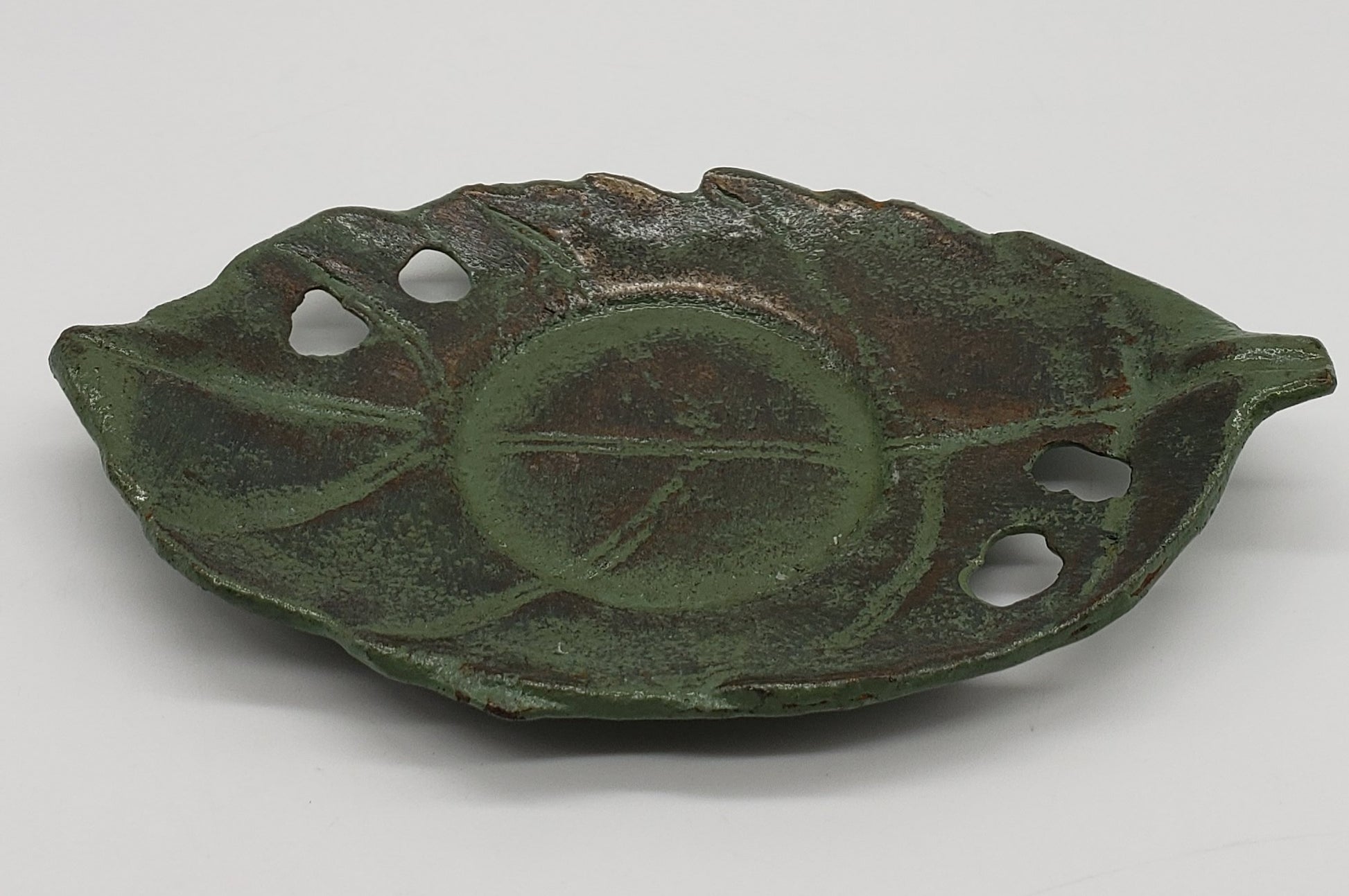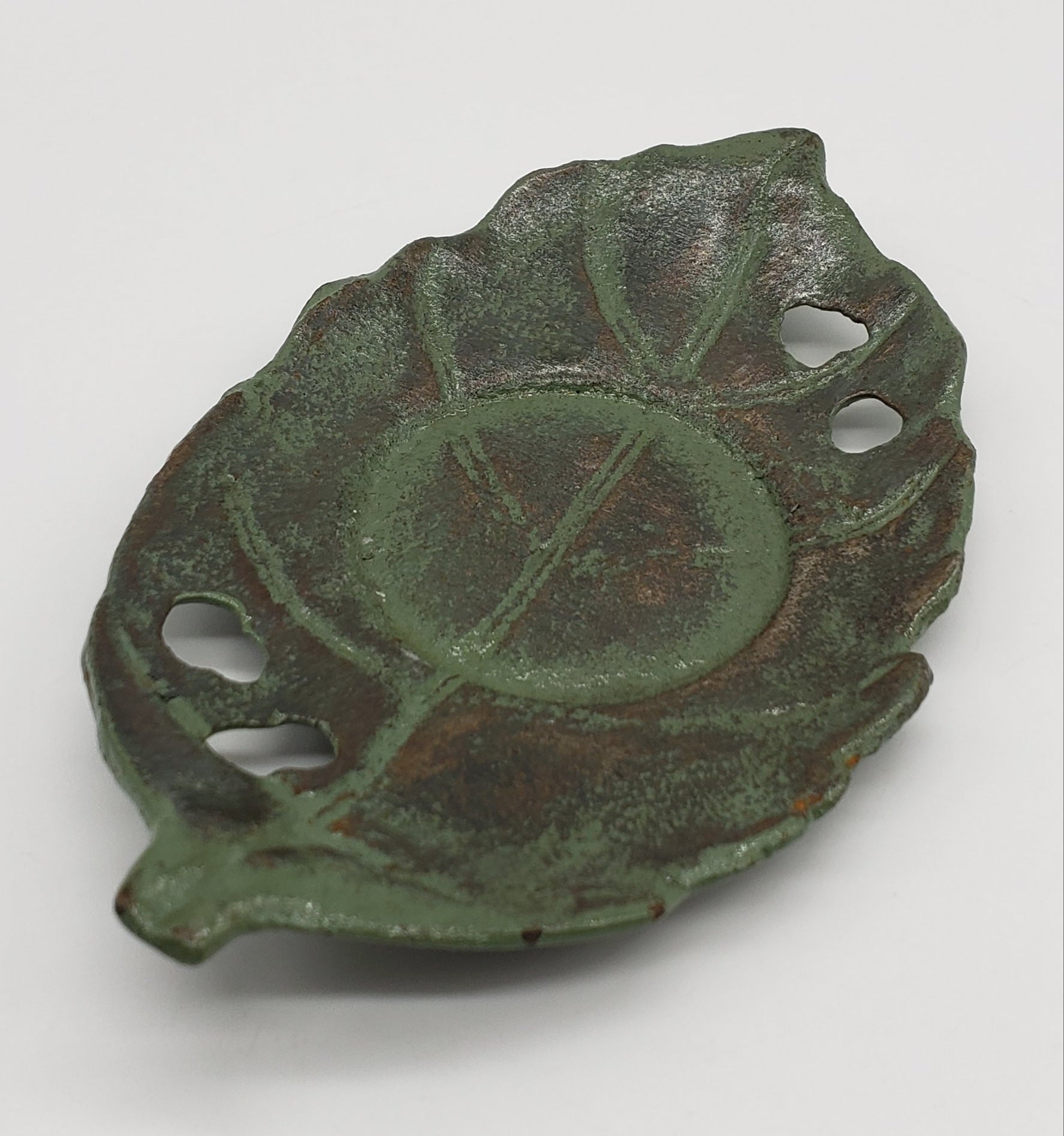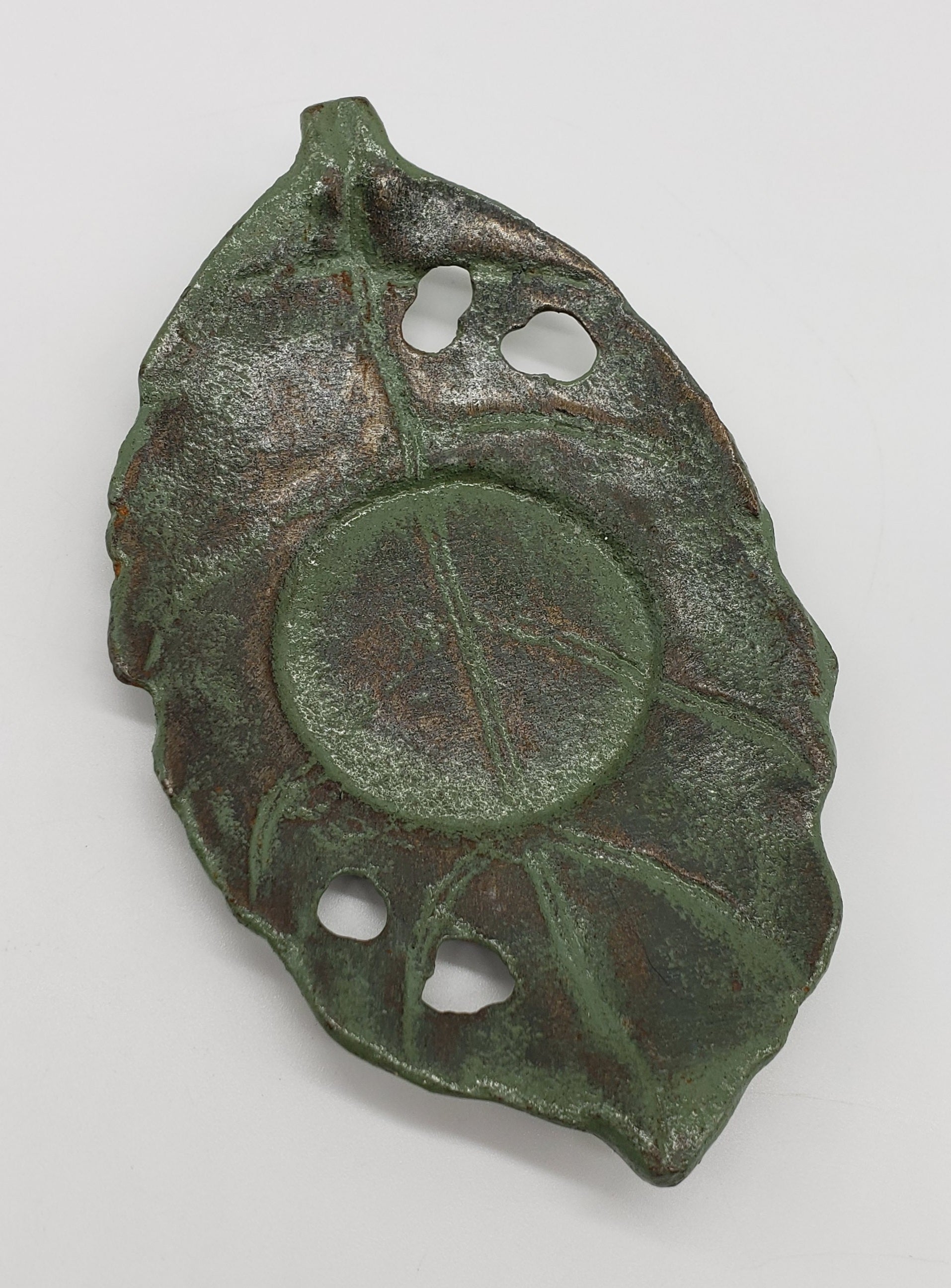Green Patina Metal Leaf Candle Holder
